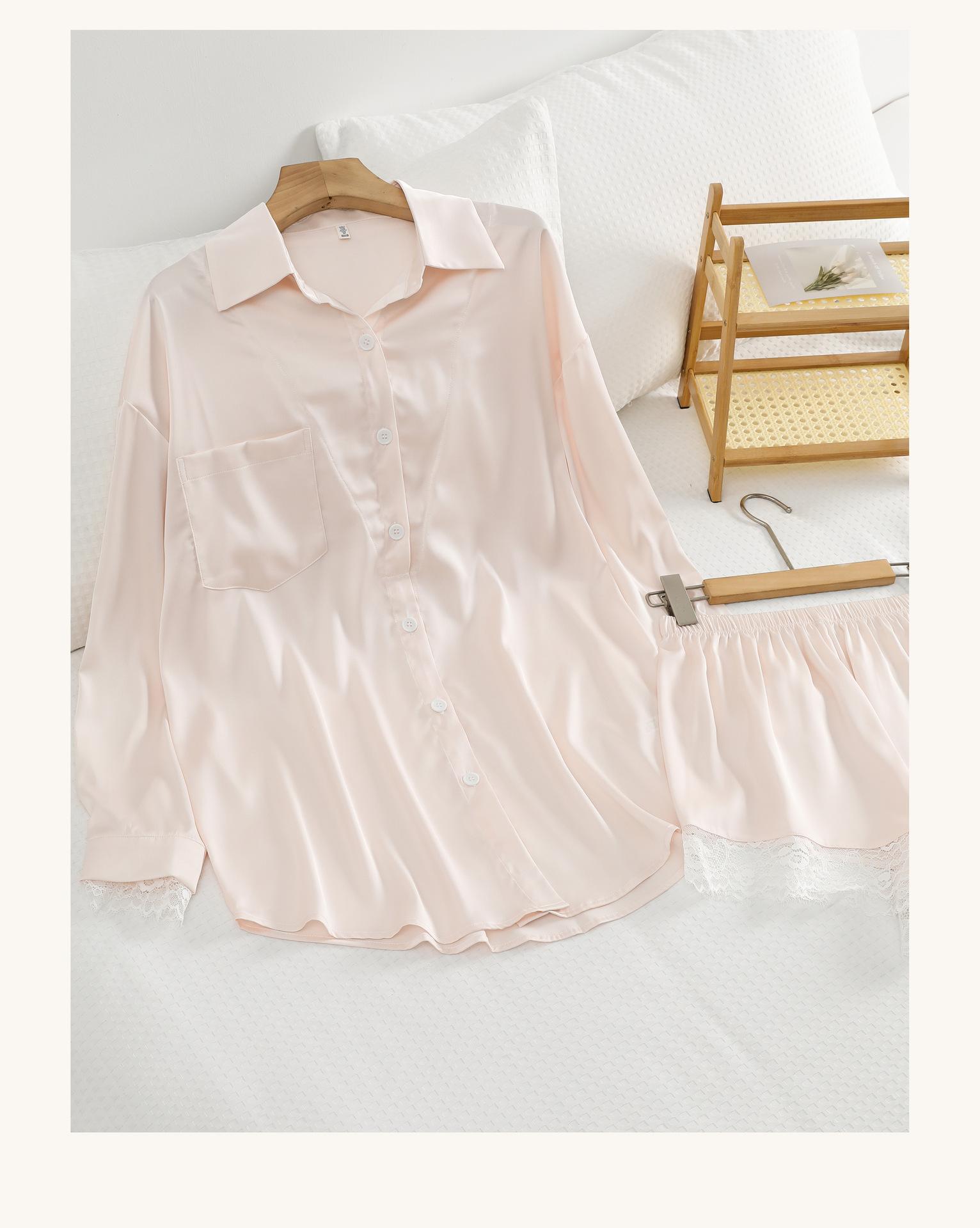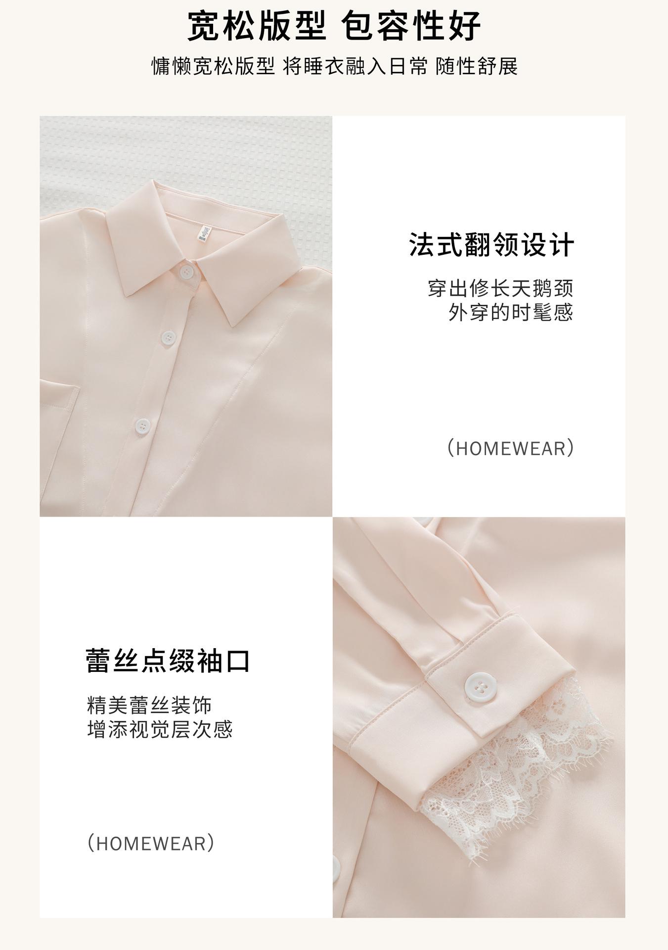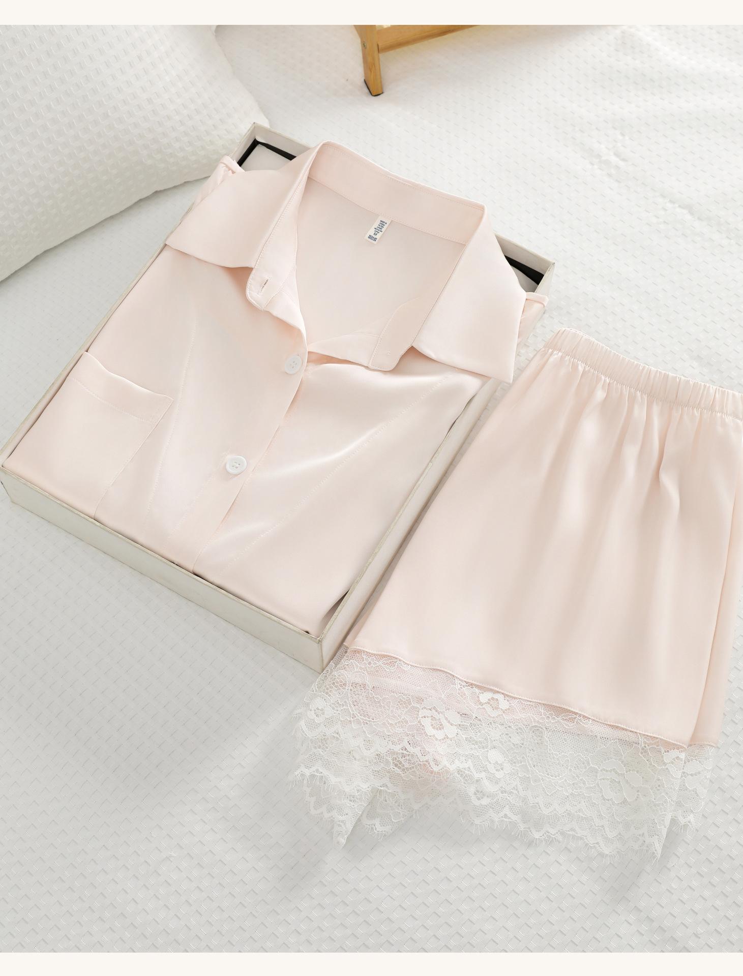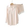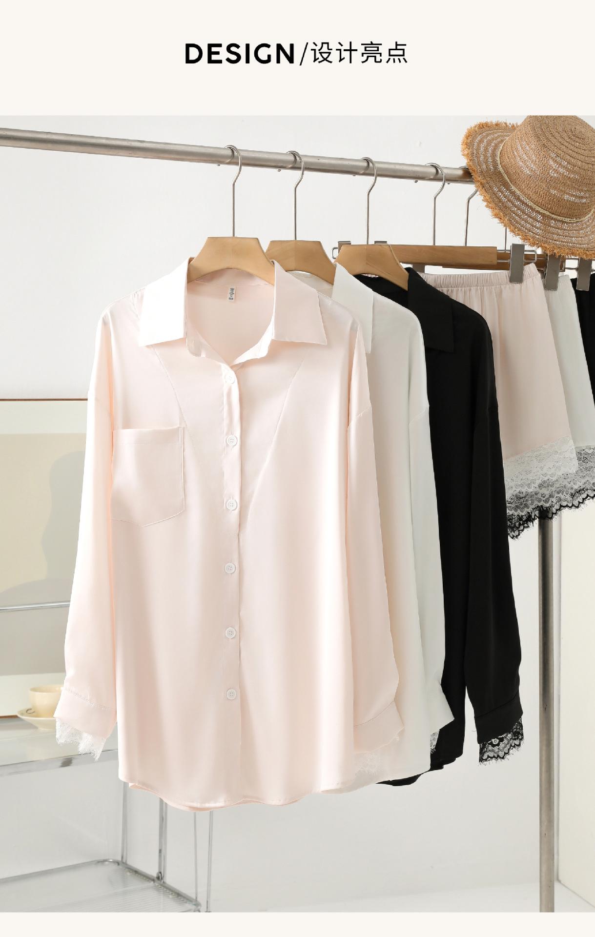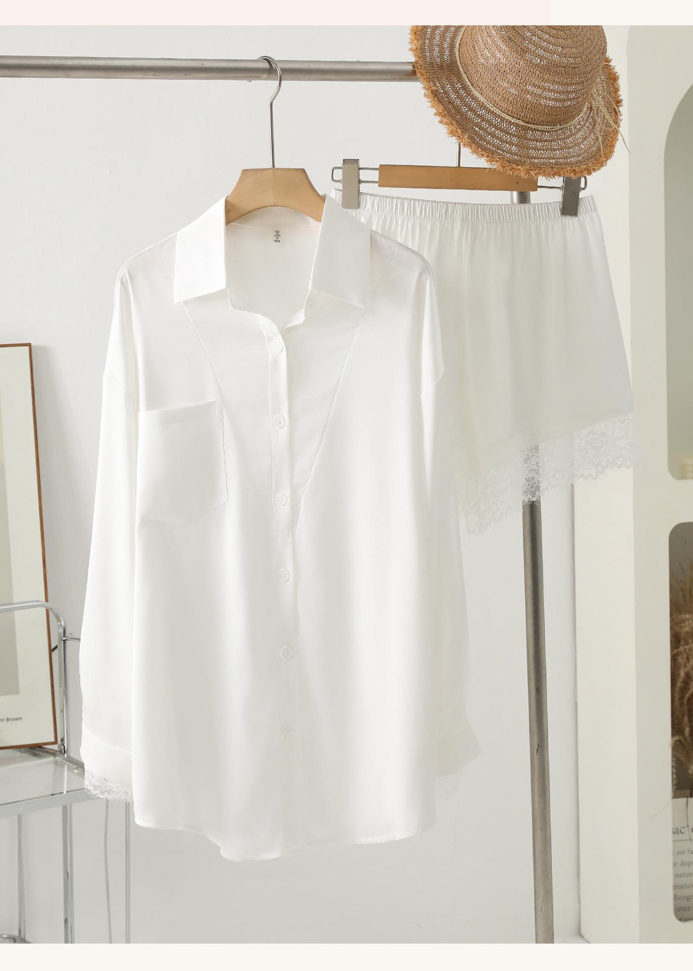 Compra Pijama de Seda de Hielo con Cuello de Camisa Estilo Novio para Mujer Primavera y Verano Delgada Shorts de Encaje Manga Larga Conjunto de Ropa de Casa para Mujer al por mayor en Joom.pro