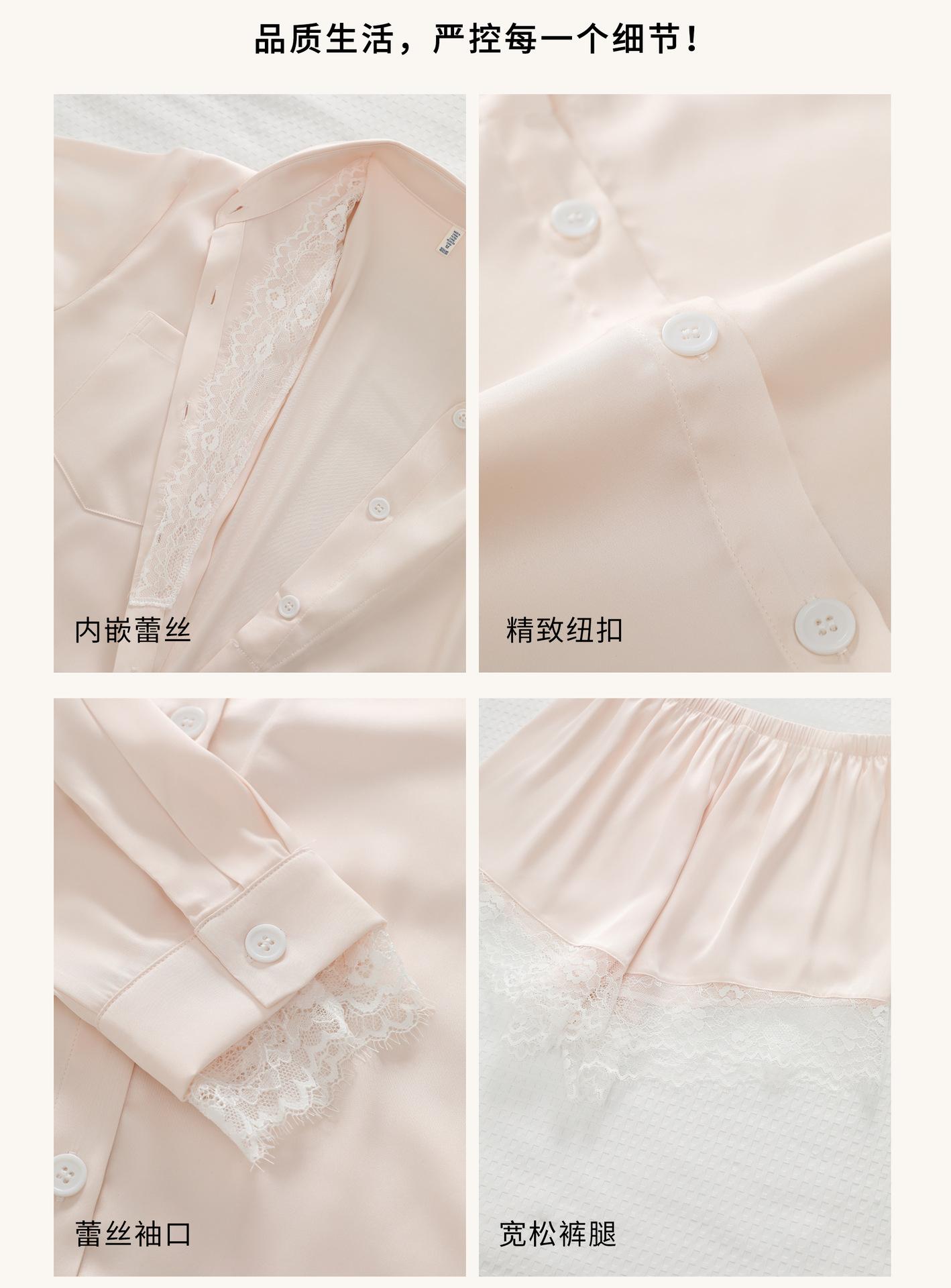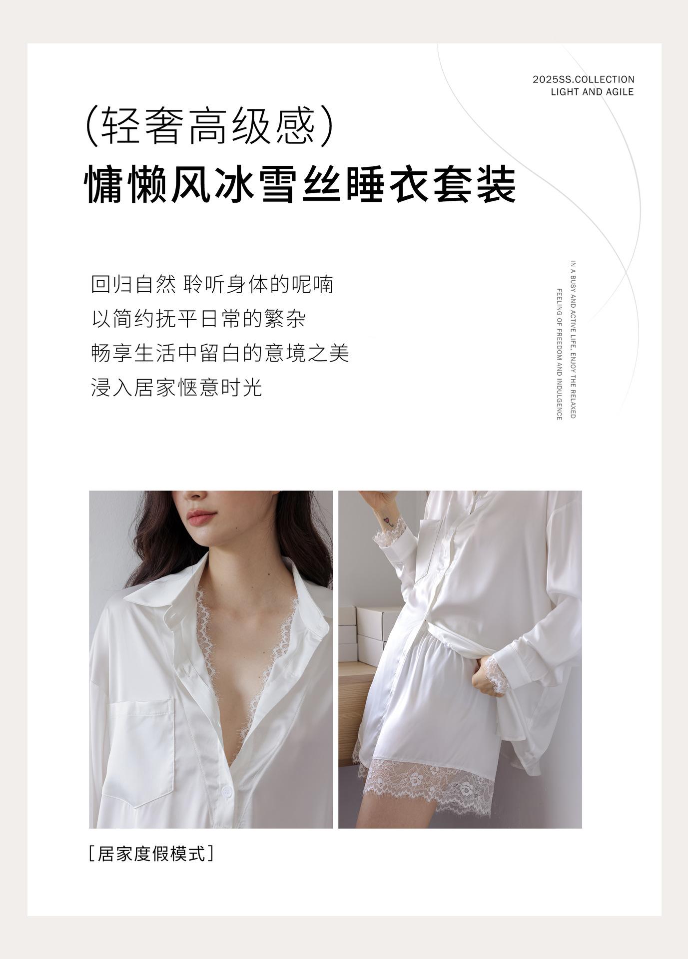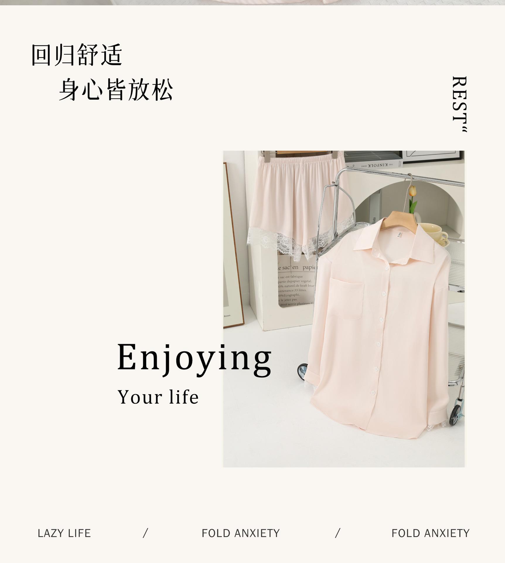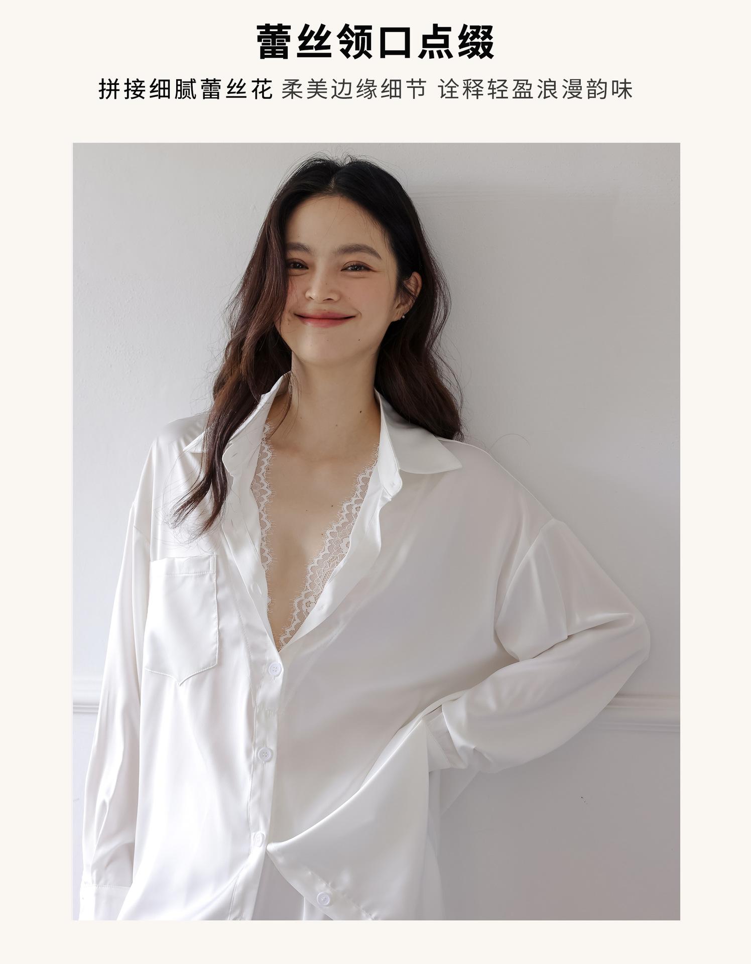 Compra Pijama de Seda de Hielo con Cuello de Camisa Estilo Novio para Mujer Primavera y Verano Delgada Shorts de Encaje Manga Larga Conjunto de Ropa de Casa para Mujer al por mayor en Joom.pro
