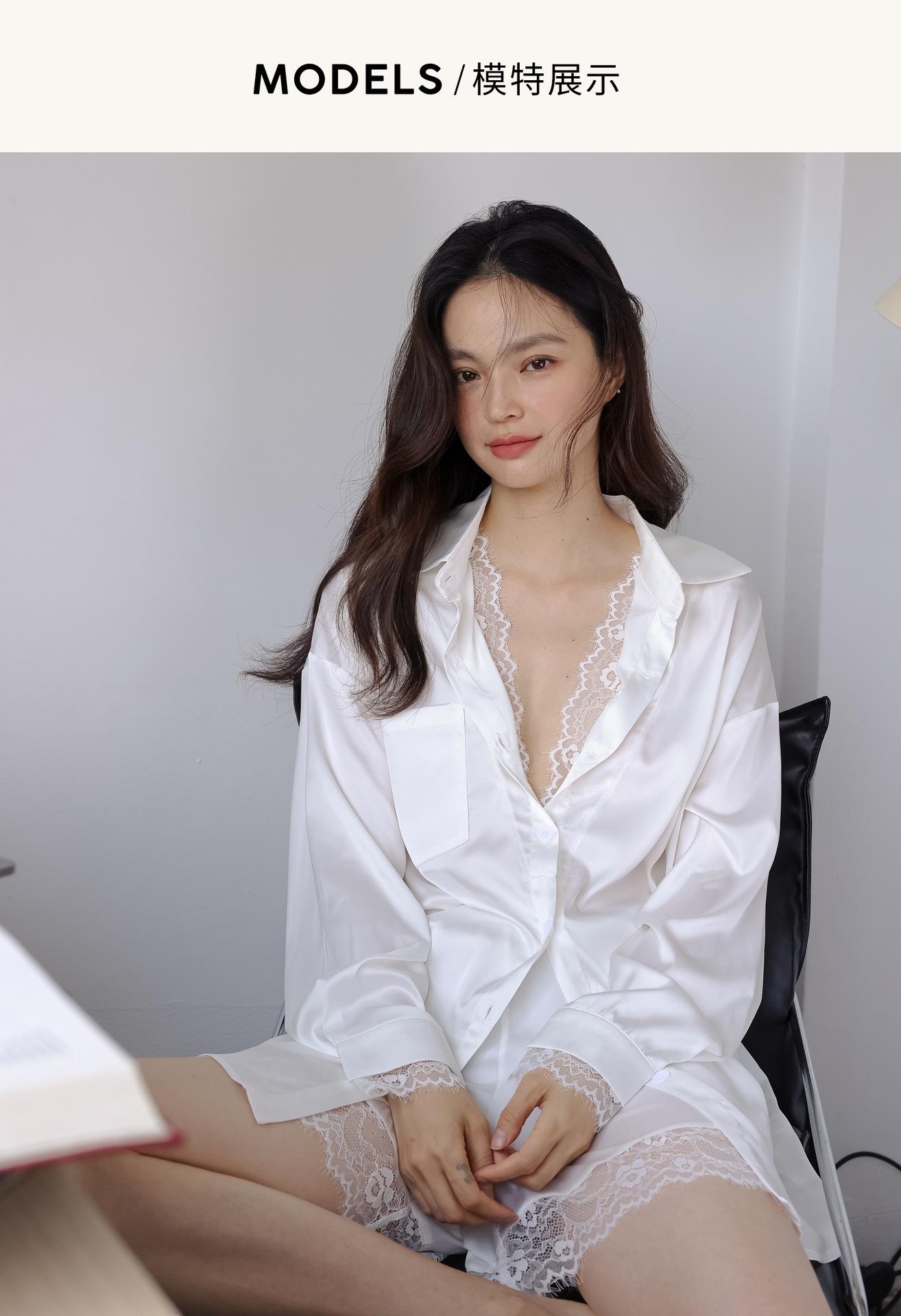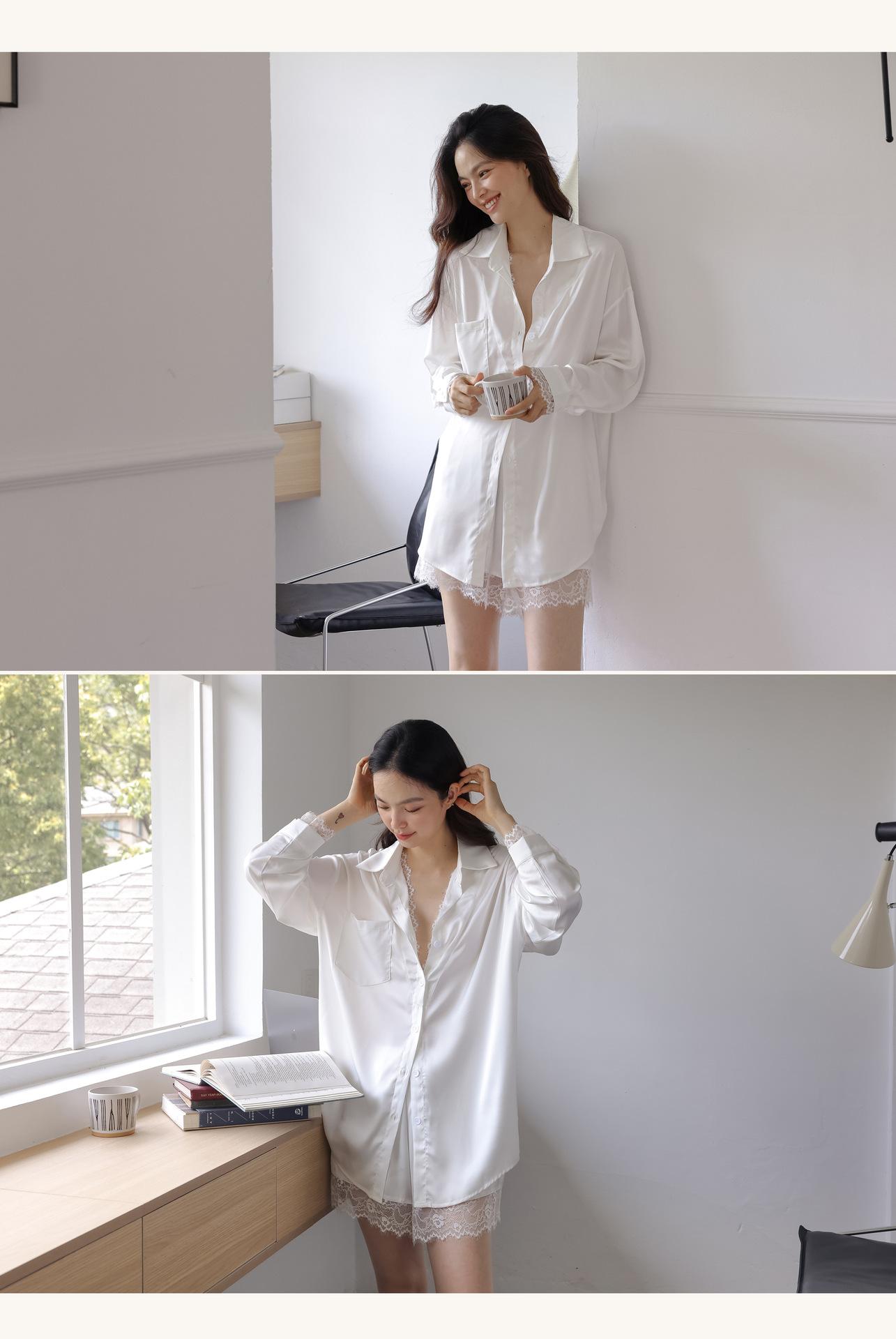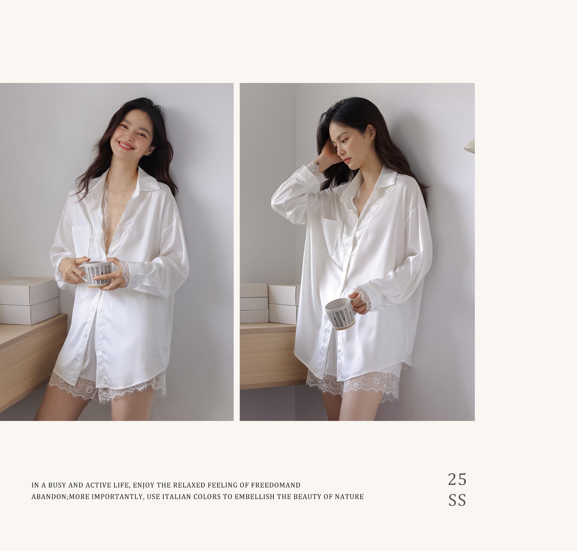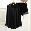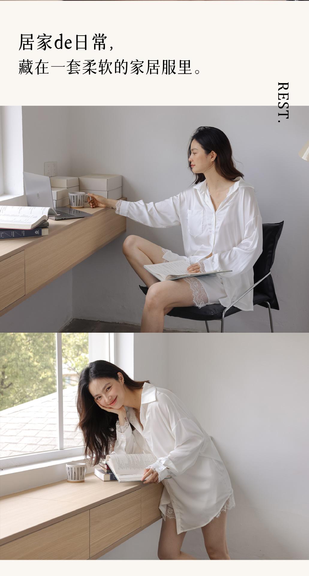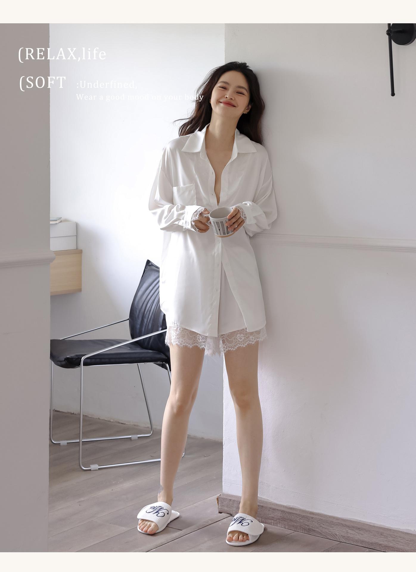 Compra Pijama de Seda de Hielo con Cuello de Camisa Estilo Novio para Mujer Primavera y Verano Delgada Shorts de Encaje Manga Larga Conjunto de Ropa de Casa para Mujer al por mayor en Joom.pro