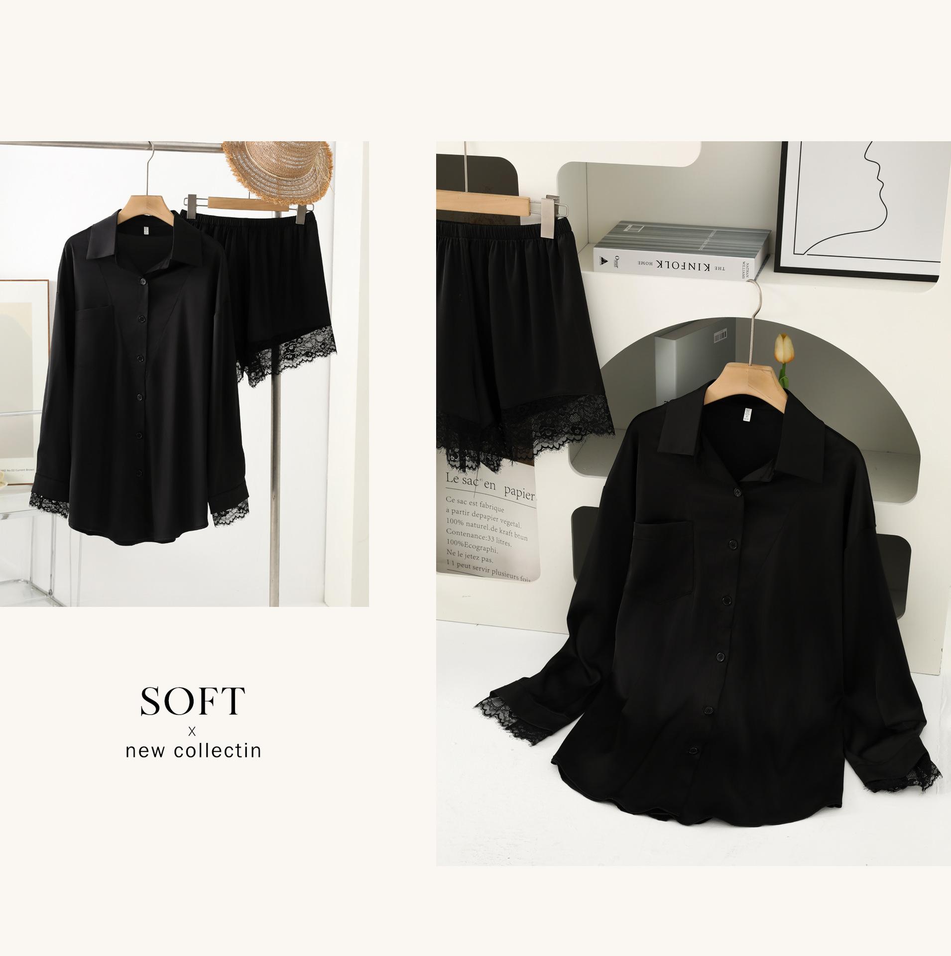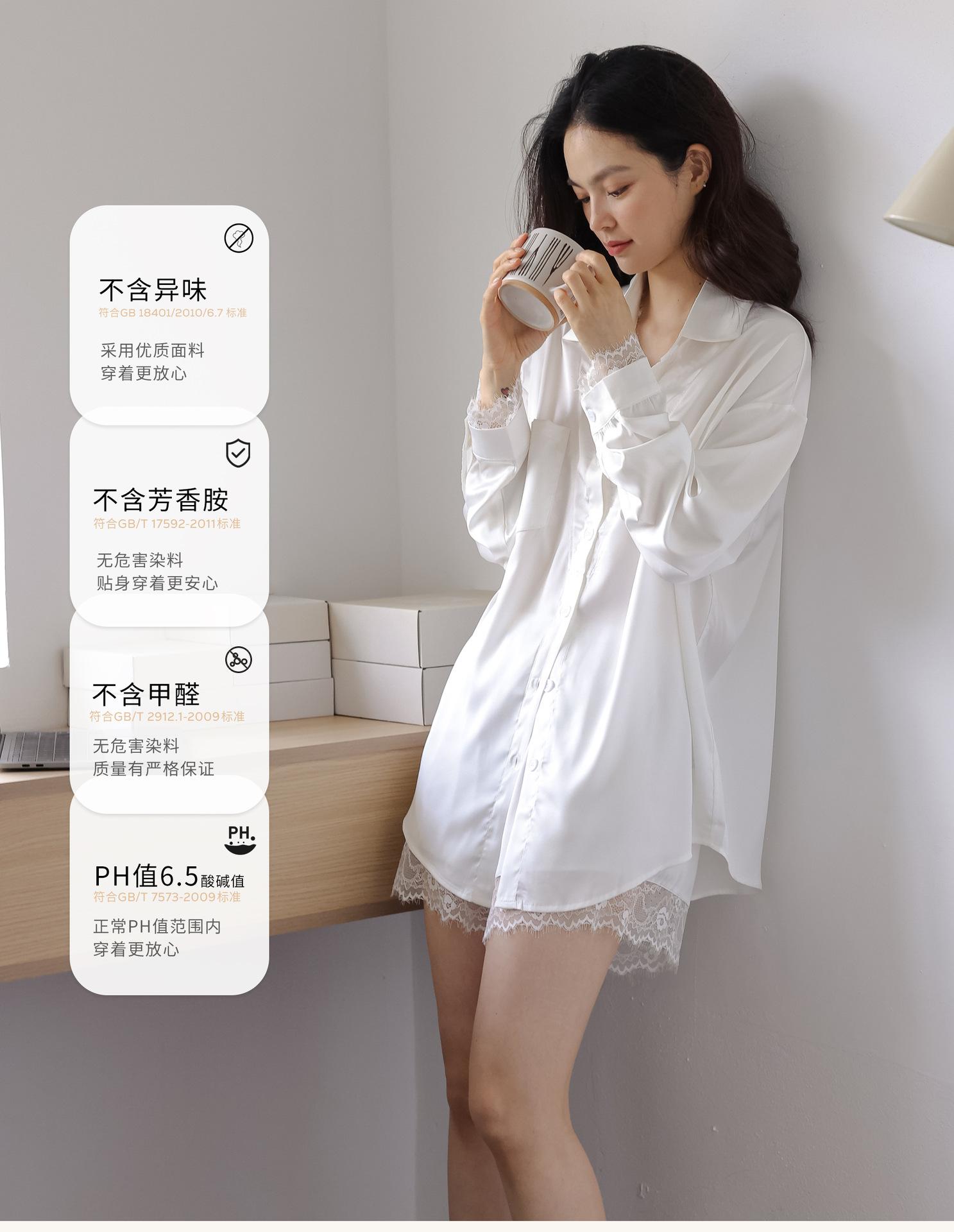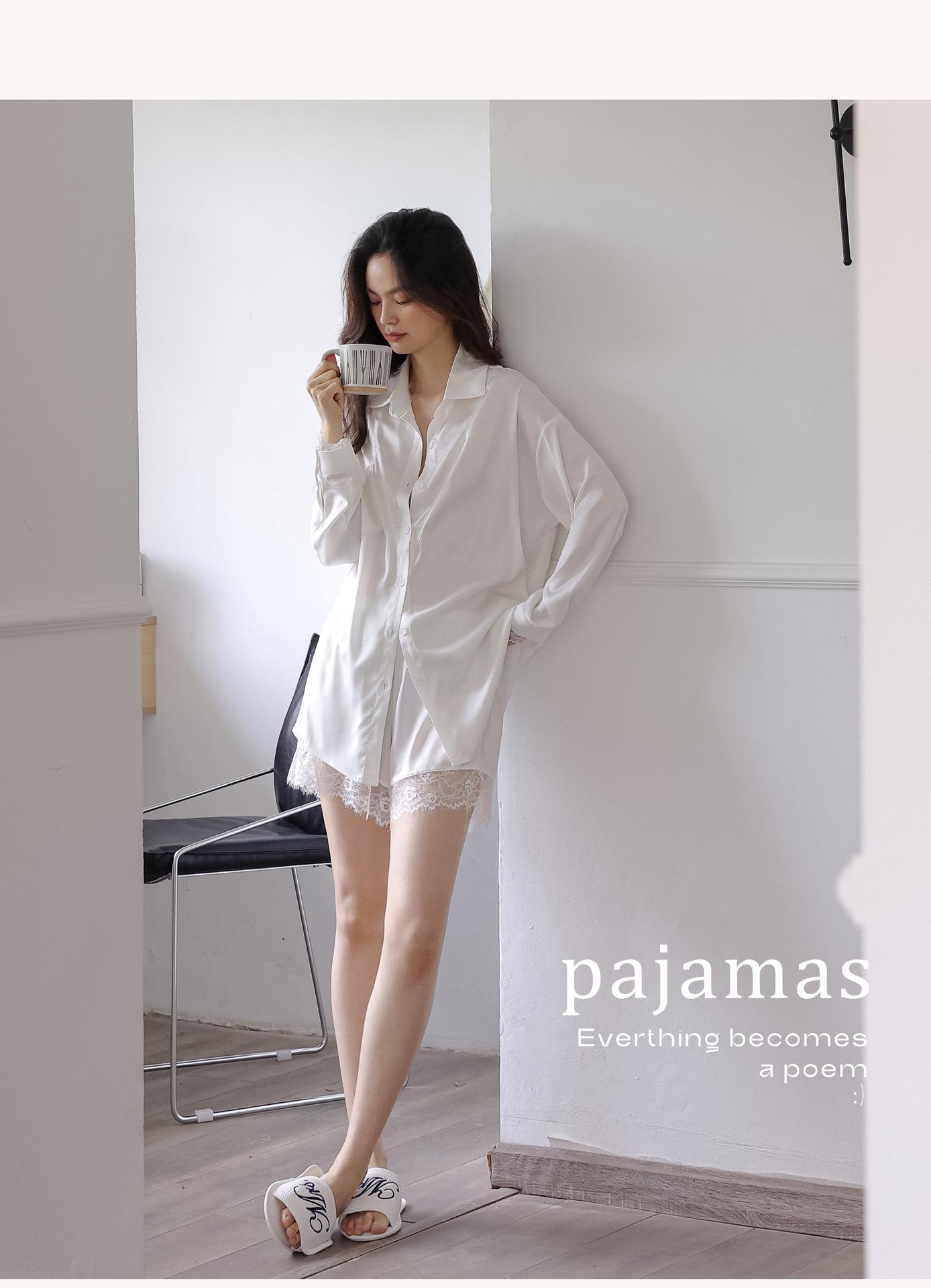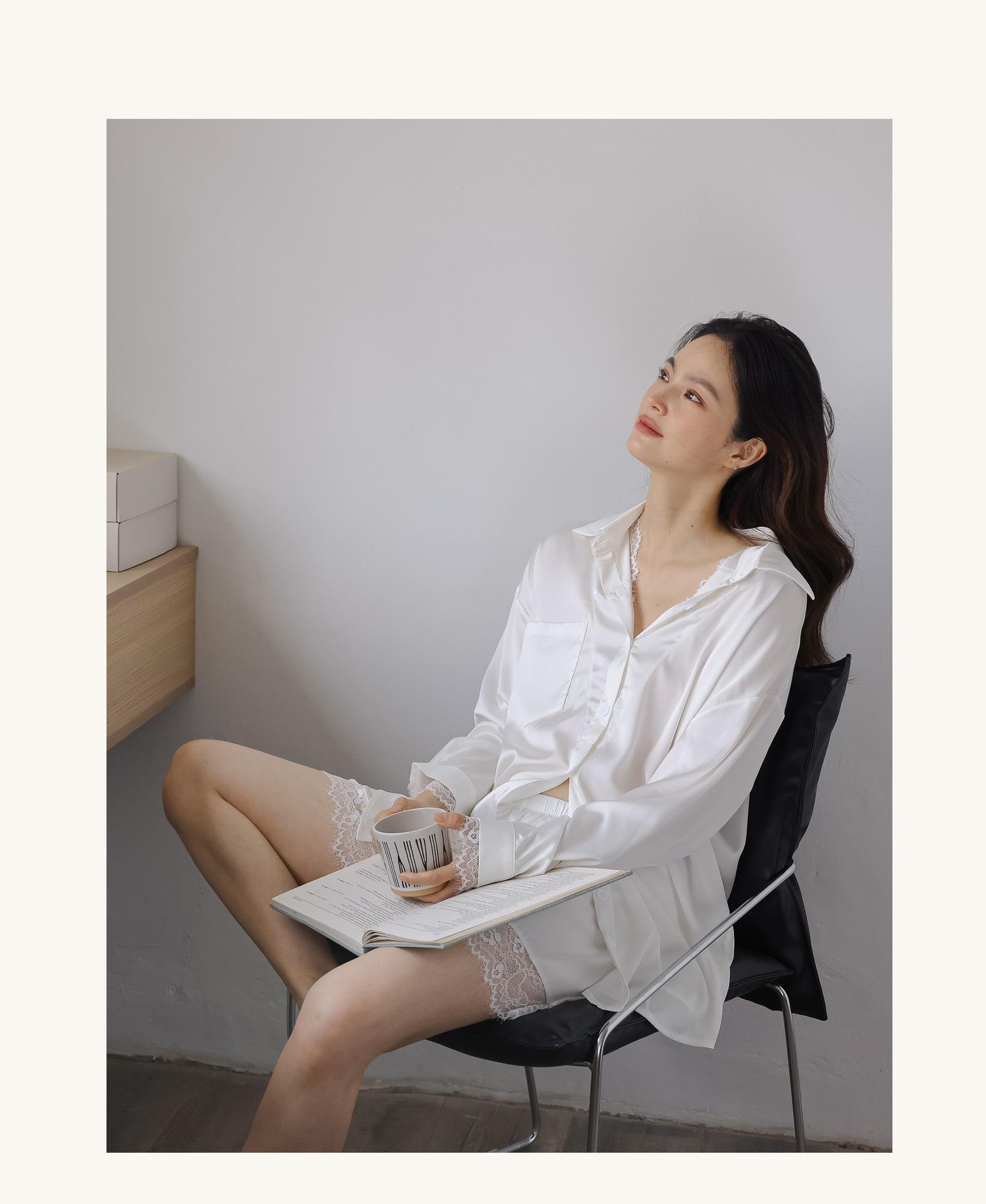 Compra Pijama de Seda de Hielo con Cuello de Camisa Estilo Novio para Mujer Primavera y Verano Delgada Shorts de Encaje Manga Larga Conjunto de Ropa de Casa para Mujer al por mayor en Joom.pro