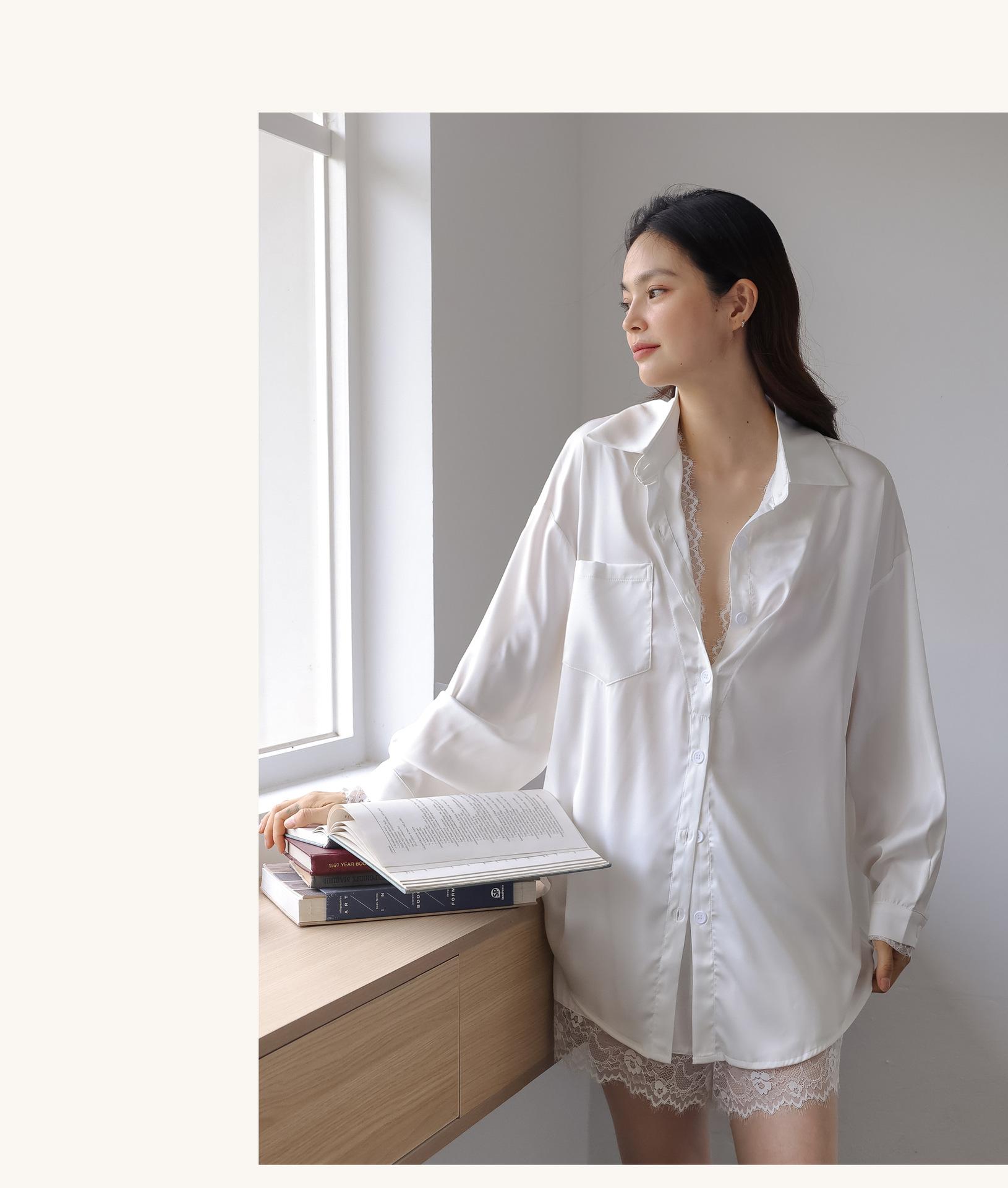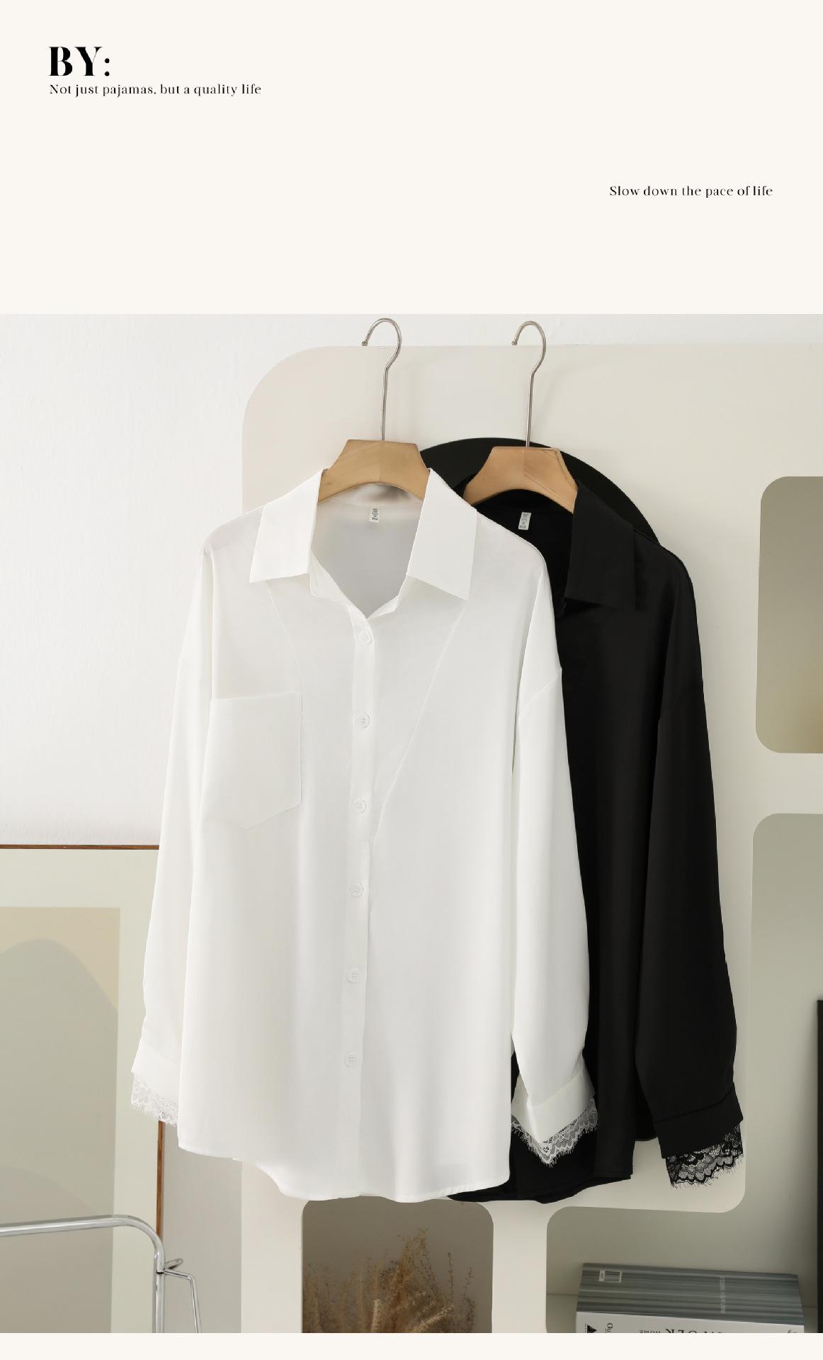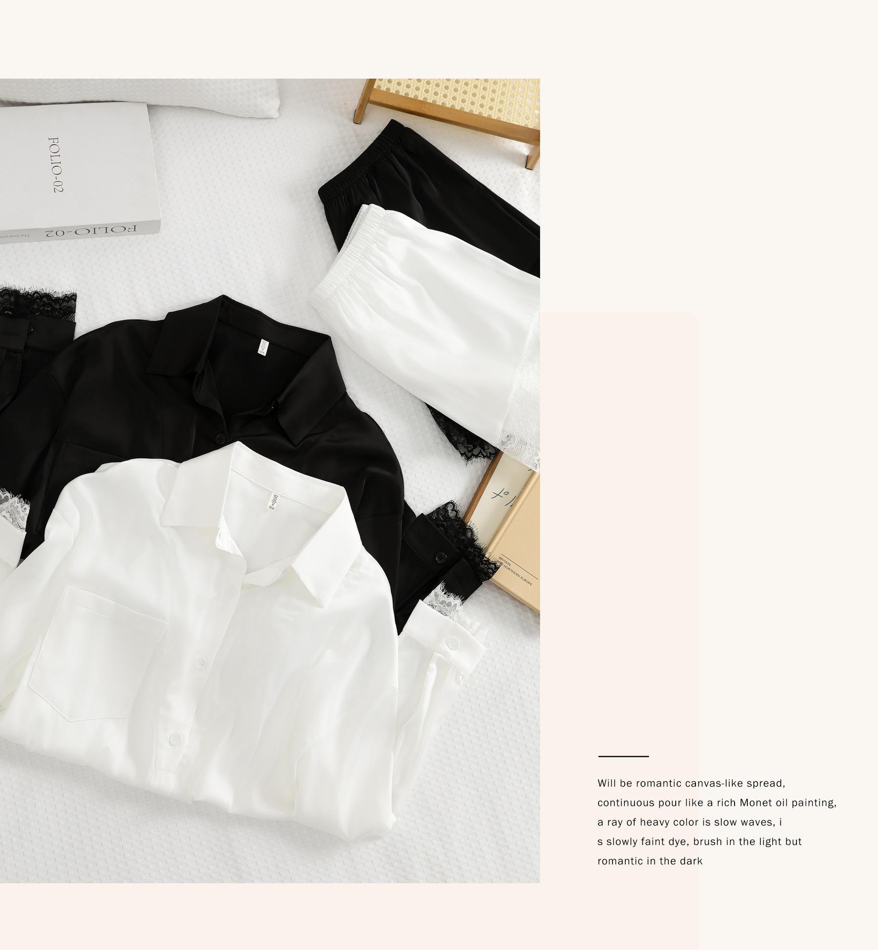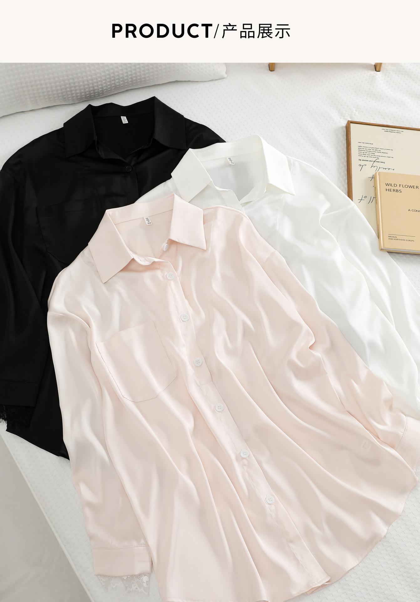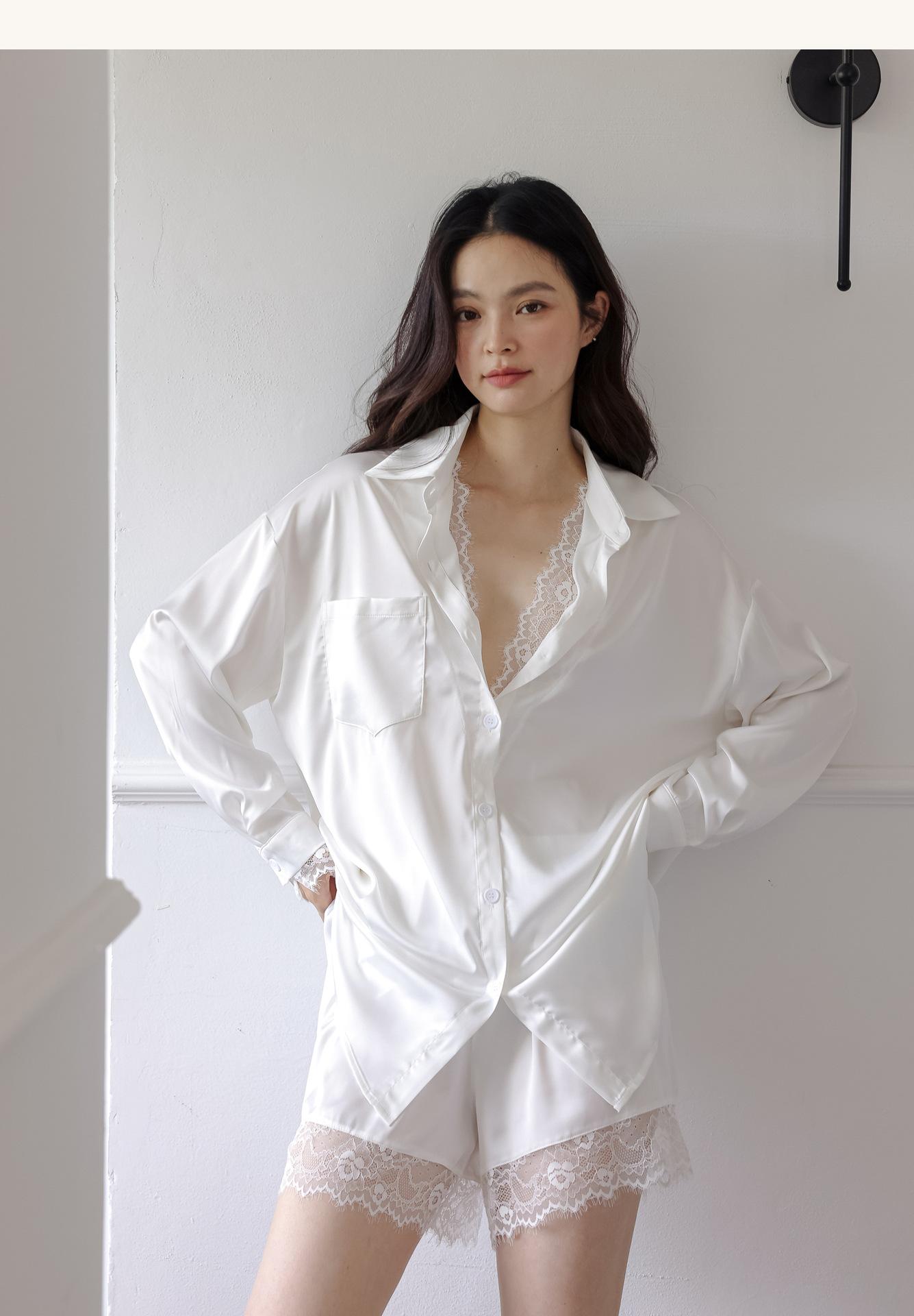 Compra Pijama de Seda de Hielo con Cuello de Camisa Estilo Novio para Mujer Primavera y Verano Delgada Shorts de Encaje Manga Larga Conjunto de Ropa de Casa para Mujer al por mayor en Joom.pro