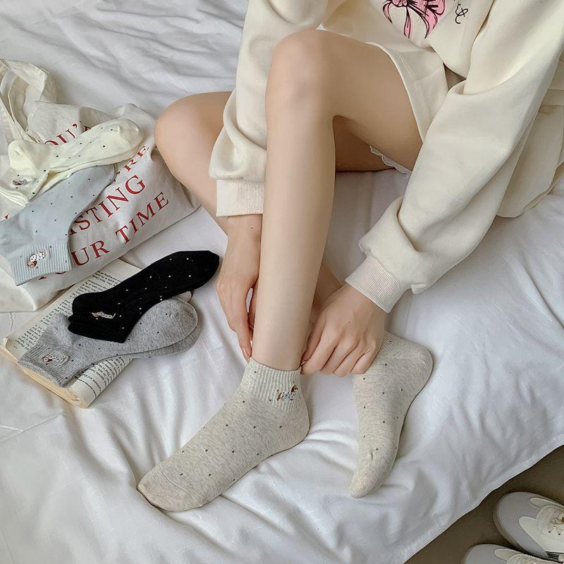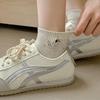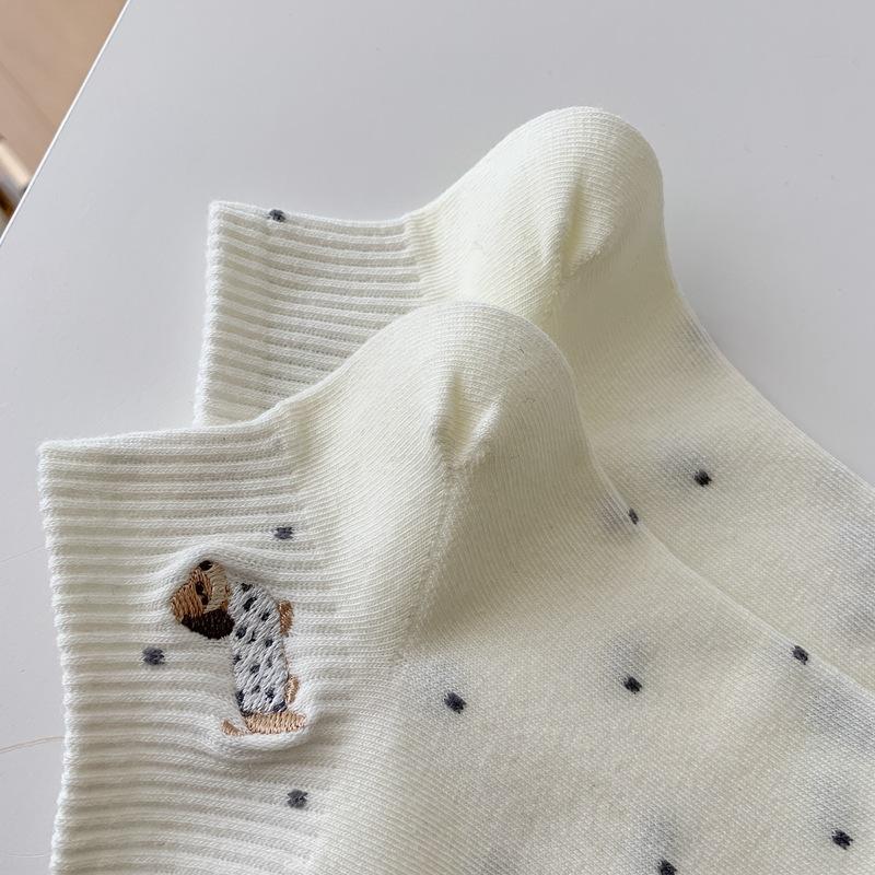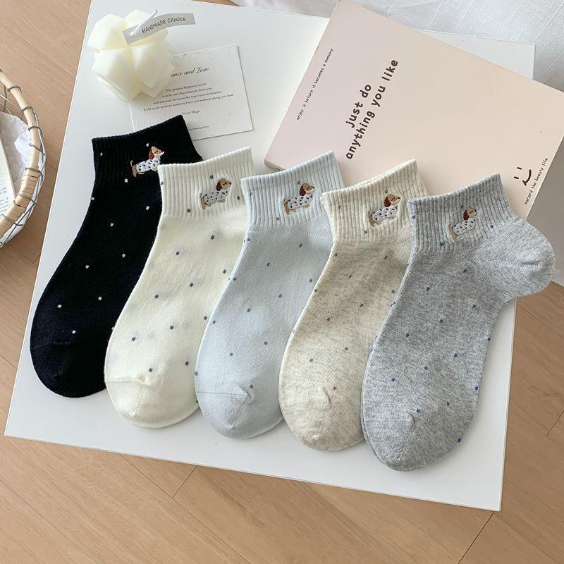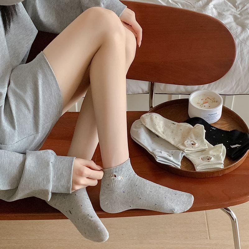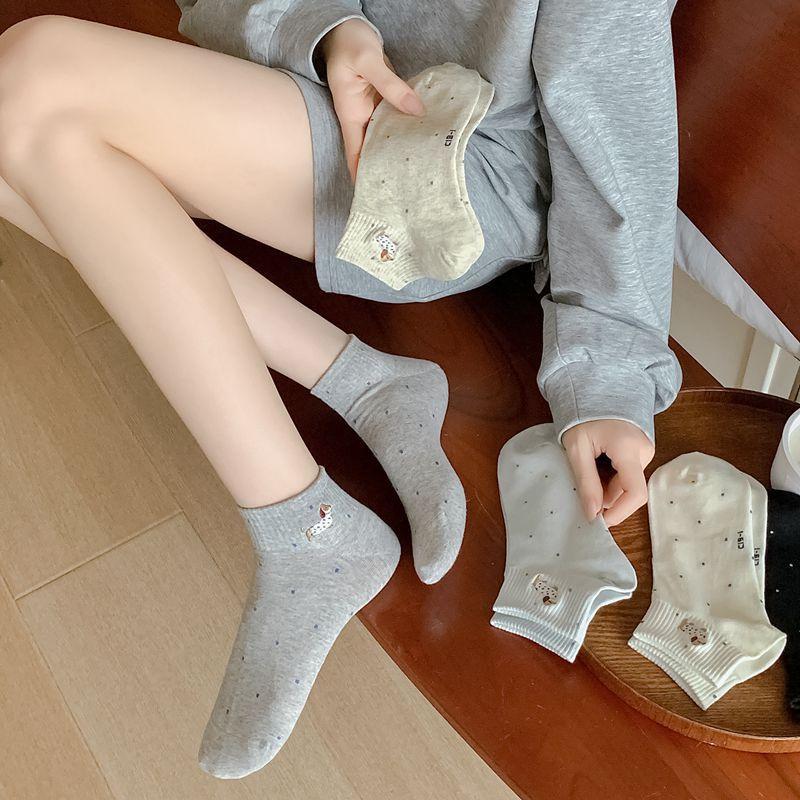Calcetines cortos transpirables de algodón bordado, estilo coreano, de color liso, para primavera y verano de 2025, que absorben el sudor, para mujer, estilo universitario.