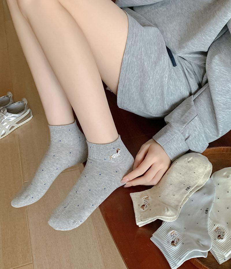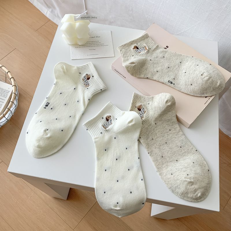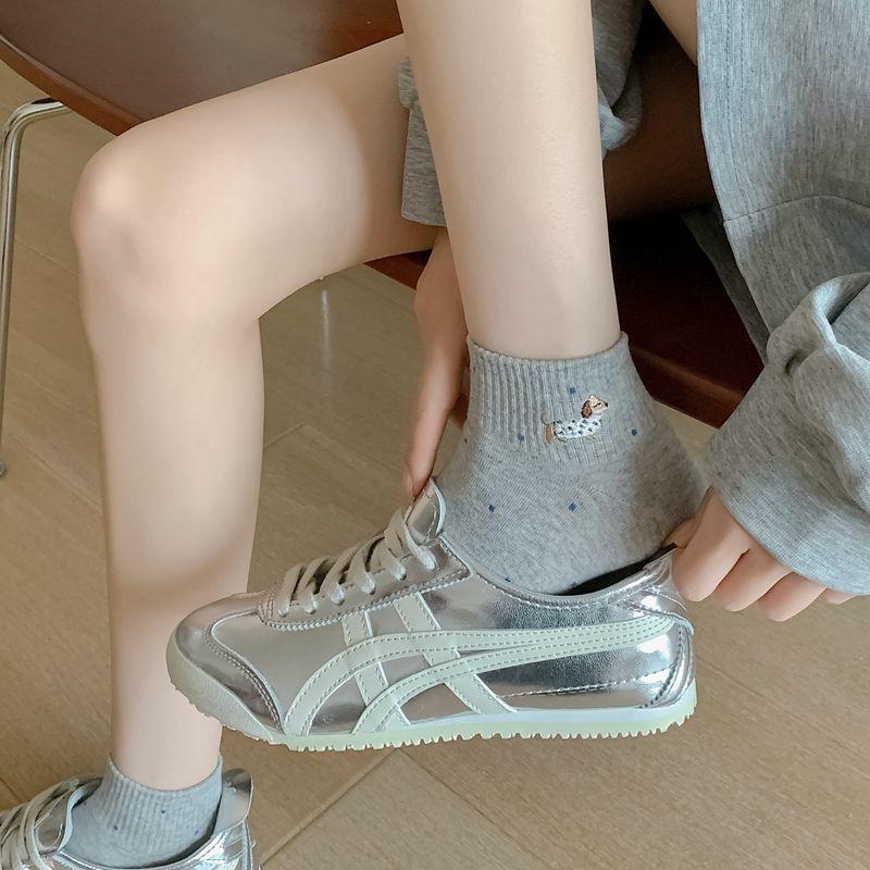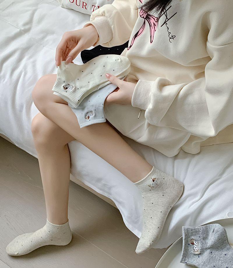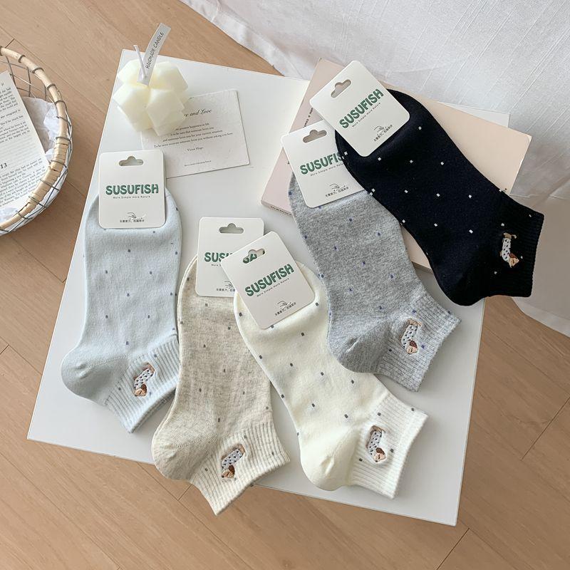 Calcetines cortos transpirables de algodón bordado, estilo coreano, de color liso, para primavera y verano de 2025, que absorben el sudor, para mujer, estilo universitario.