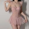 Guiruo - Ropa interior sexy con perspectiva dulce de malla, sexy, hueca, caliente, sin espalda, de talla grande, camisón, uniforme, traje 3655
