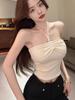 Camisola de encaje con escote en V y lazo para mujer, con almohadilla en el pecho y tubo antideslizamiento.