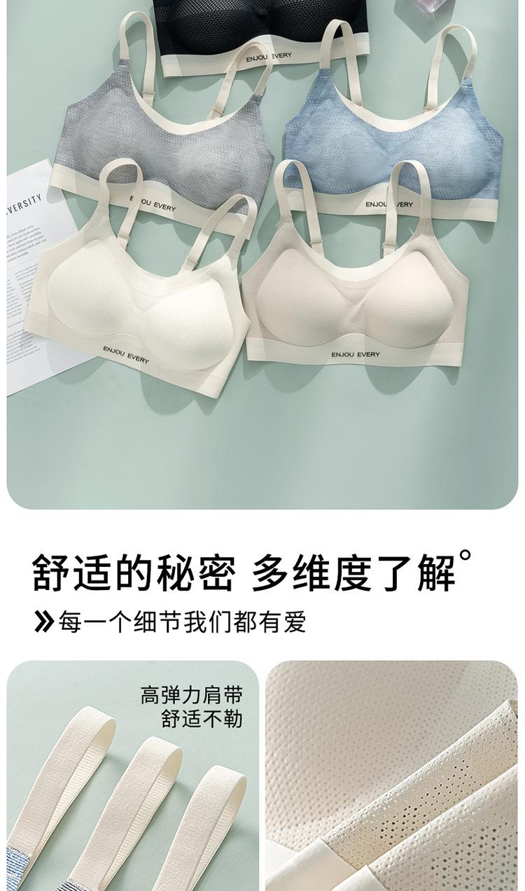Ropa interior deportiva transpirable sin costuras para primavera y verano para mujer Parammary Anticaída Reunión Delgada con cordones Suave Soporte Sujetador