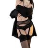 Ropa interior sexy de una pieza con liguero y entrepierna abierta, medias ultrafinas de seda negra, calcetines transparentes para mujer A60