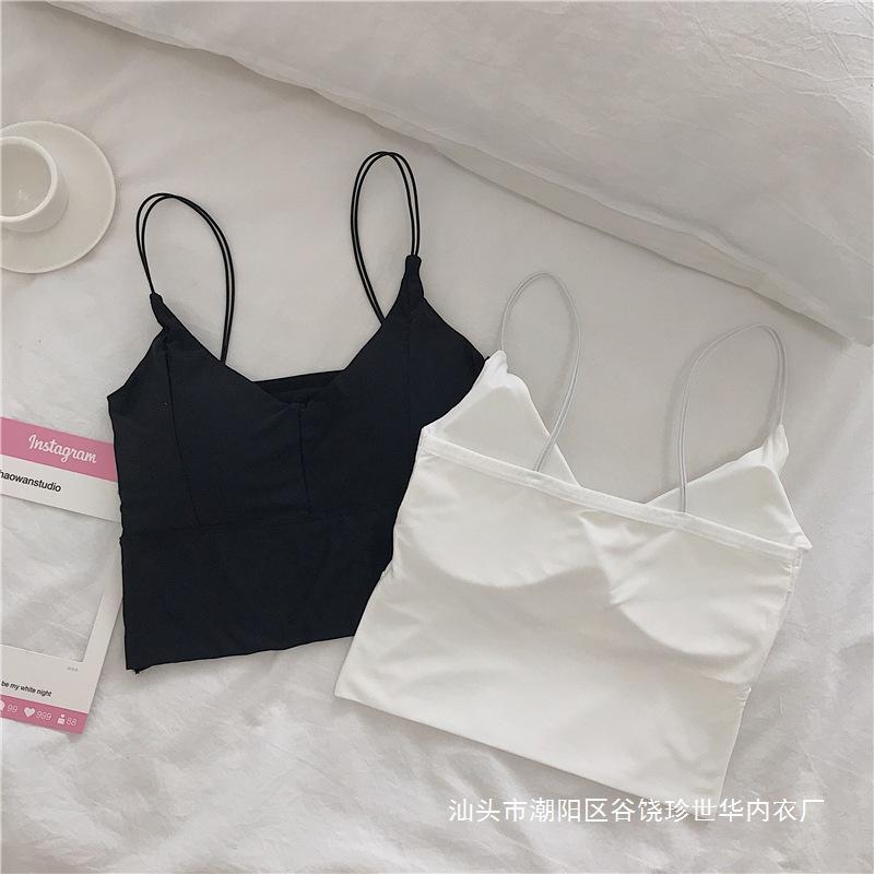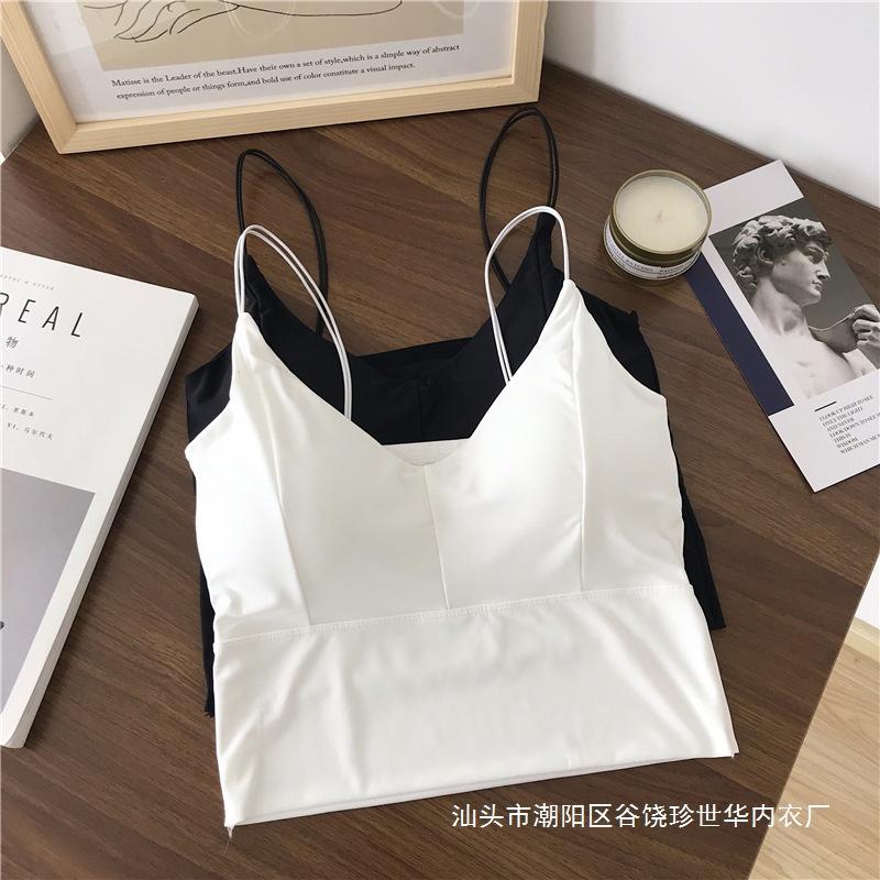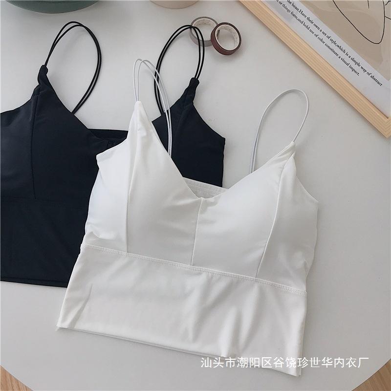 Versátil ropa exterior para niña tirantes con almohadillas en el pecho seda de hielo hermosa espalda tops sin mangas chaleco interior de fondo top de tubo sujetador verano