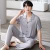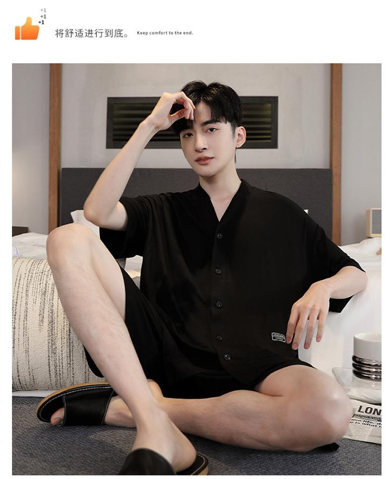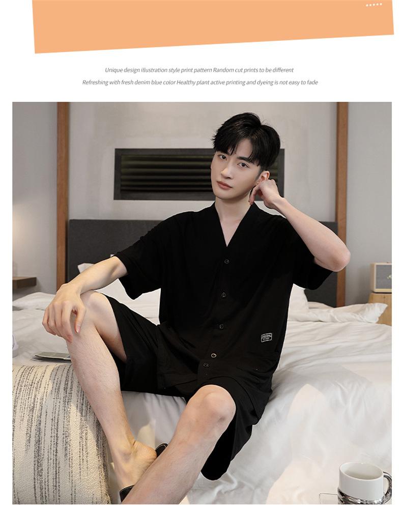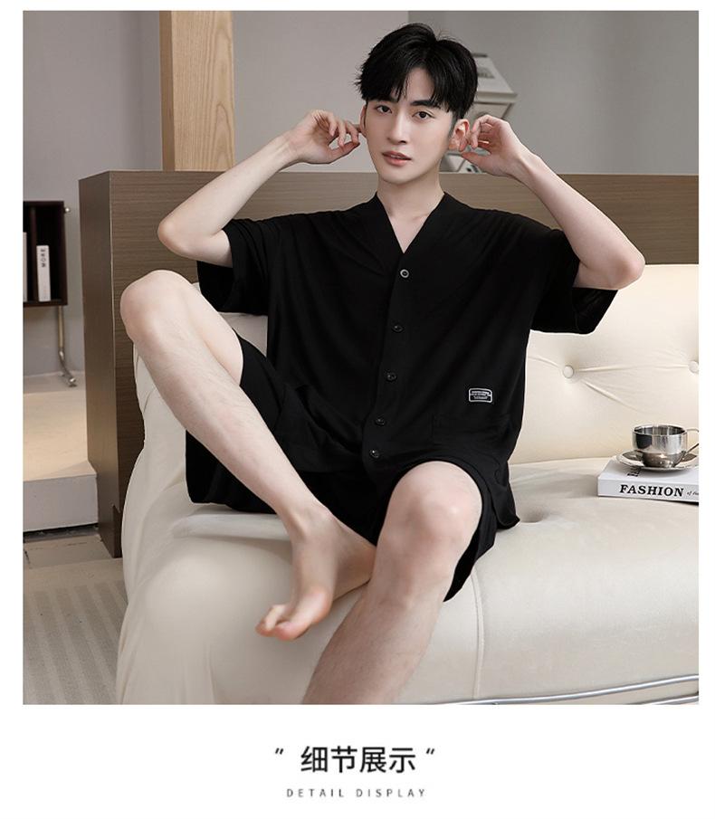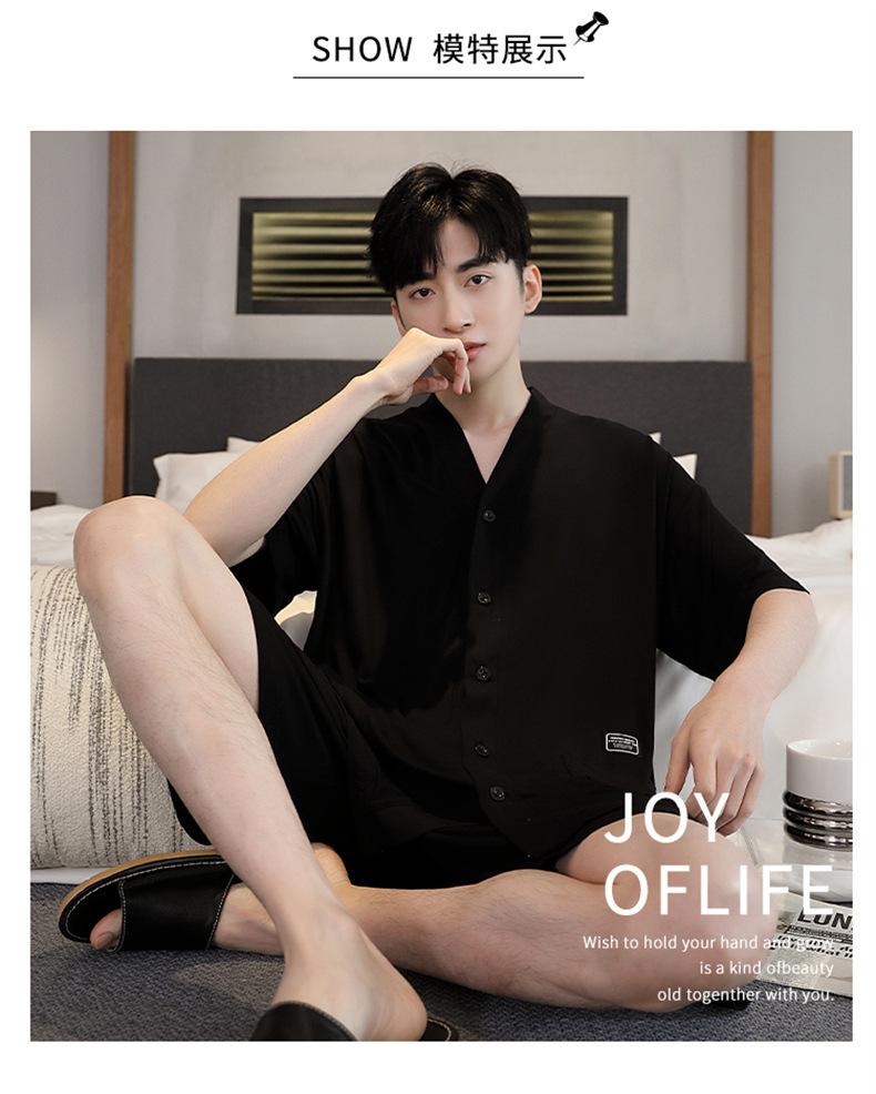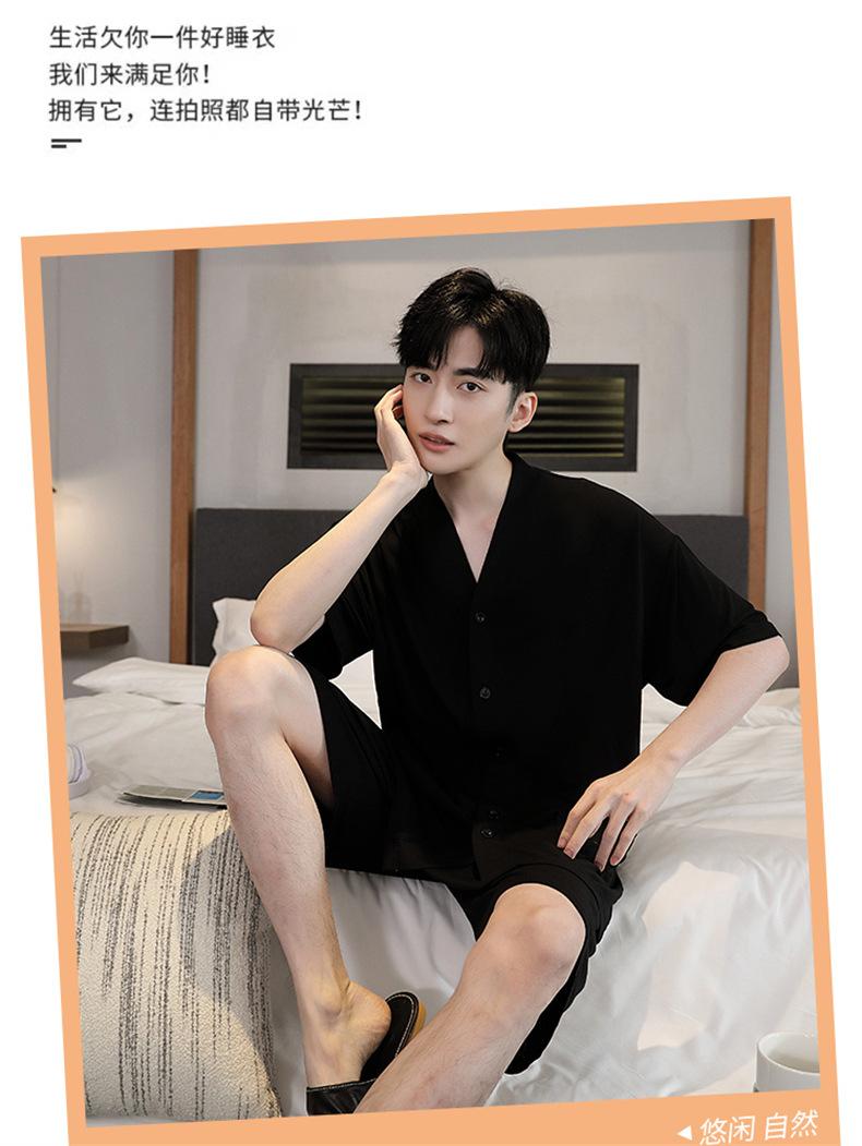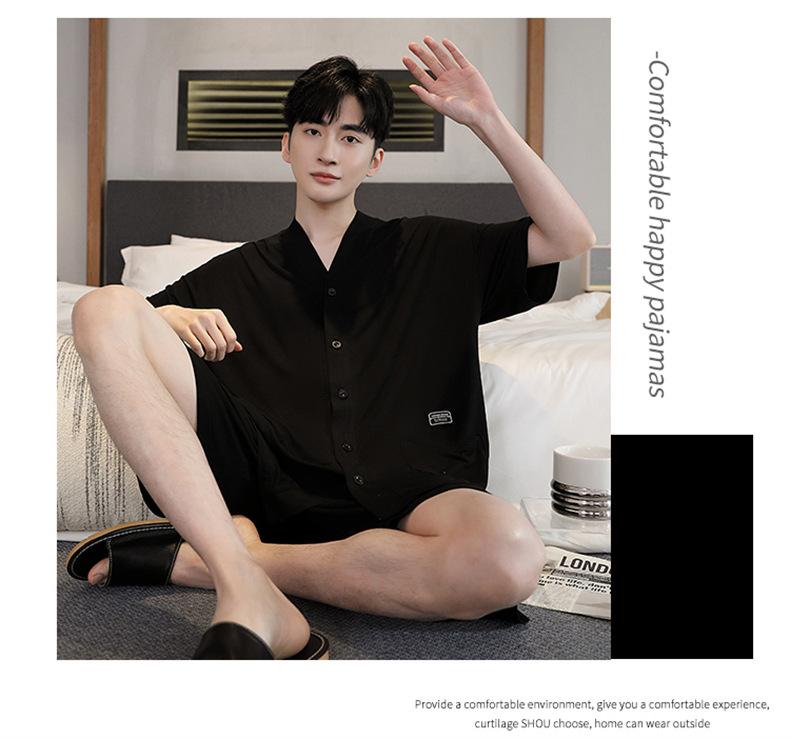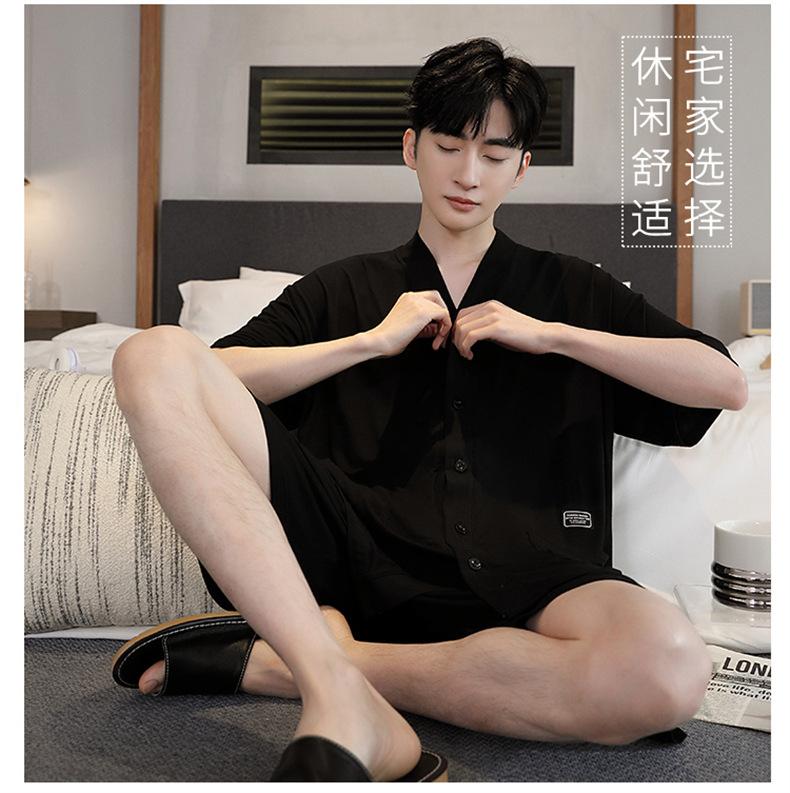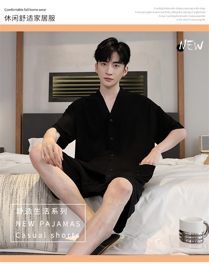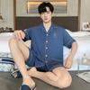 Pijama de verano para hombre, cárdigan de manga corta, pantalones cortos, nuevo, fino, de talla grande, ropa de casa juvenil de verano