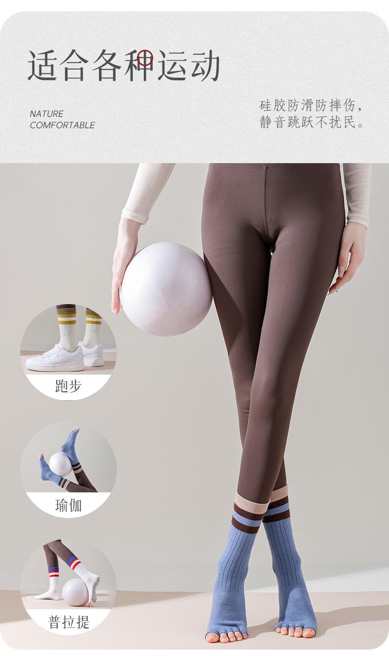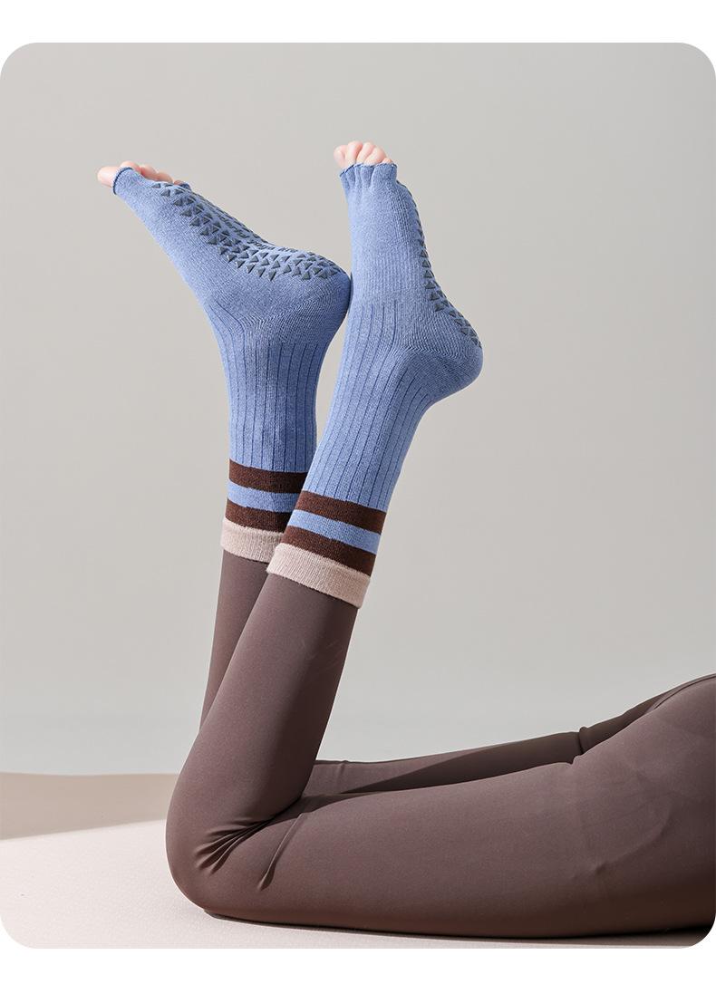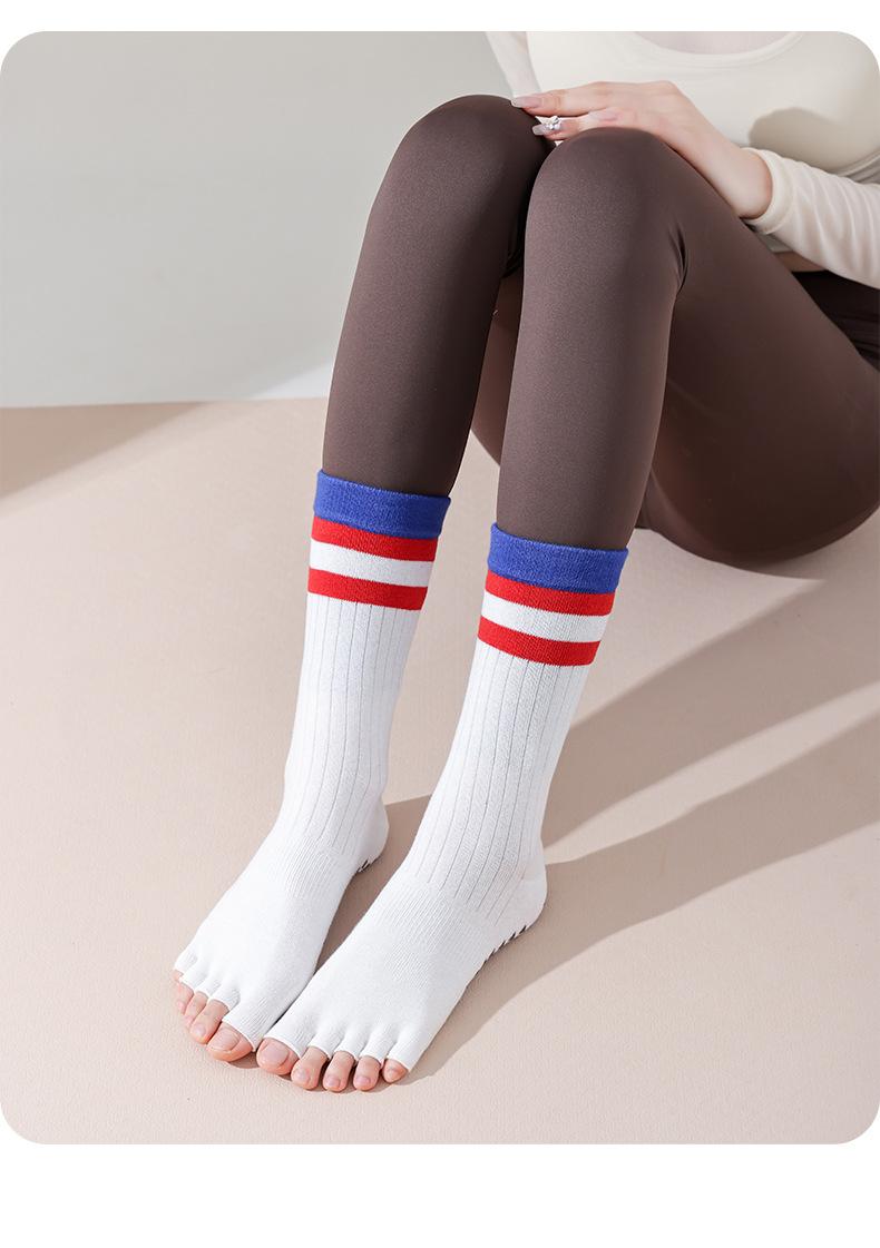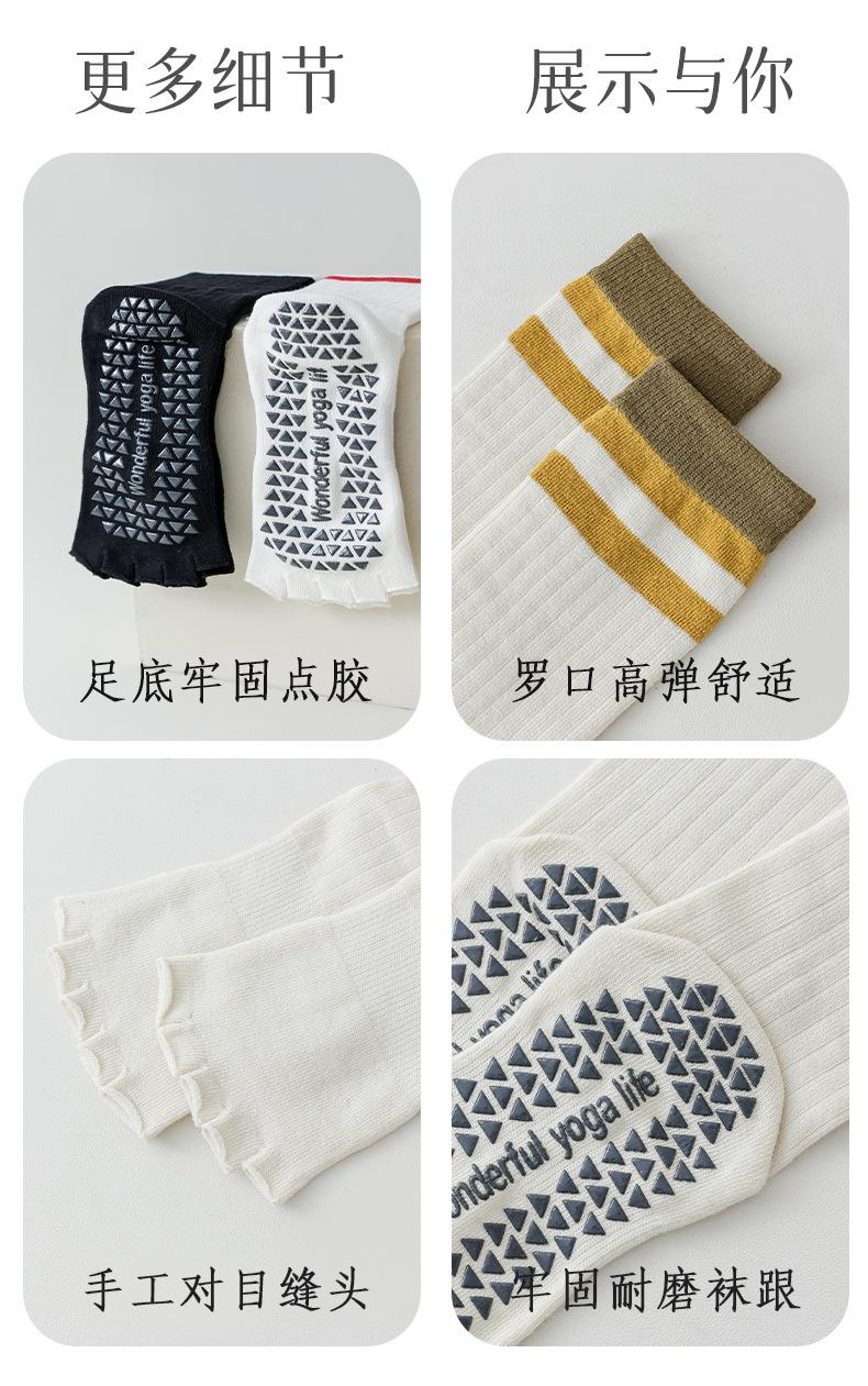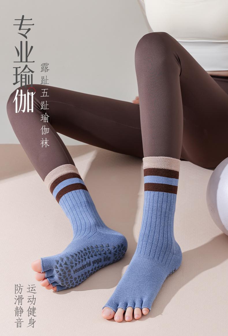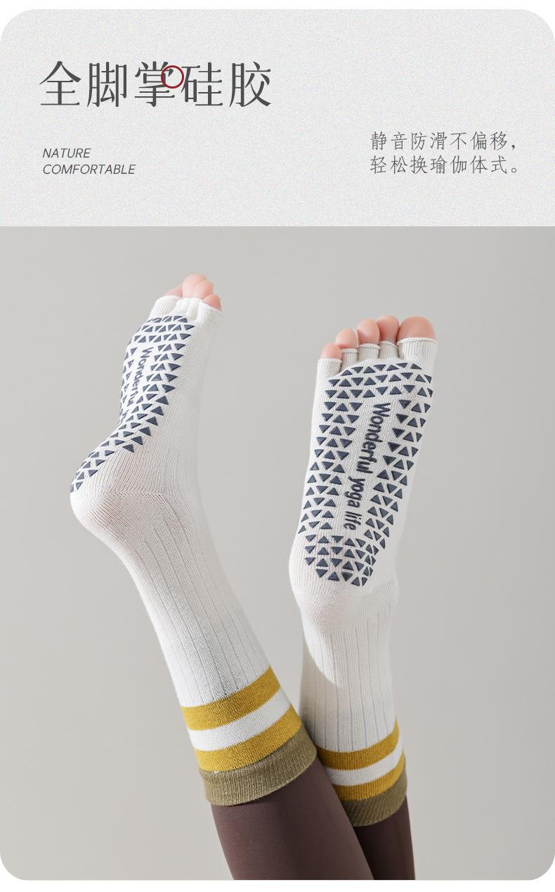 Calcetines de Yoga de Cinco Dedos con Puntera Abierta para Mujer, Estilo Primavera y Otoño, Algodón Puro de Media Caña Profesionales Antideslizantes Pilates Fitness Interior Calcetines Deportivos