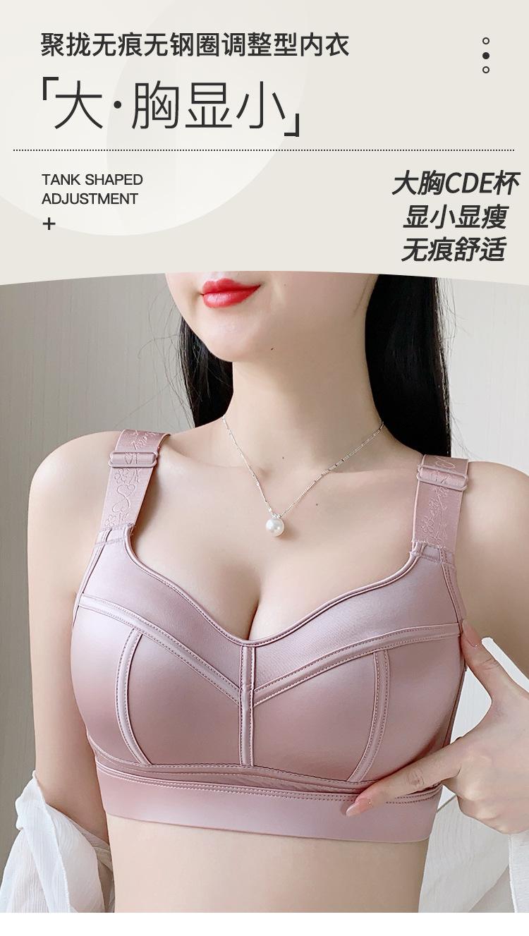 Ropa interior sin costuras de verano para mujer, fina, de pecho grande, pequeña, antiflacidez, talla grande, sujetador sin aro, sujetador para el pecho fruncido