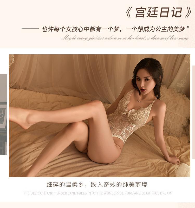 Lencería divertida nocturna, mono de tentación de encaje sexy para mujer, archivo abierto, perspectiva hueca caliente, traje de pijama uniforme