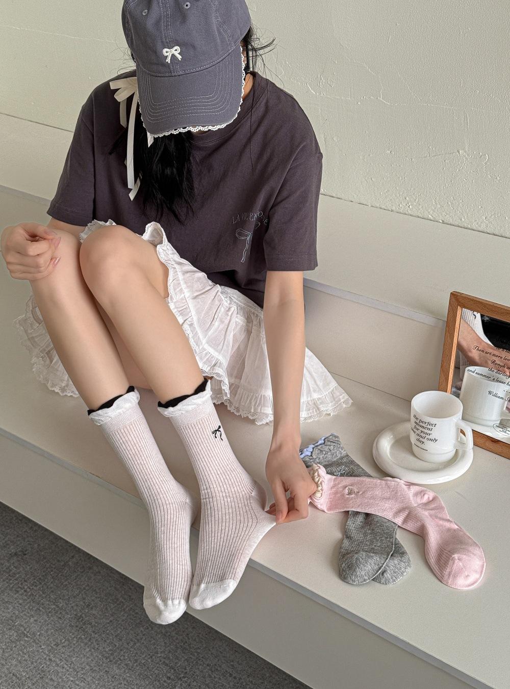 Calcetines finos de algodón para mujer, de primavera y verano, con desodorante, bordados con lazo, versátiles, al por mayor