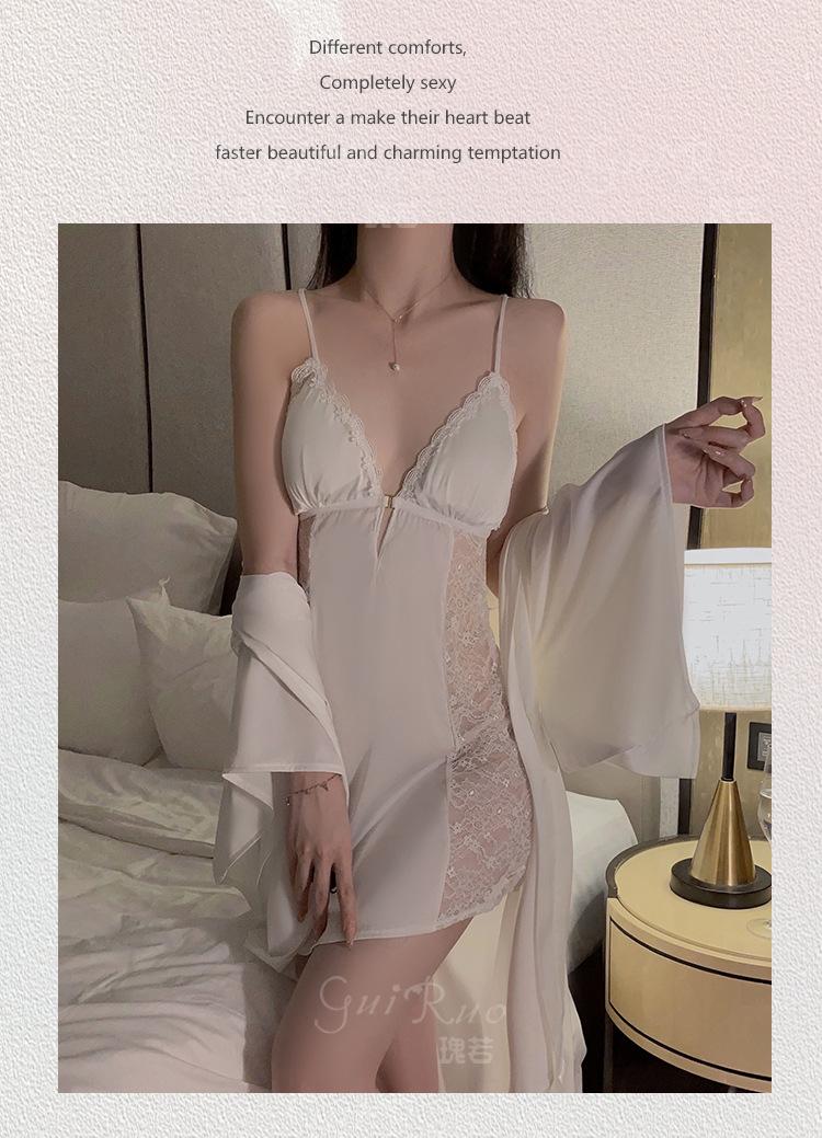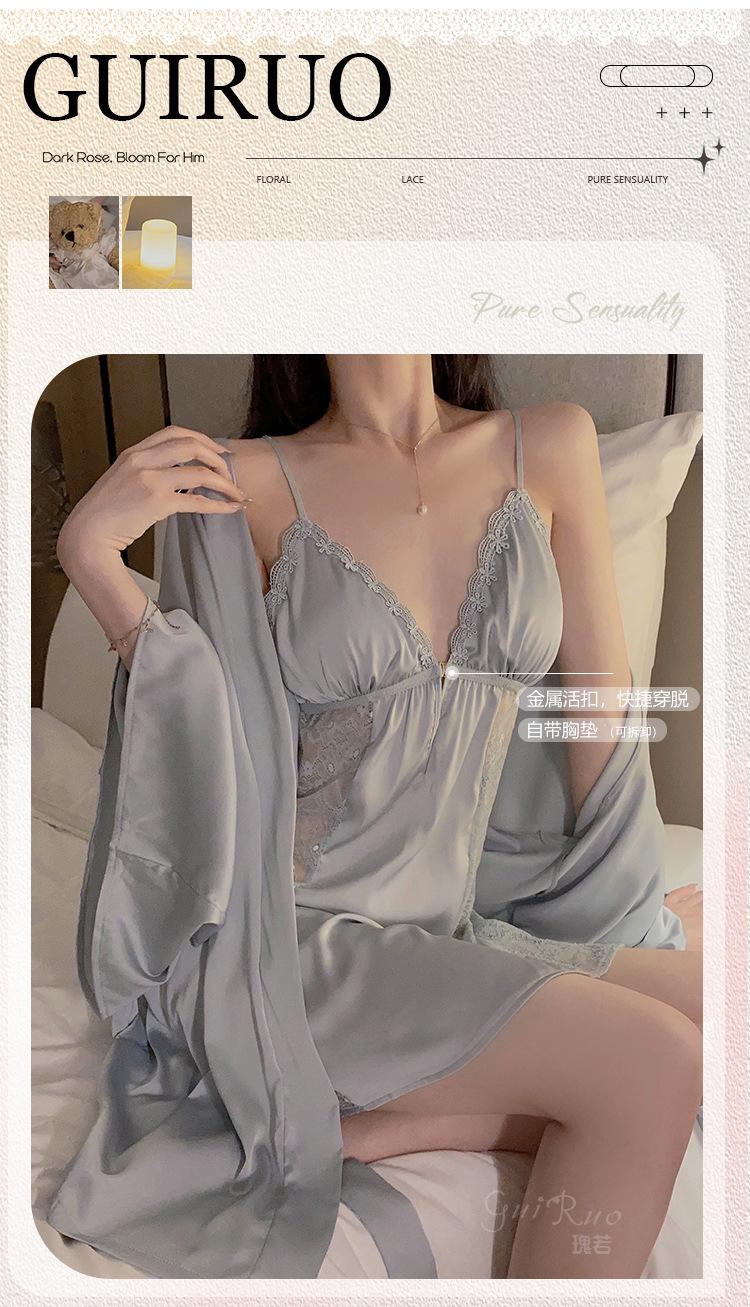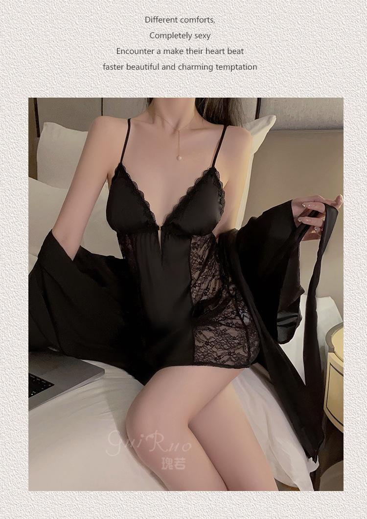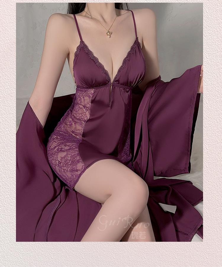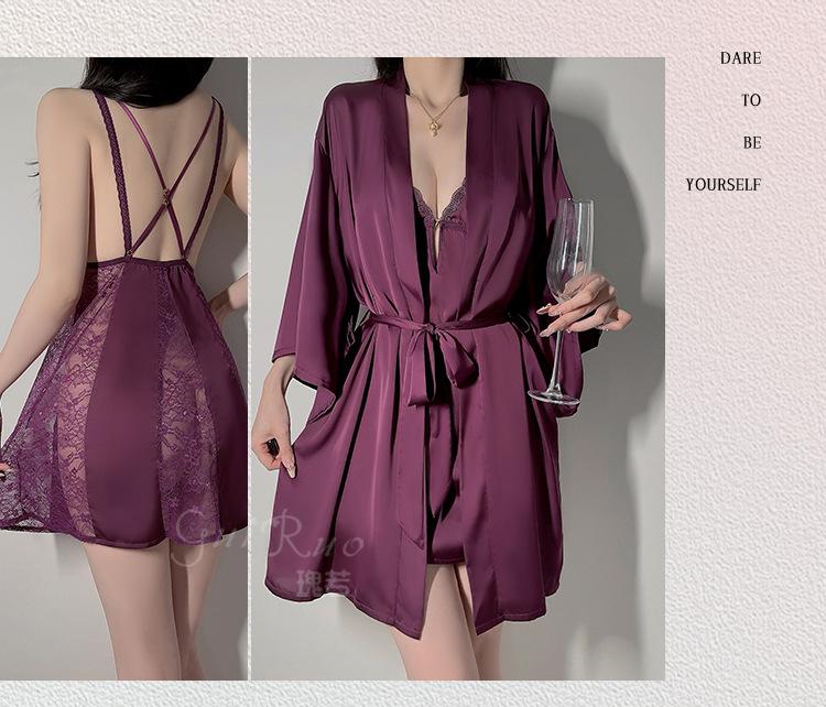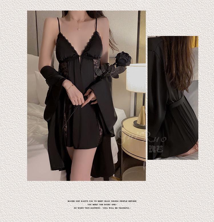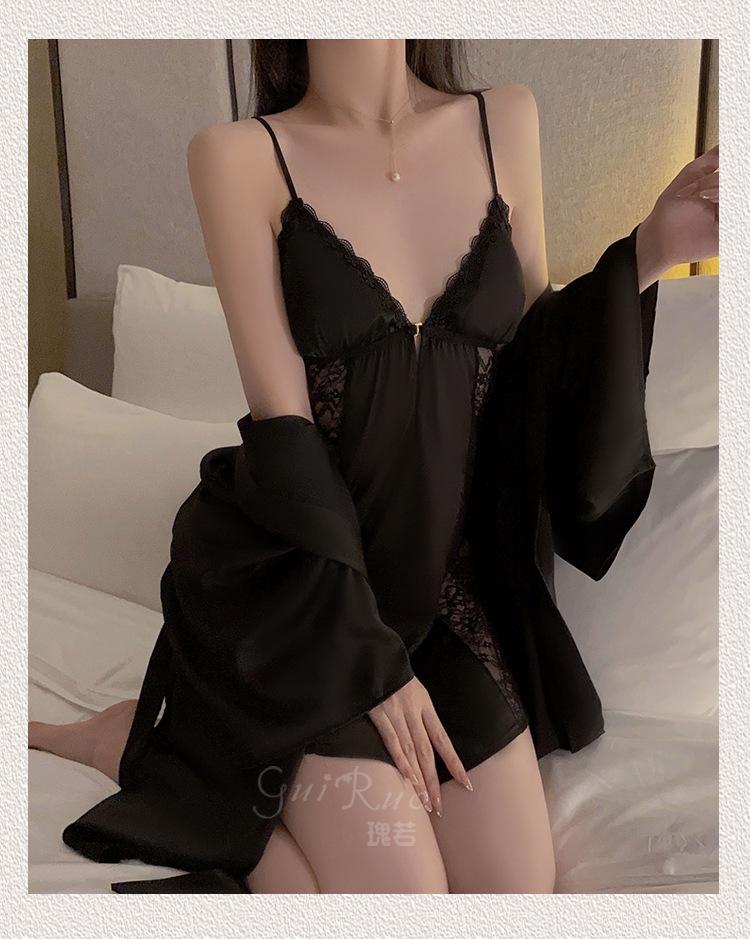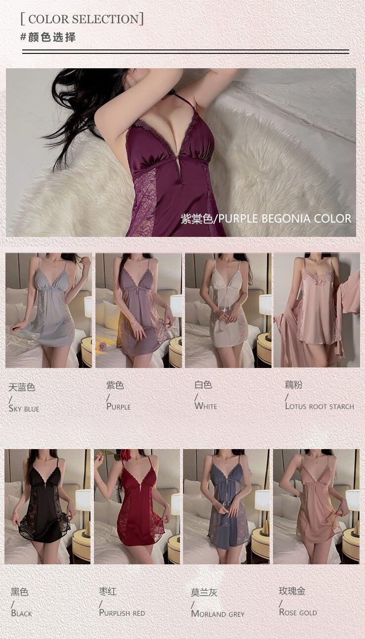 Black (nightgown + breast pad), Black (robe + belt), White (nightgown + breast pad), White (robe + belt), Maro...