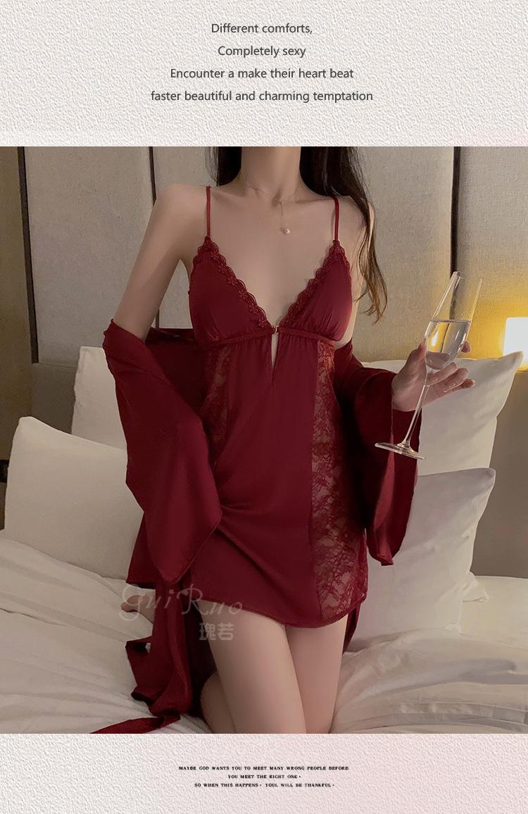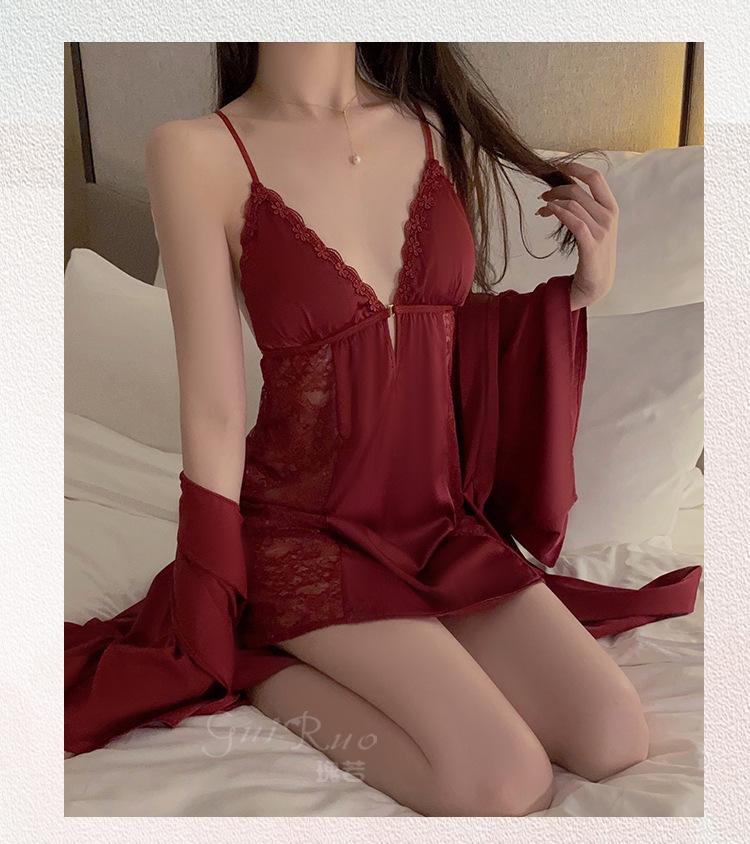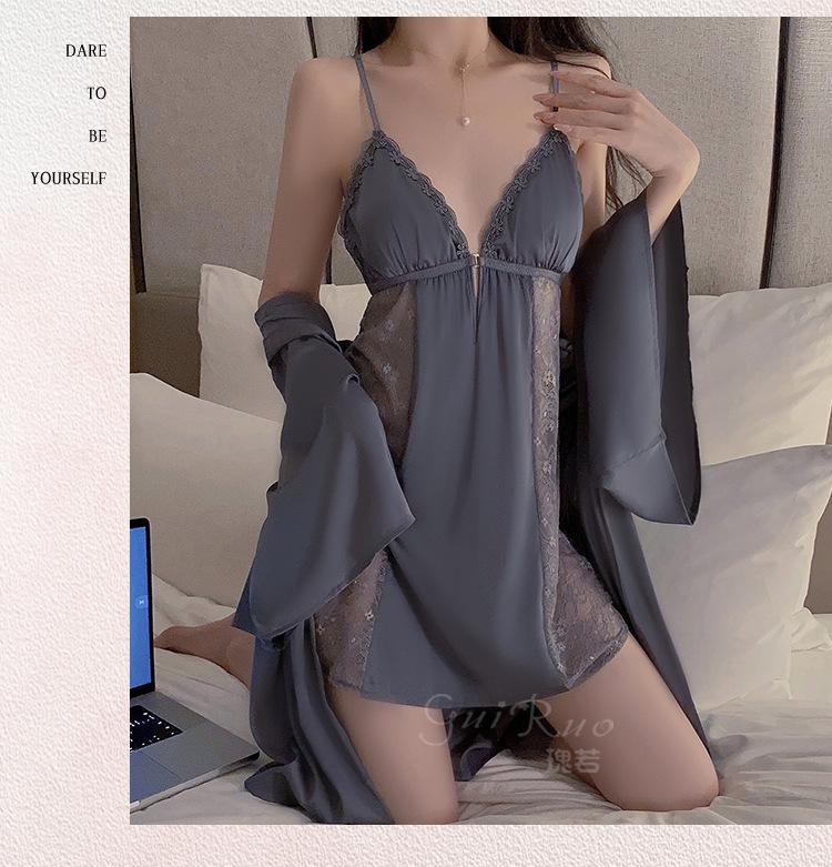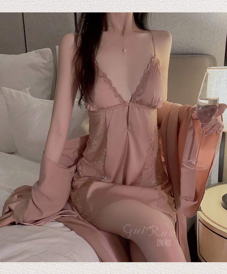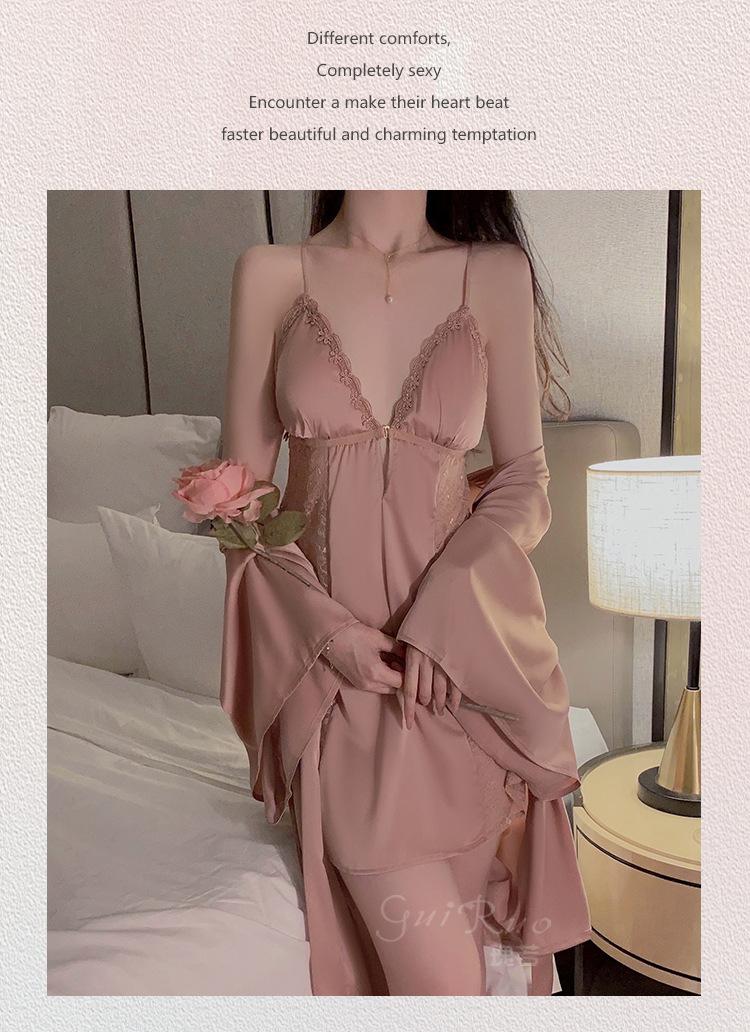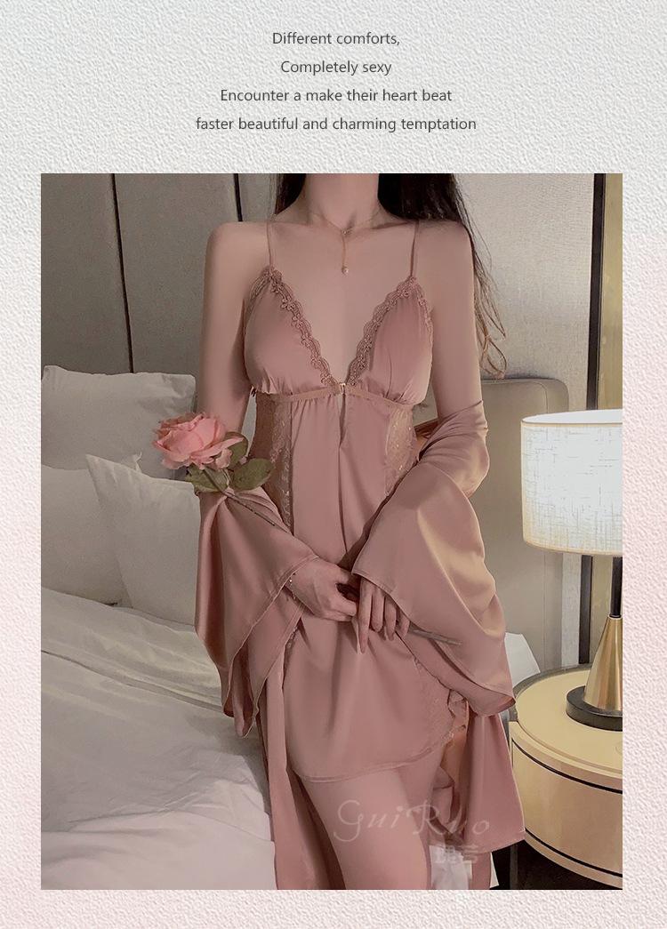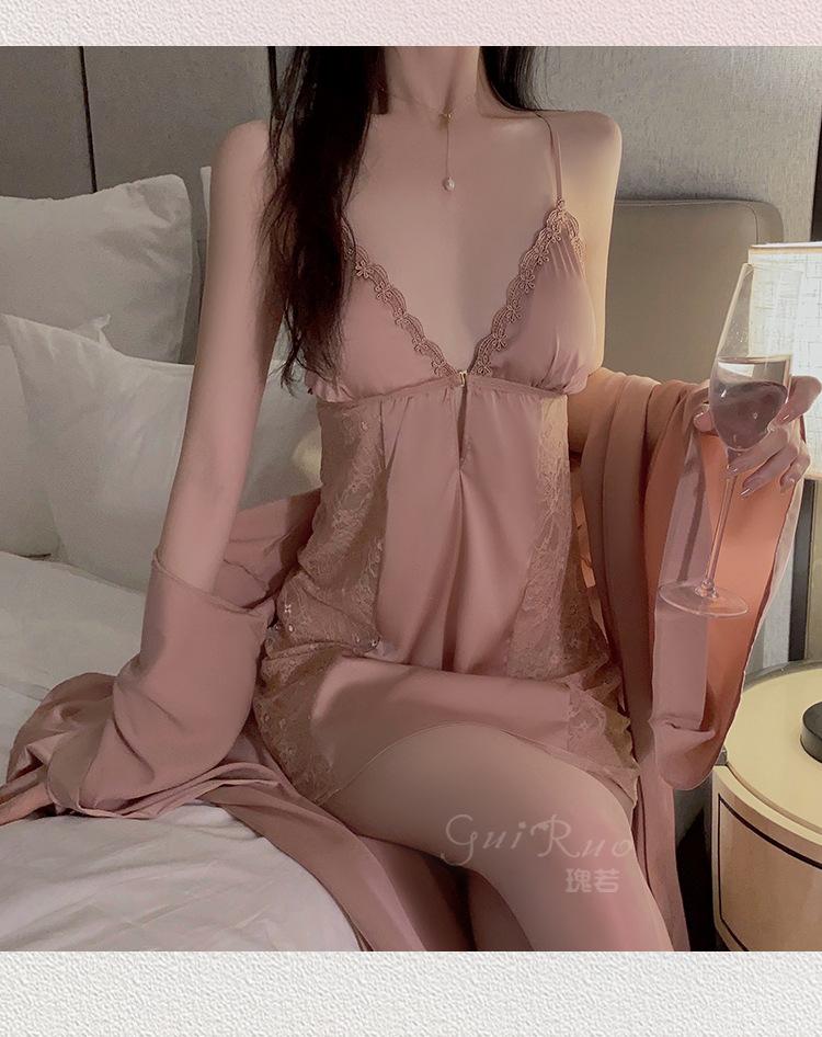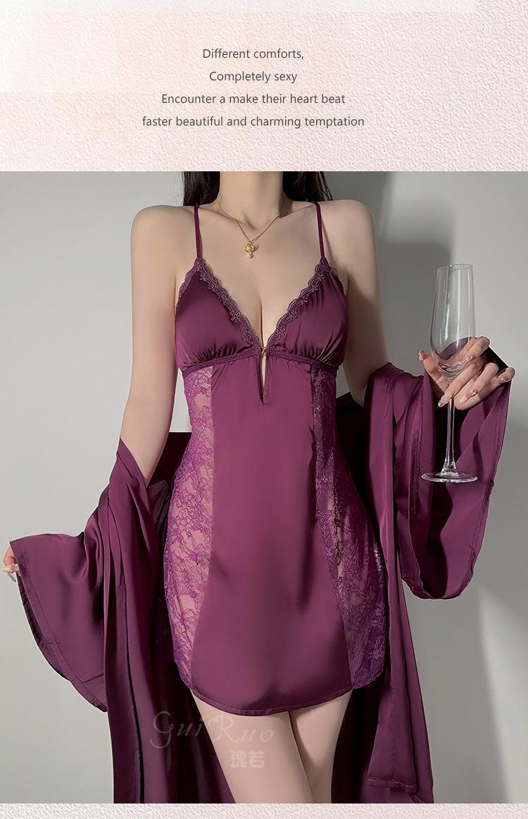 Black (nightgown + breast pad), Black (robe + belt), White (nightgown + breast pad), White (robe + belt), Maro...