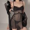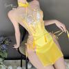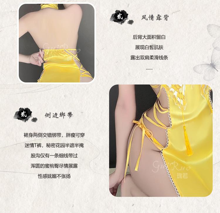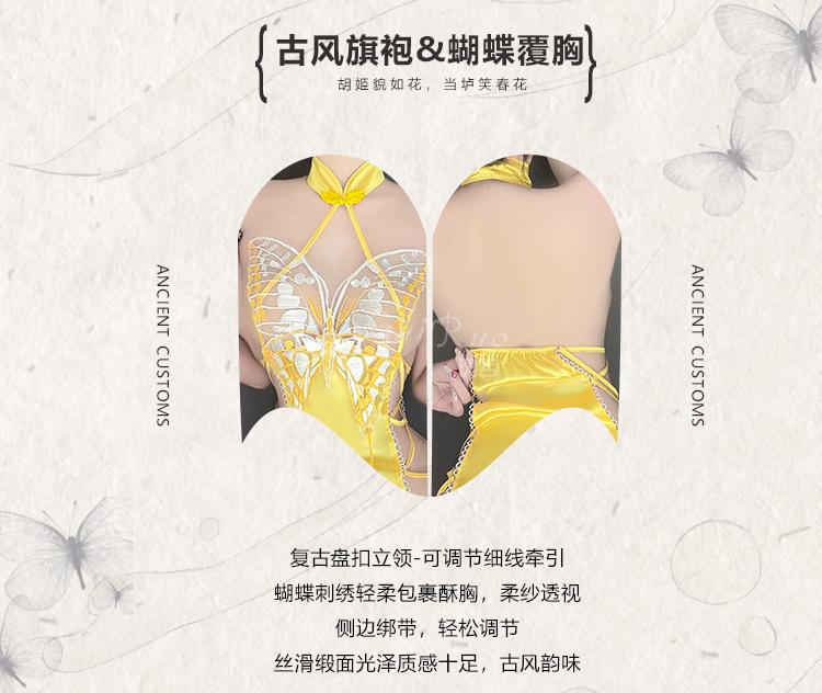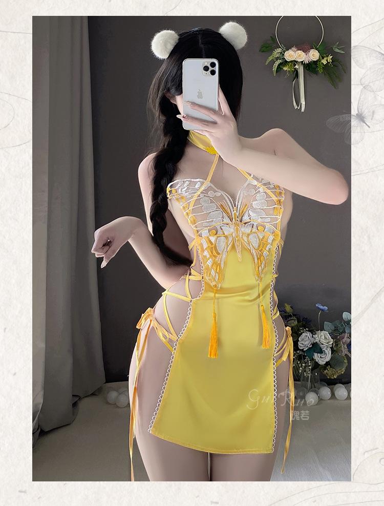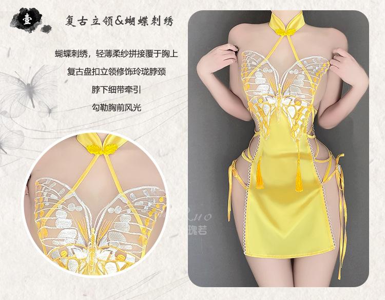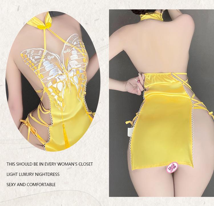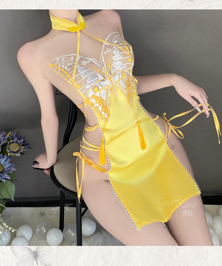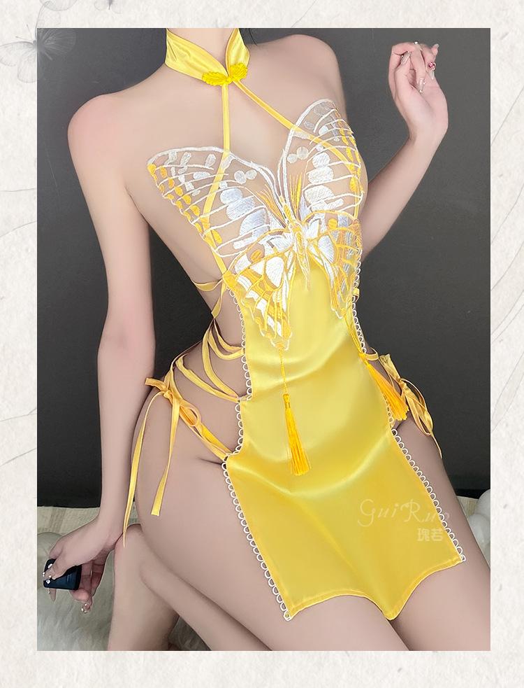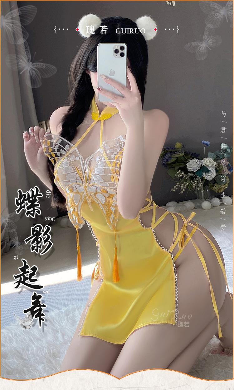 Lencería sexy Guiruo con abertura en la espalda y encaje de mariposa, camisón de encaje puro con cuello alto, cheongsam, 4288