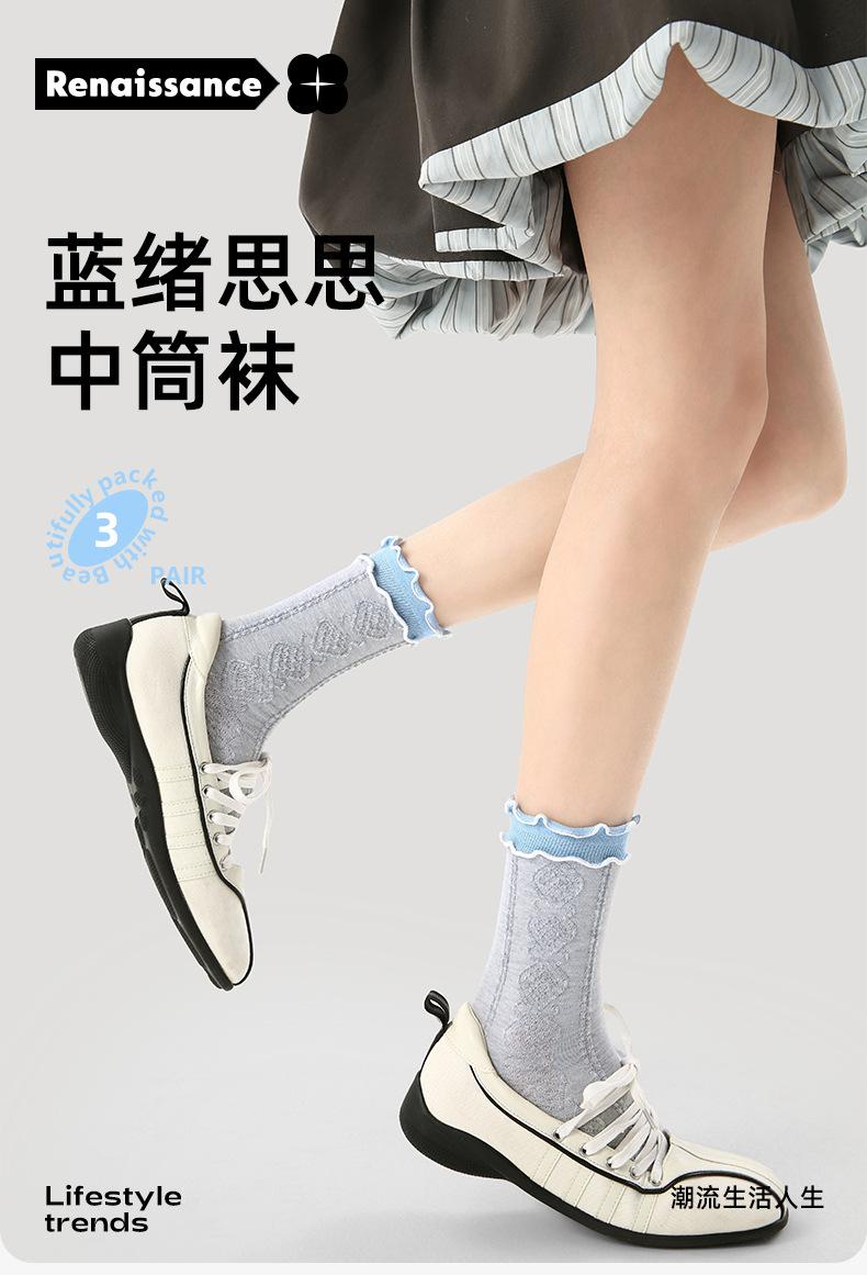 Calcetines originales renacentistas para mujer, de primavera y verano, de tubo medio, de color liso, sencillos, de algodón peinado, para estudiantes, de moda.