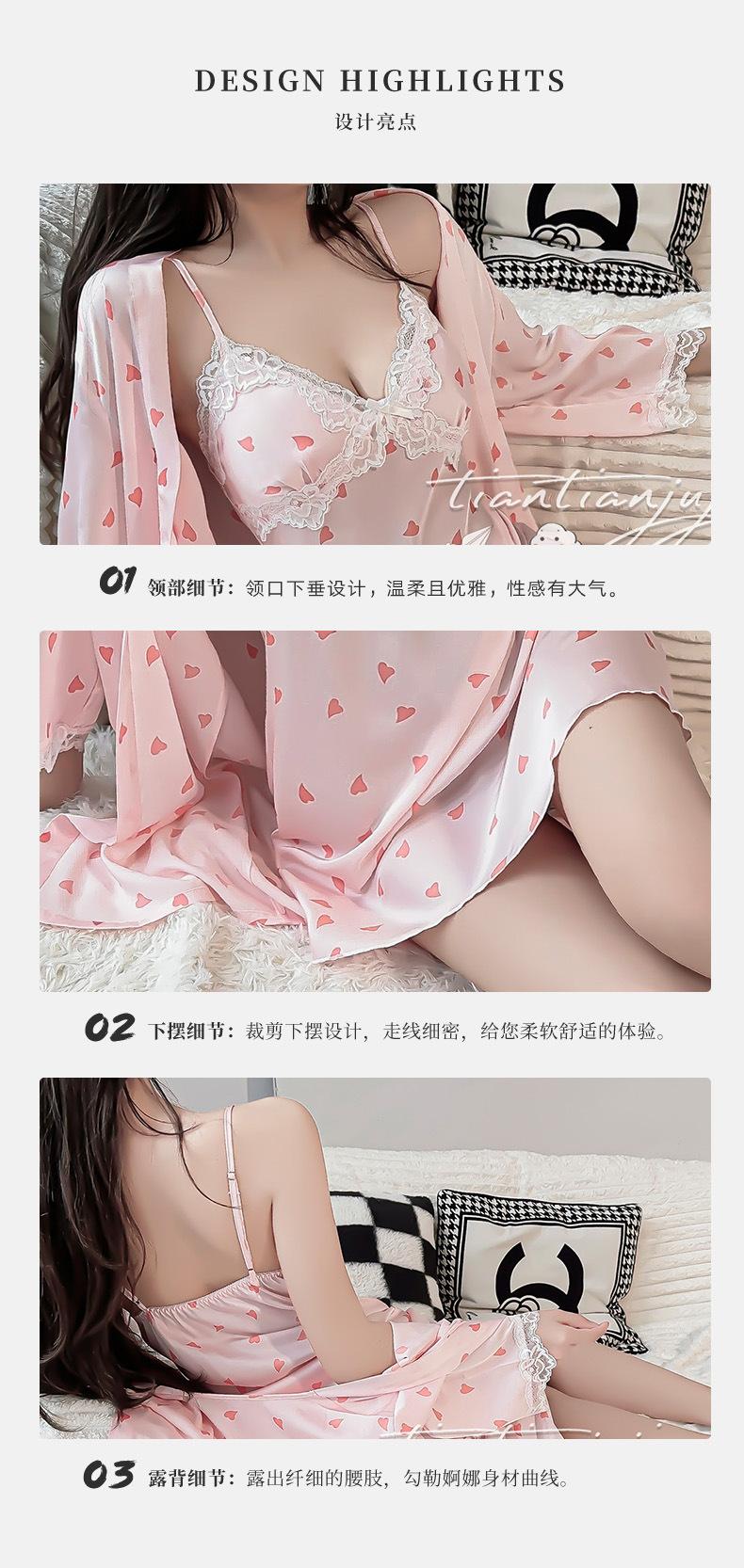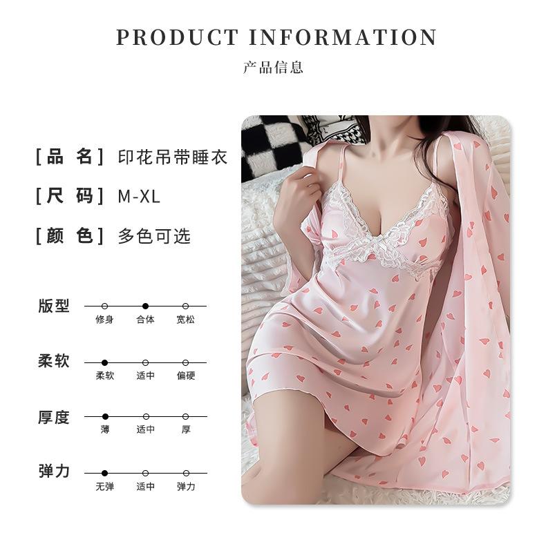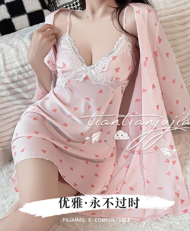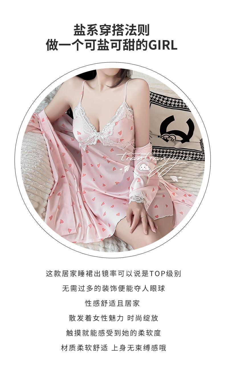 Dulce Princesa Sexy Camisón Encaje Lazo Tirante Primavera y Otoño Pijama Verano Seda de Hielo Estilo Deseo Puro Ins Almohadilla para el Pecho