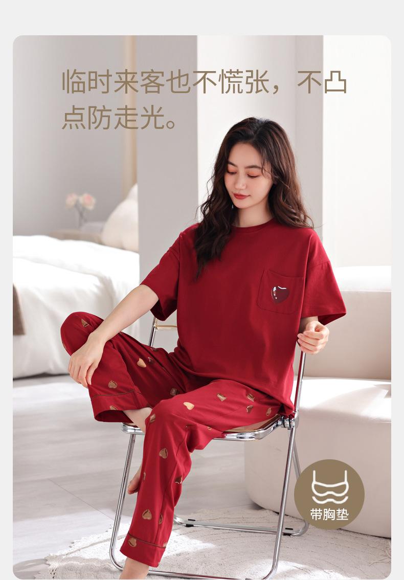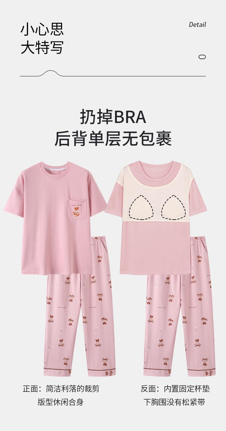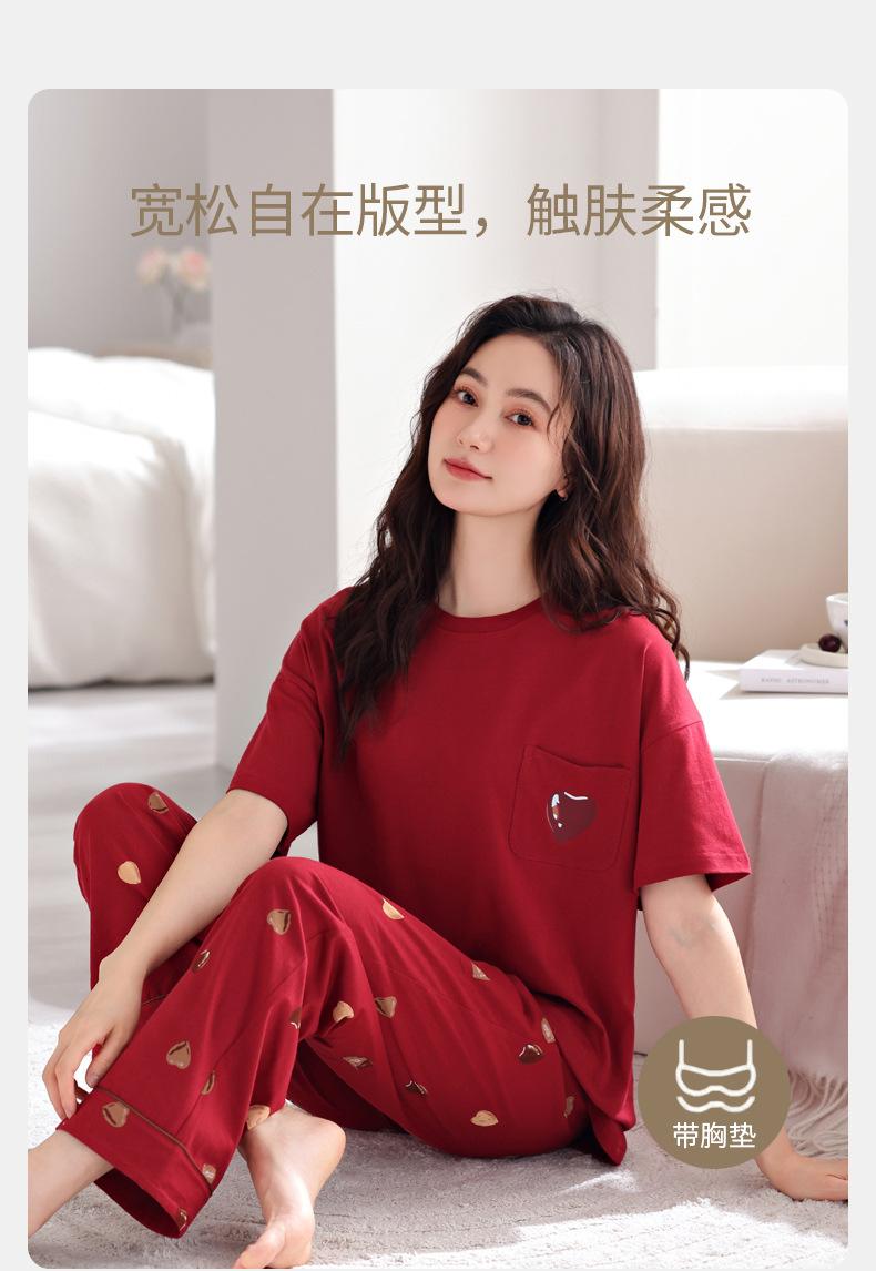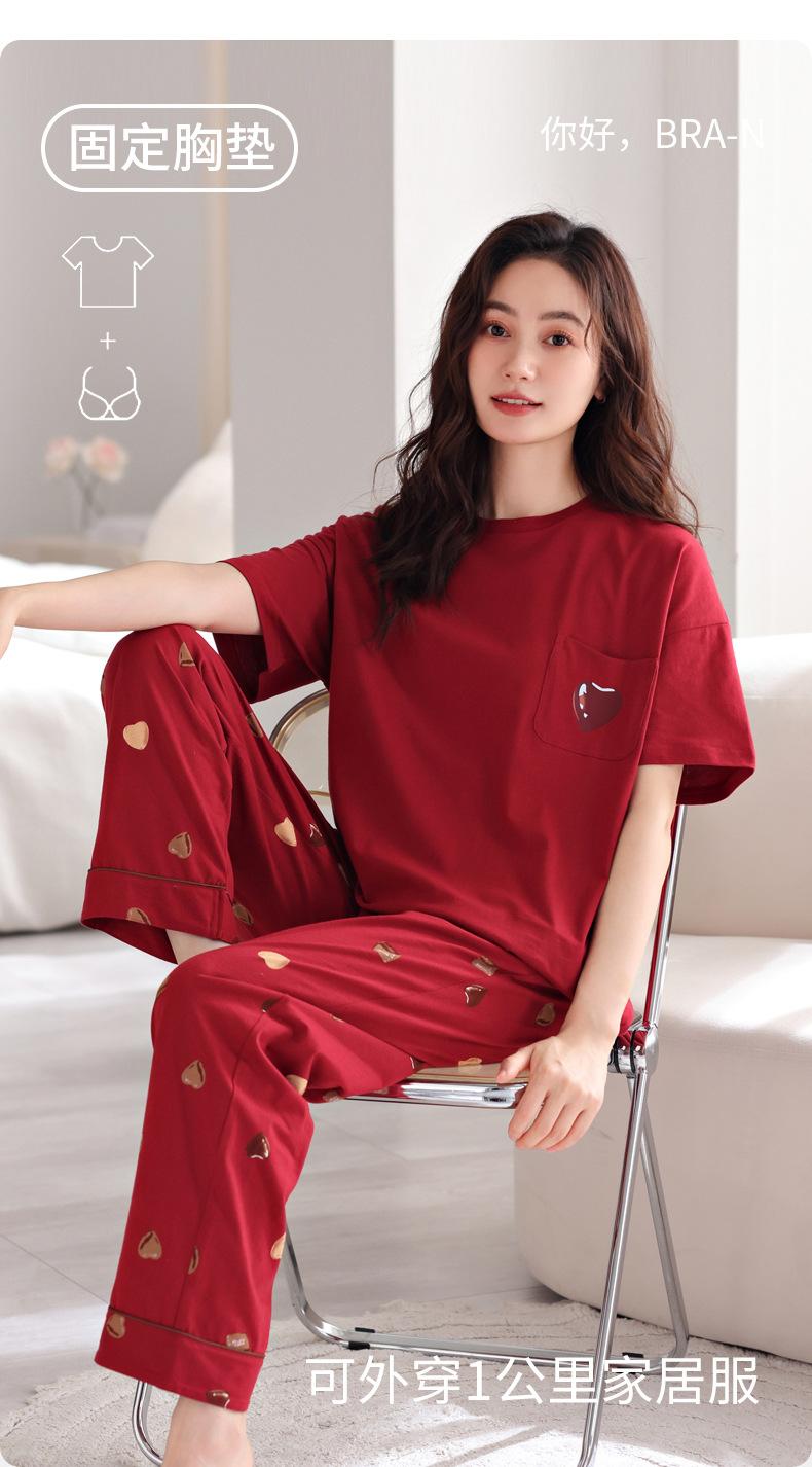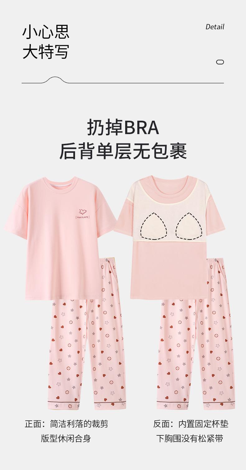 Pijama de algodón para mujer, nuevo estilo 2025, con almohadilla para el pecho, pantalones de verano de manga corta, ropa de casa holgada y estampada.