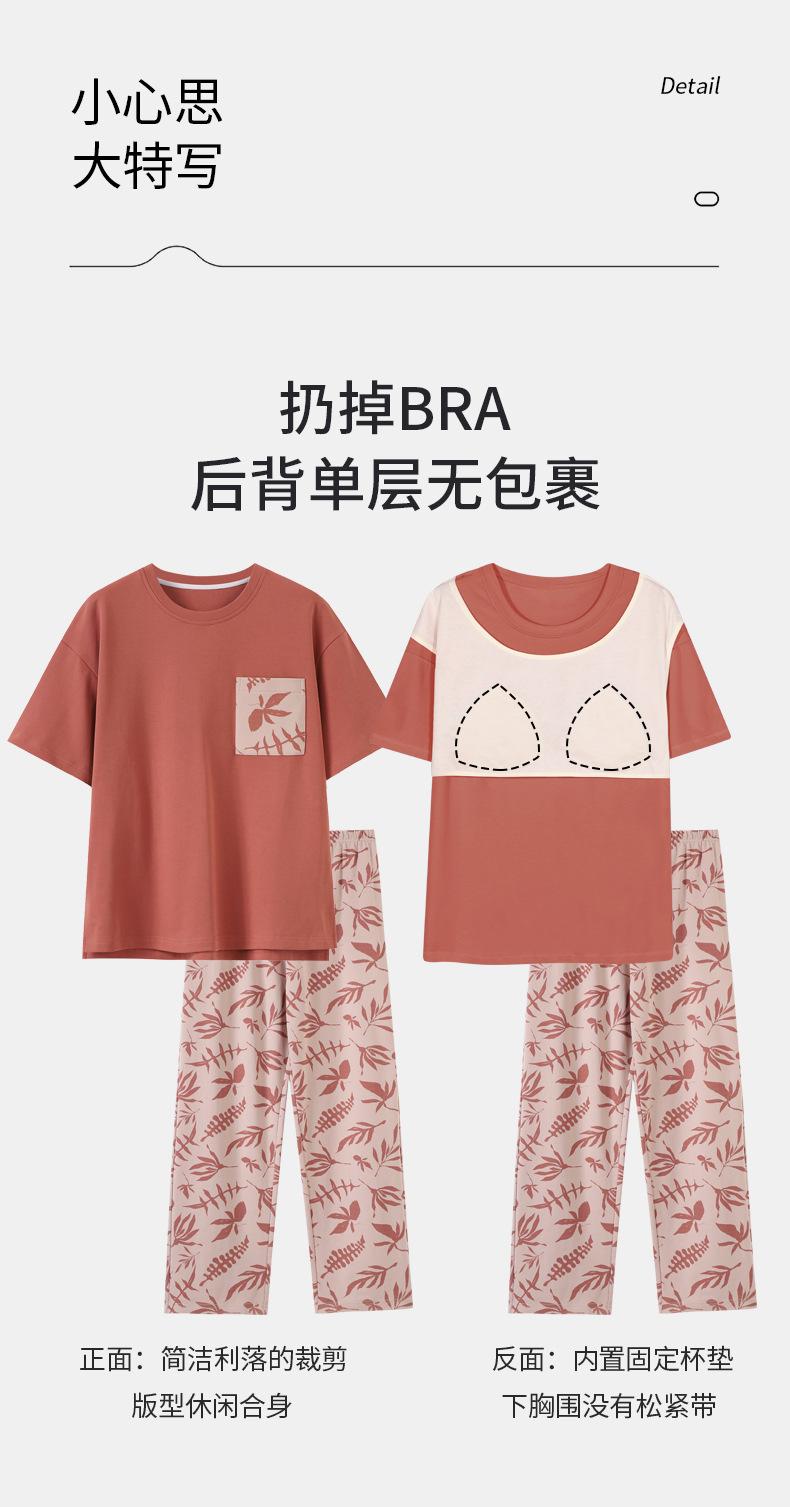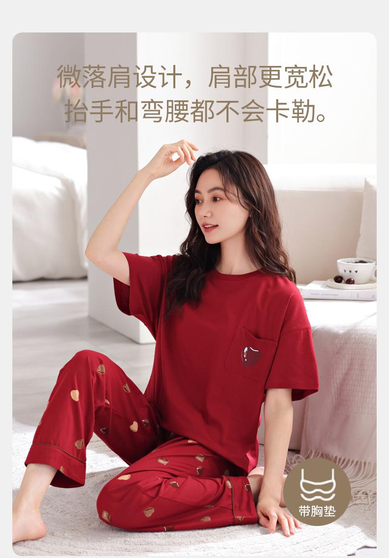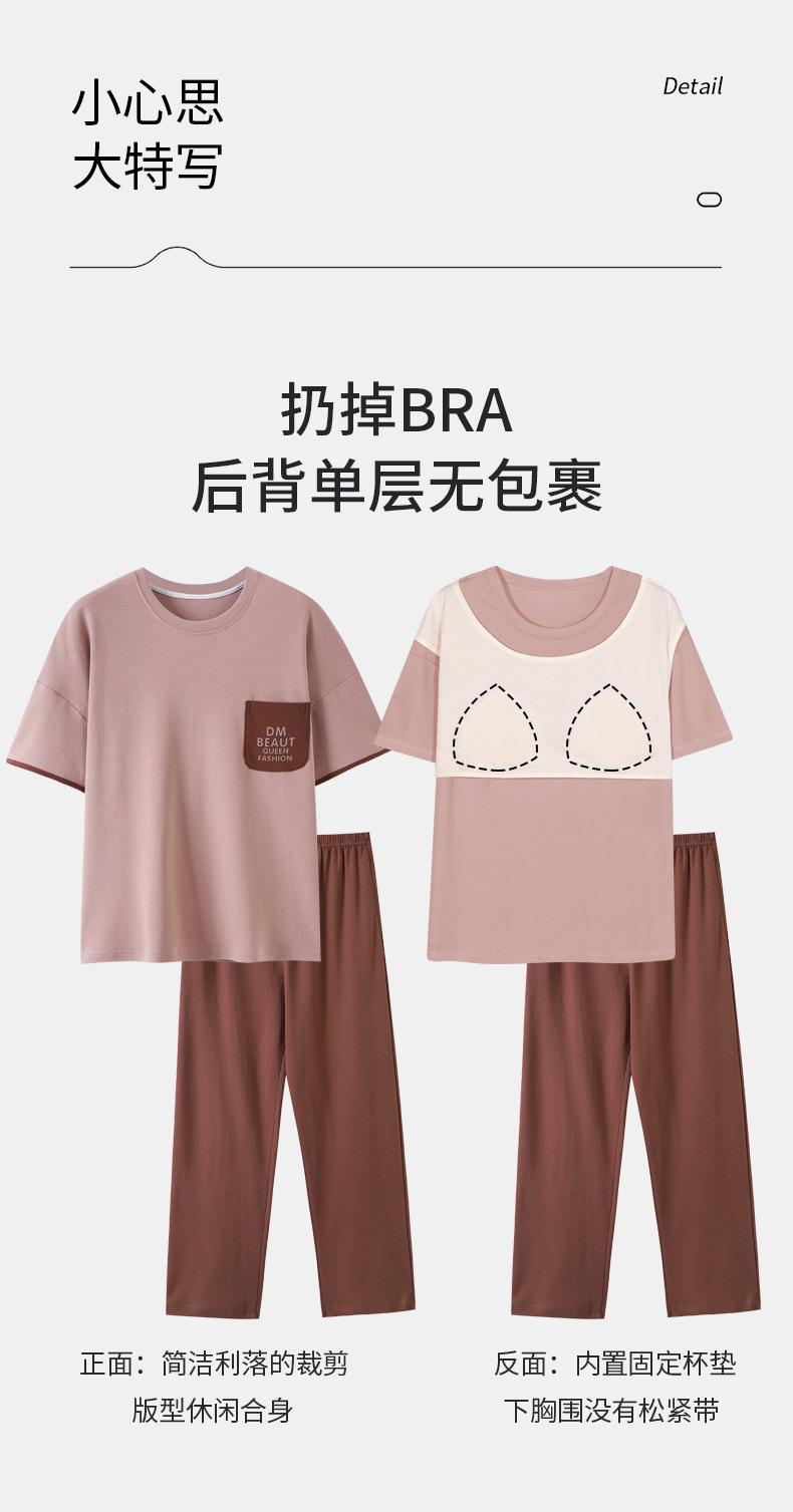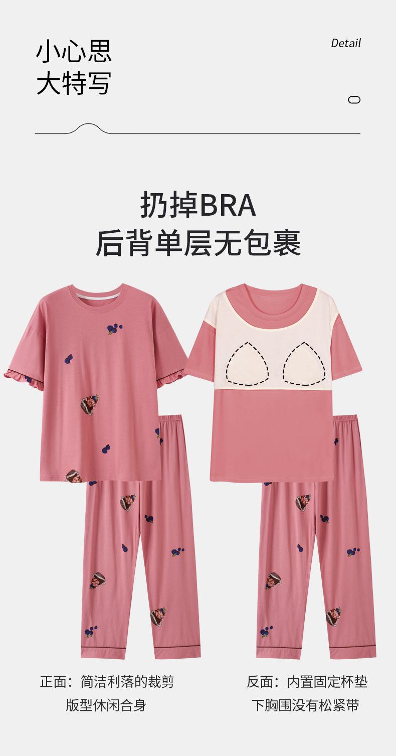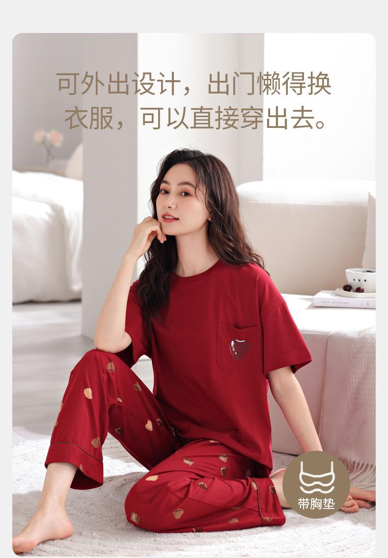 Pijama de algodón para mujer, nuevo estilo 2025, con almohadilla para el pecho, pantalones de verano de manga corta, ropa de casa holgada y estampada.