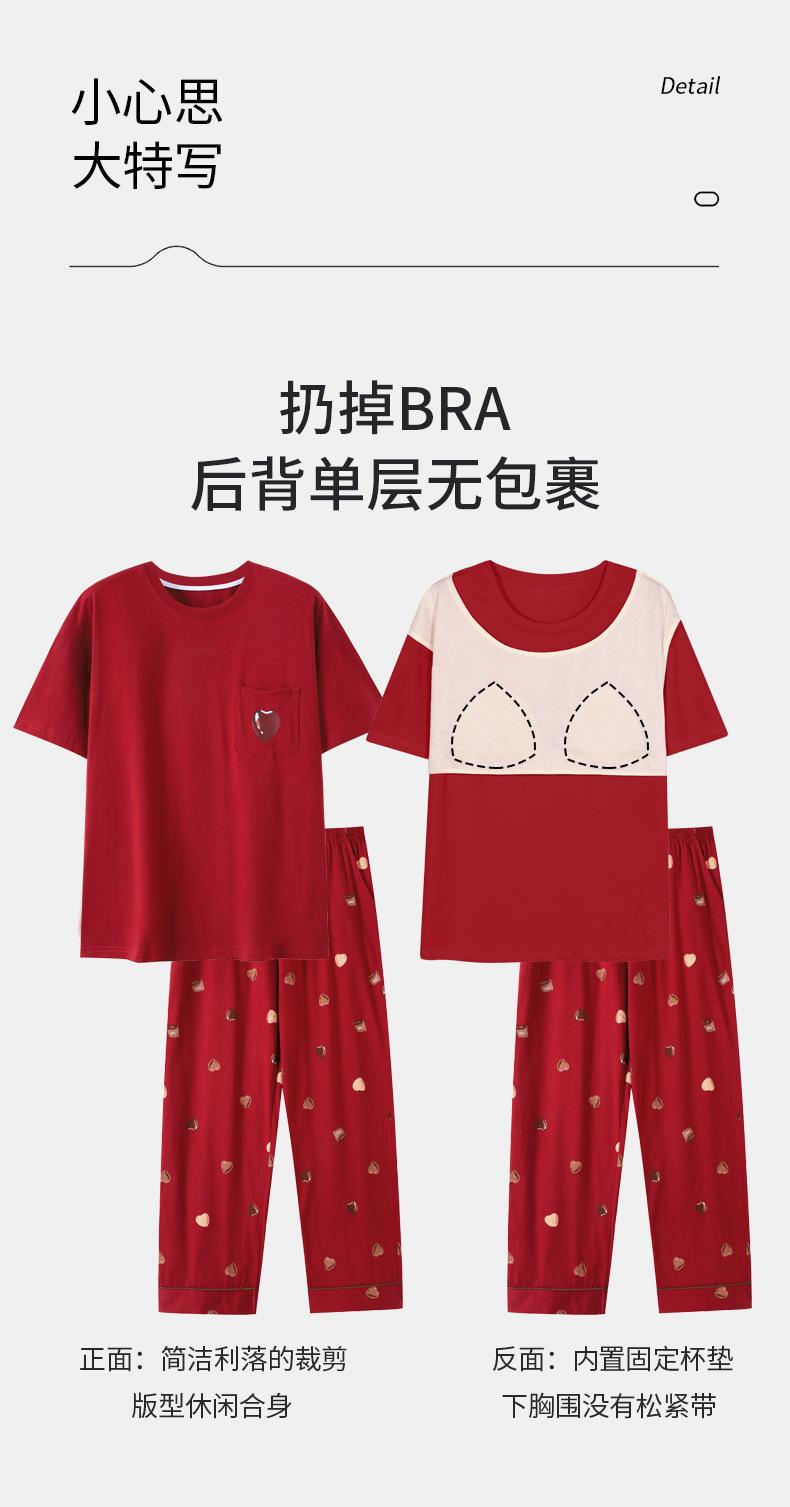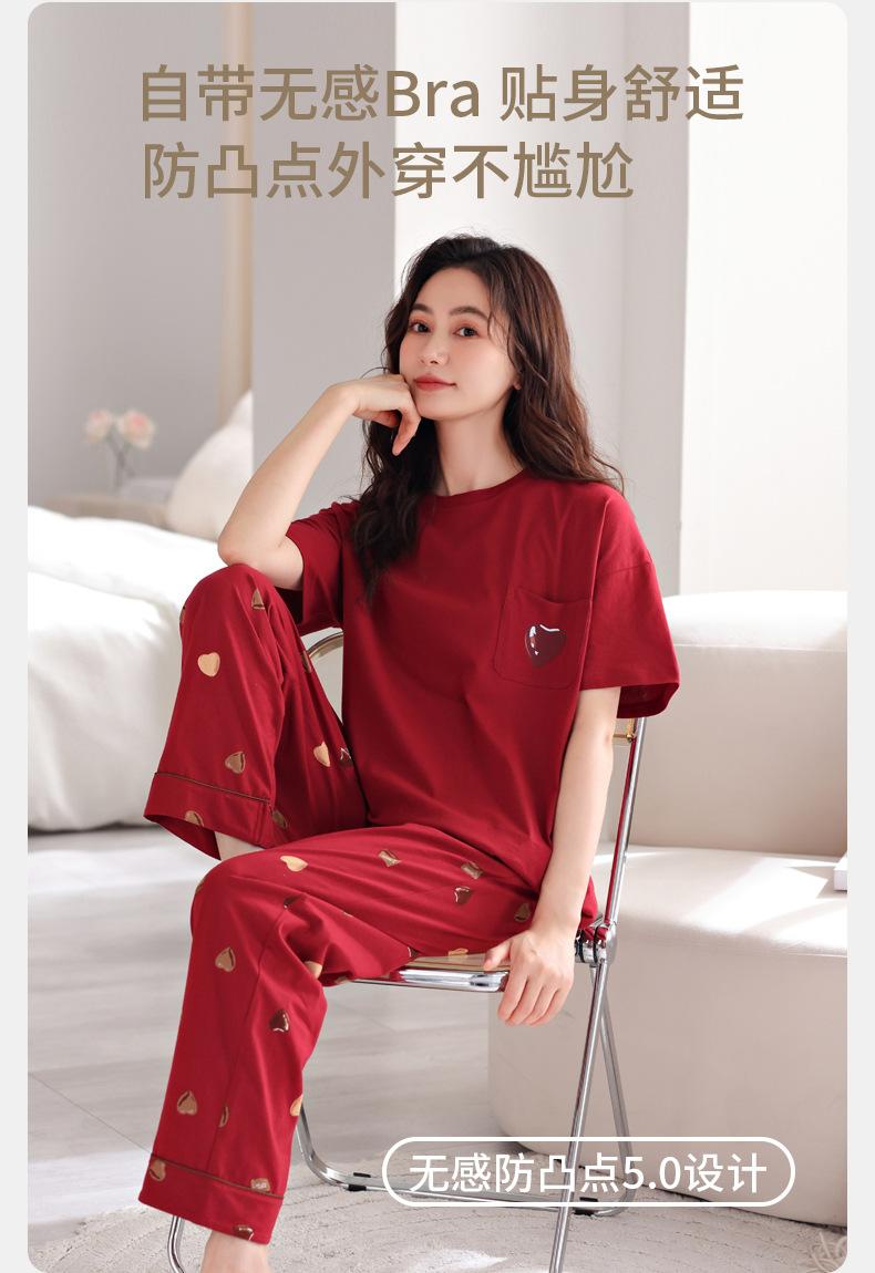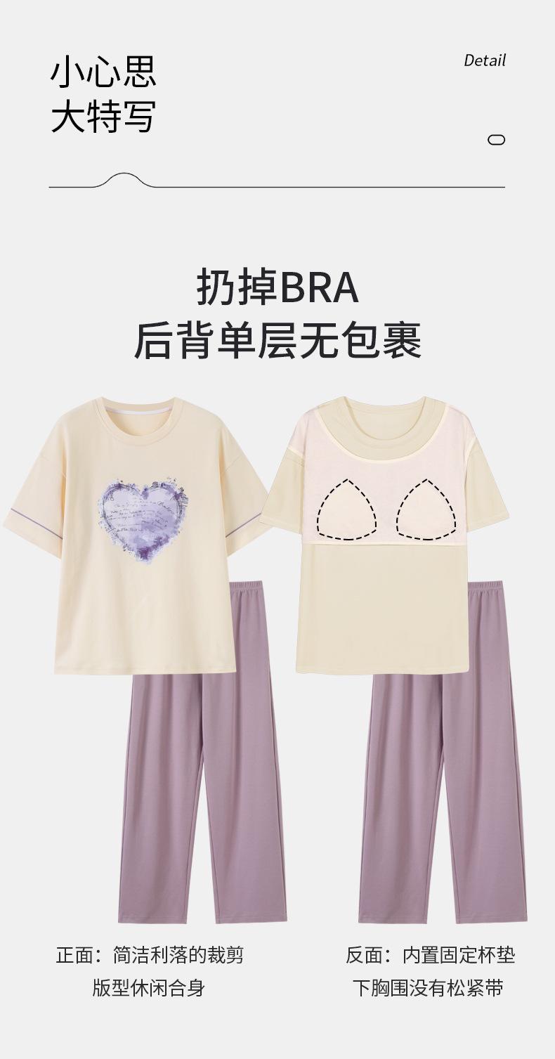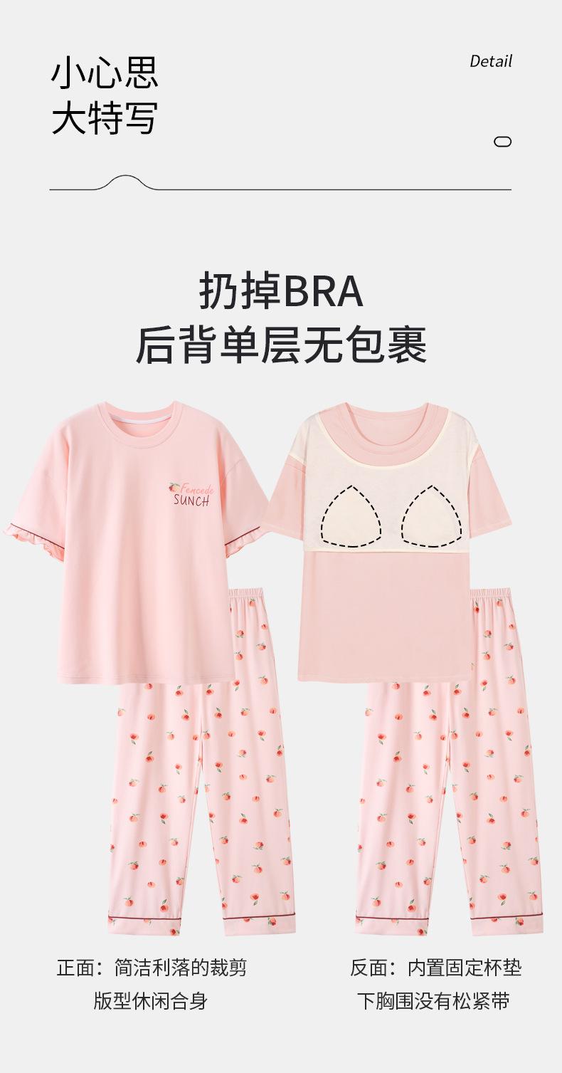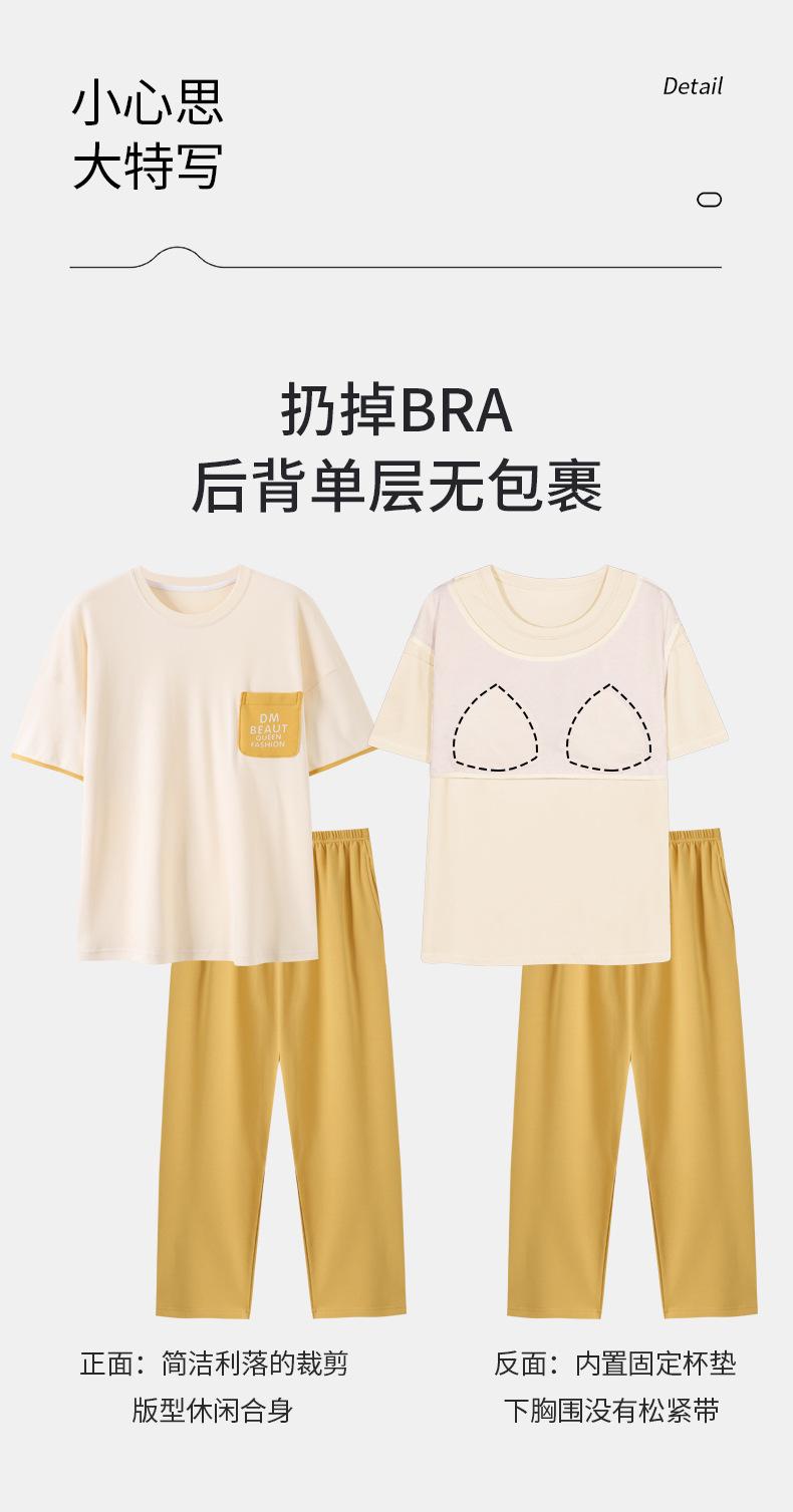 Pijama de algodón para mujer, nuevo estilo 2025, con almohadilla para el pecho, pantalones de verano de manga corta, ropa de casa holgada y estampada.