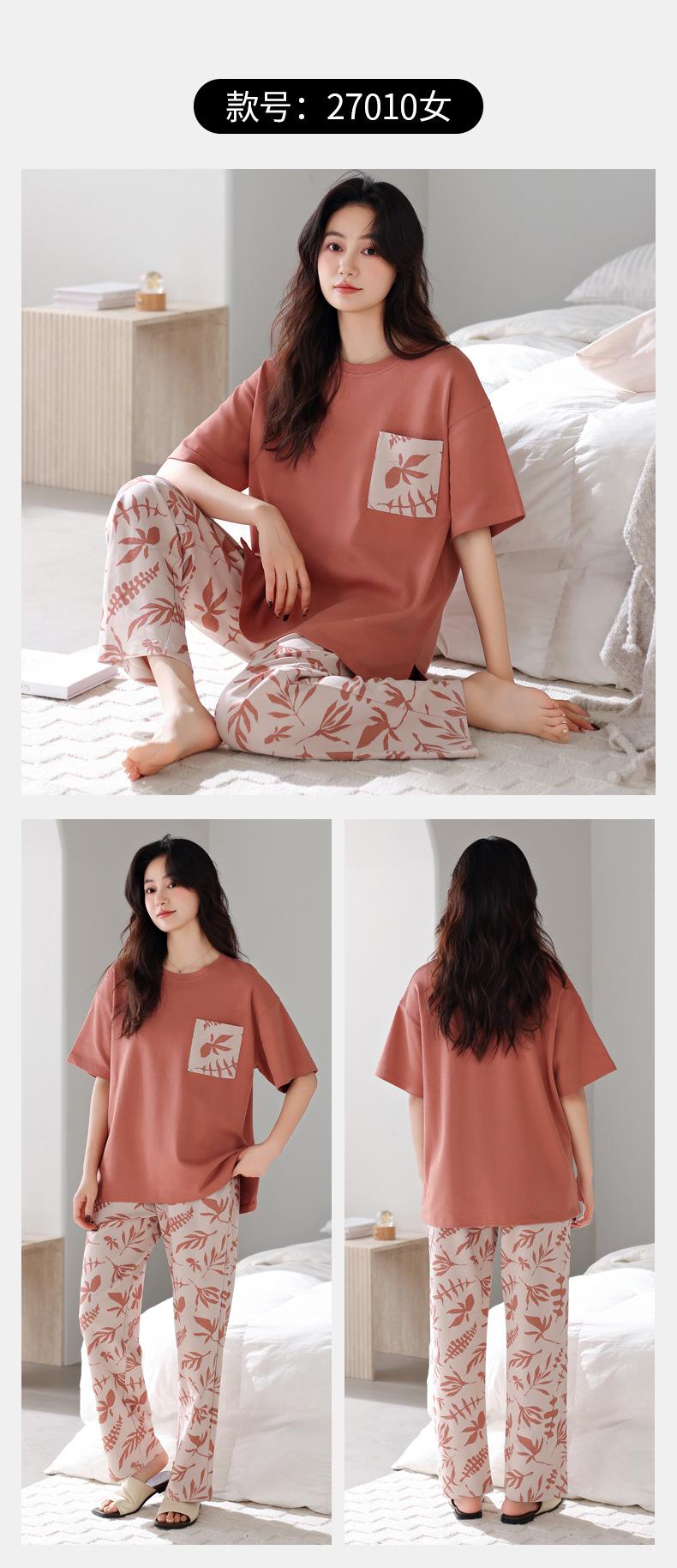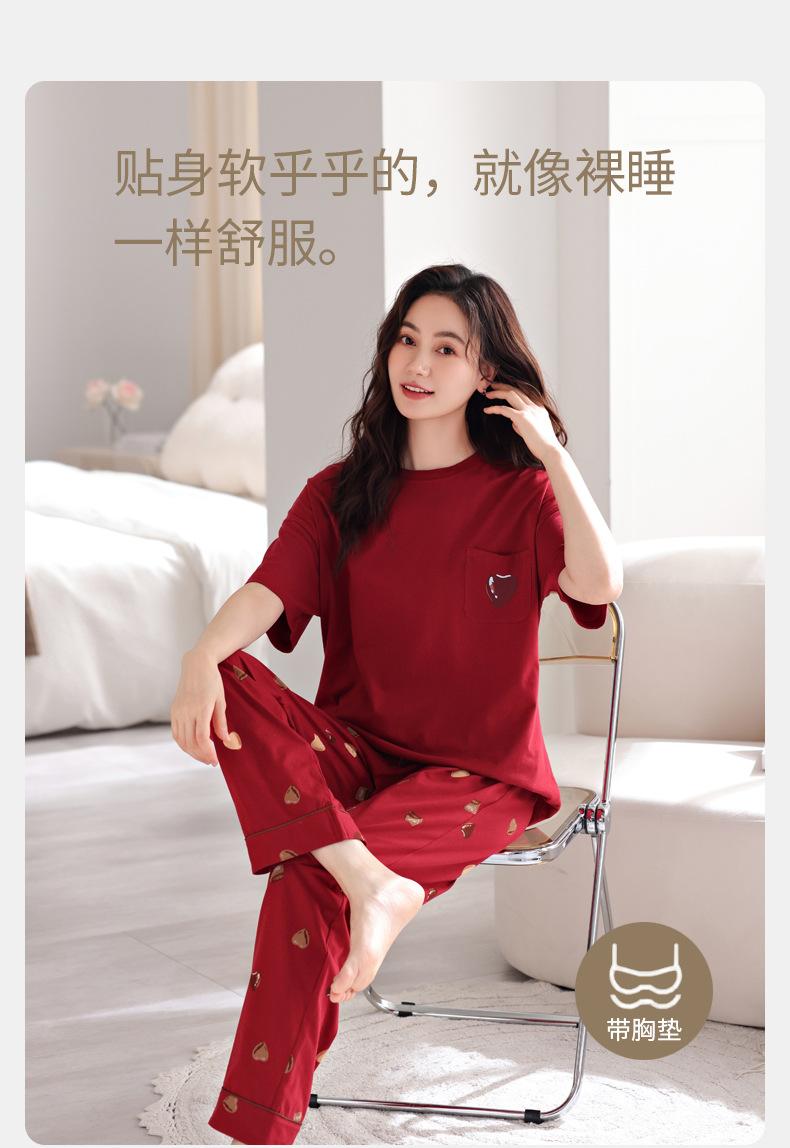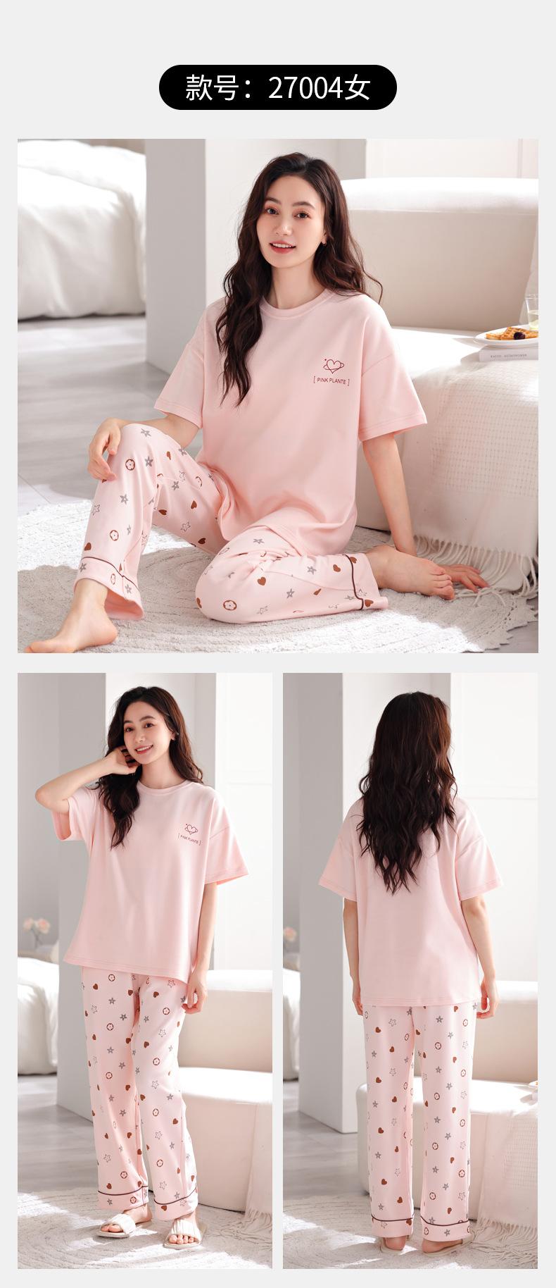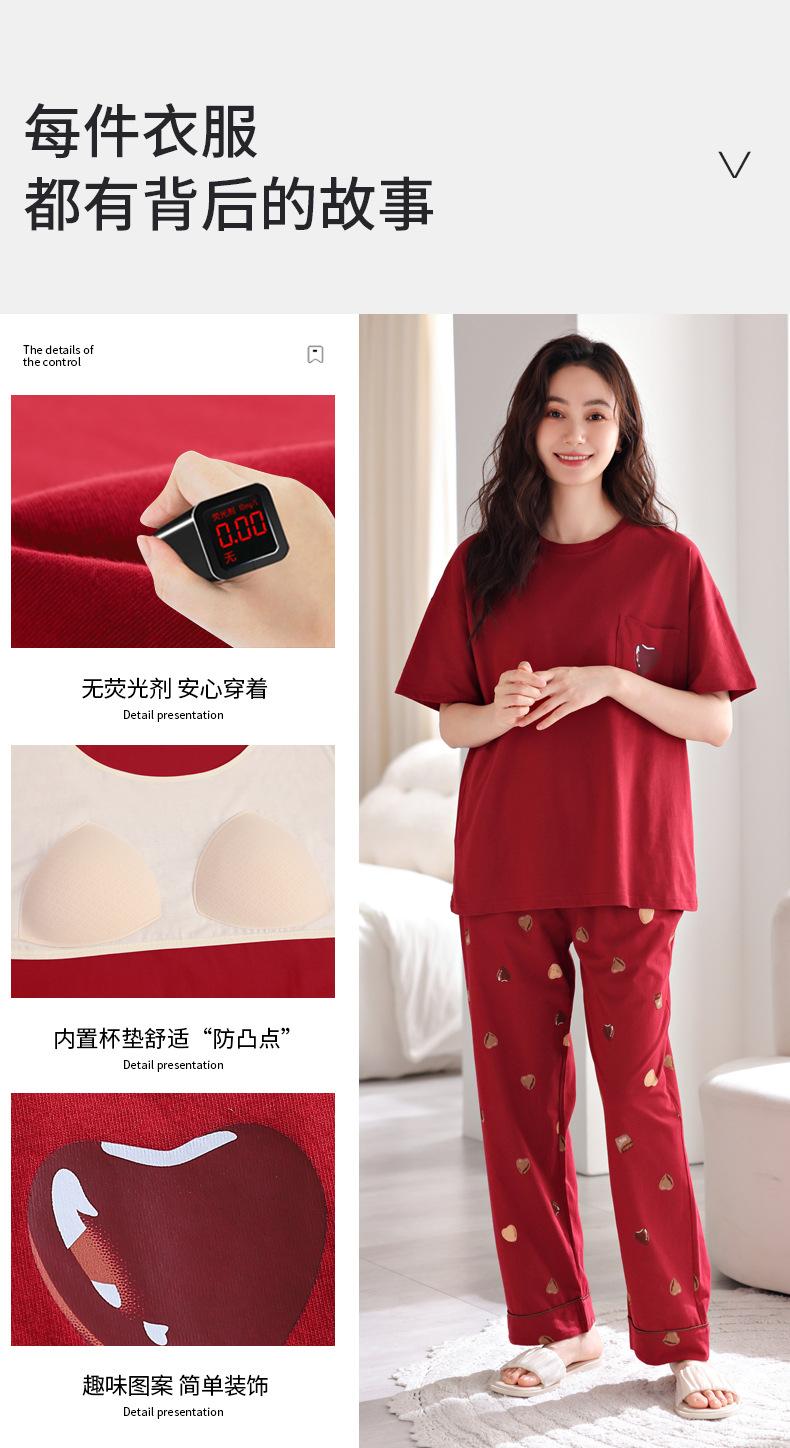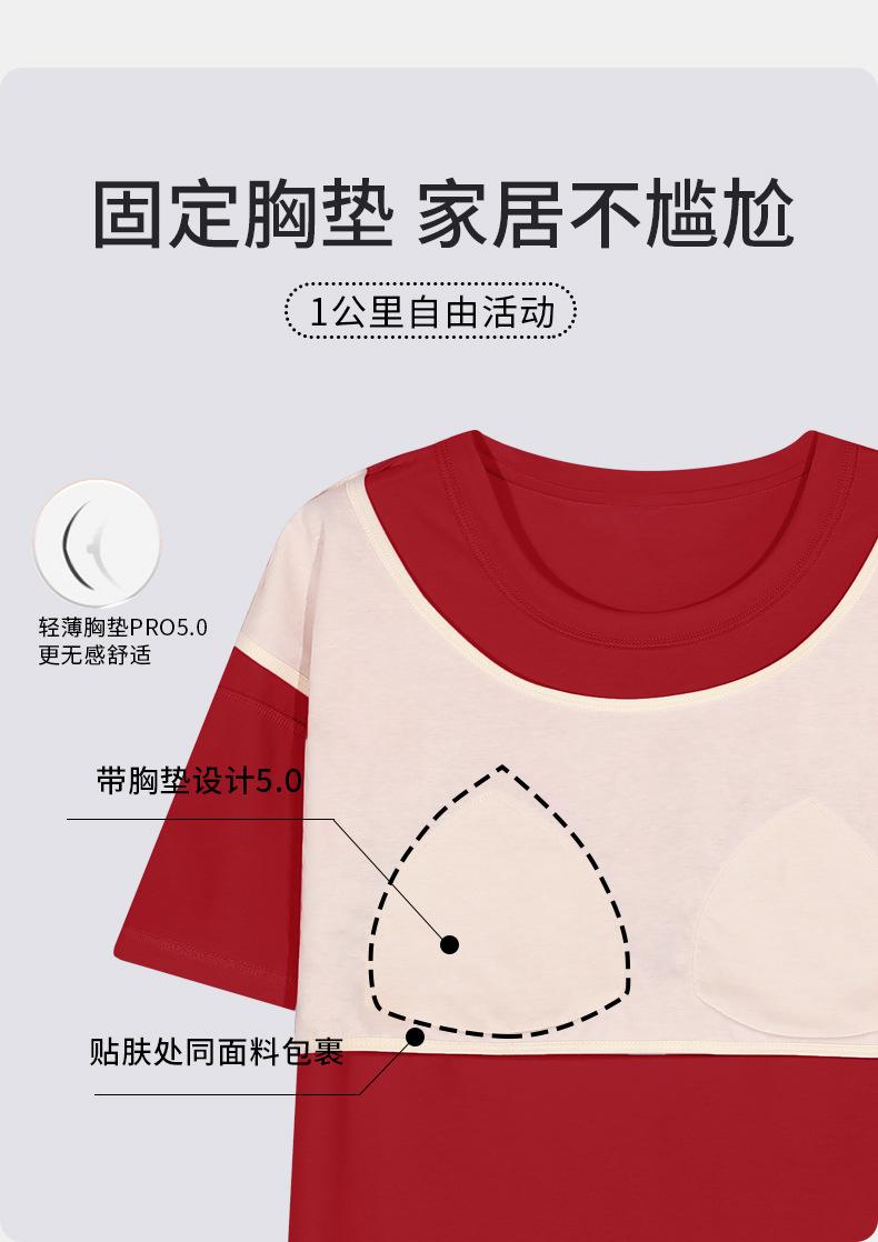 Pijama de algodón para mujer, nuevo estilo 2025, con almohadilla para el pecho, pantalones de verano de manga corta, ropa de casa holgada y estampada.