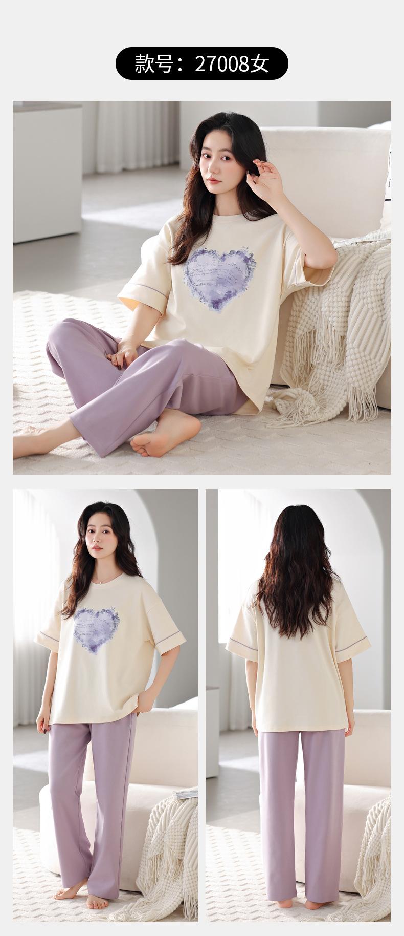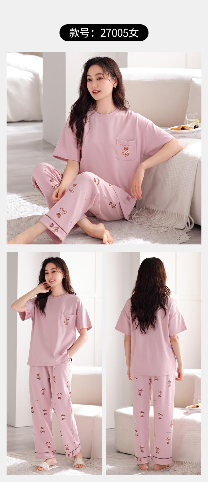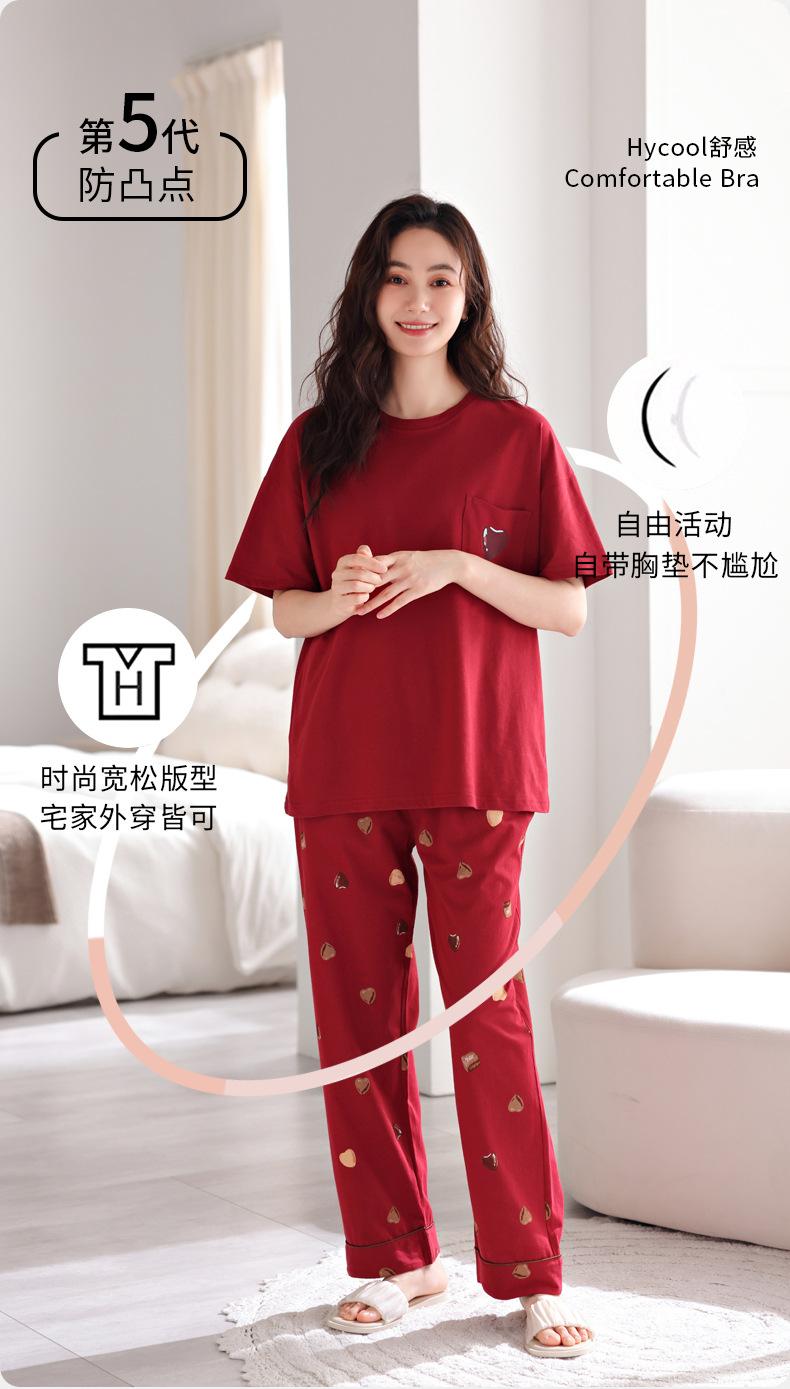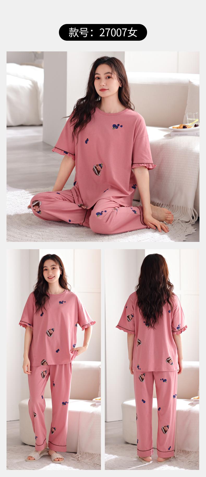 Pijama de algodón para mujer, nuevo estilo 2025, con almohadilla para el pecho, pantalones de verano de manga corta, ropa de casa holgada y estampada.