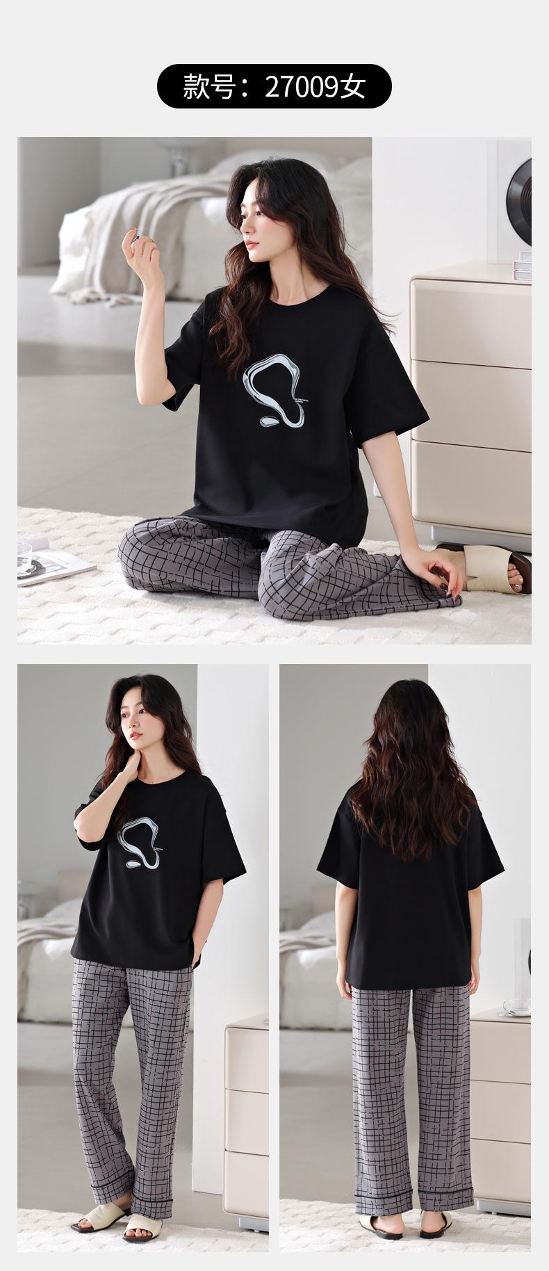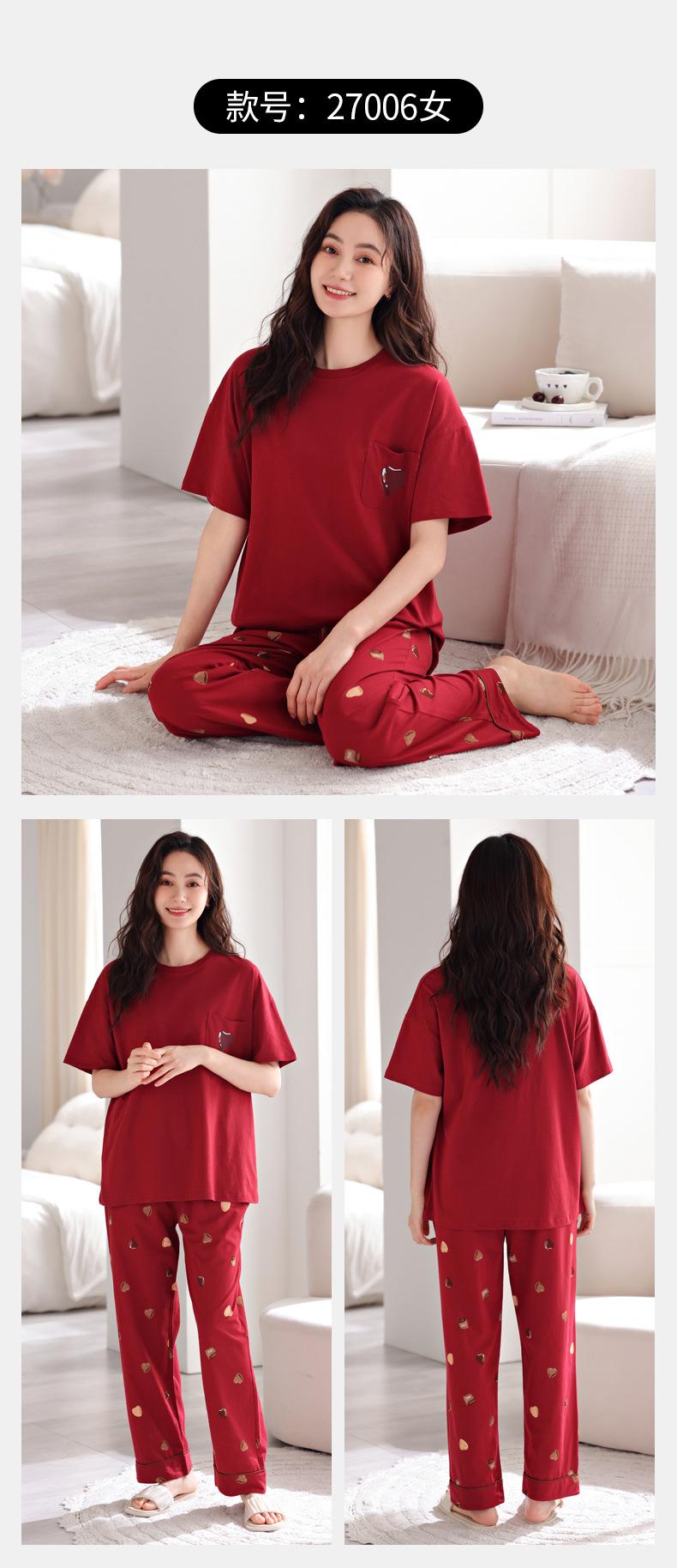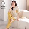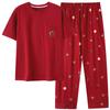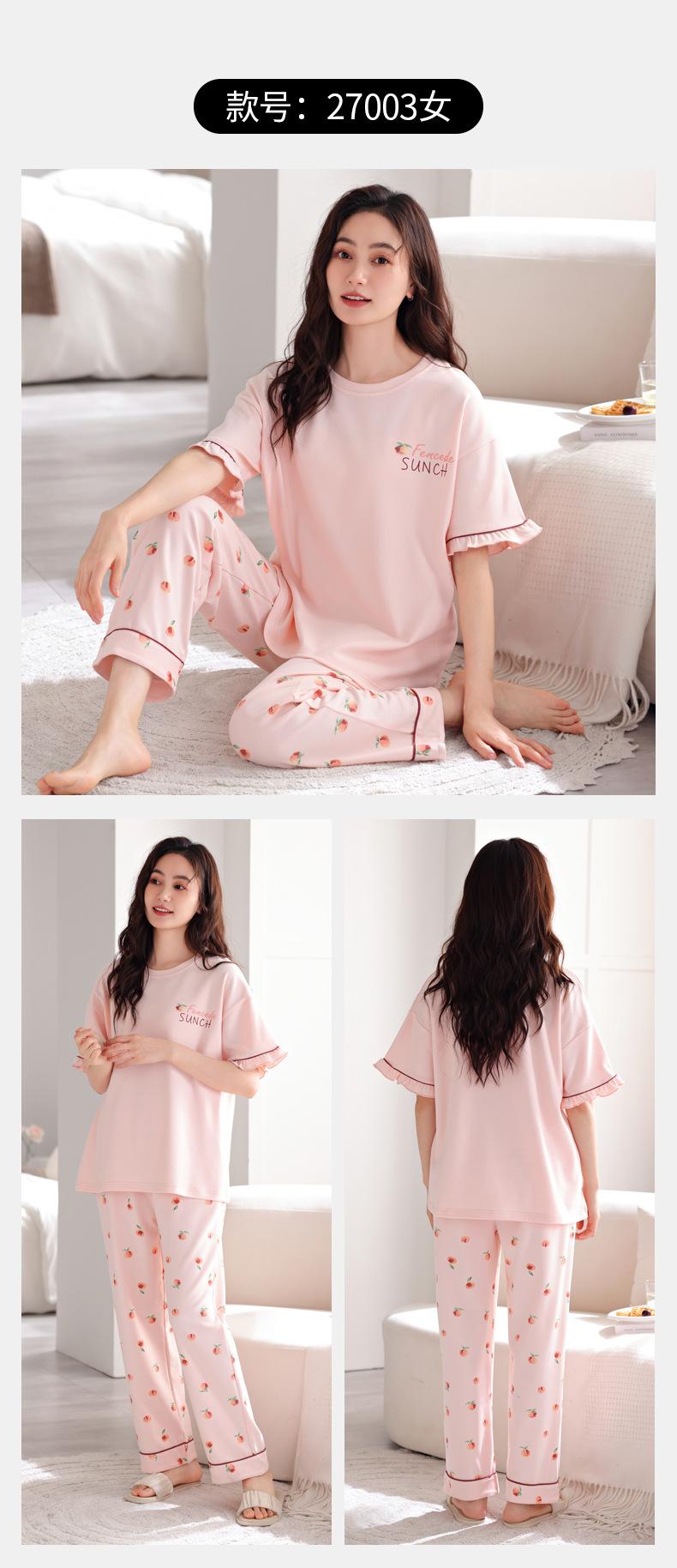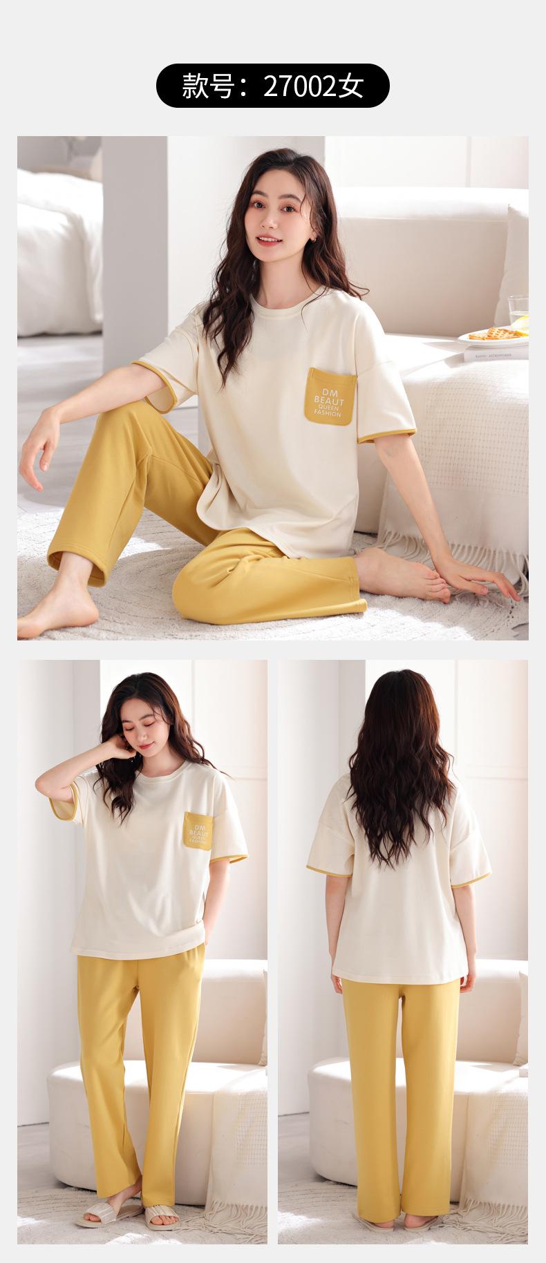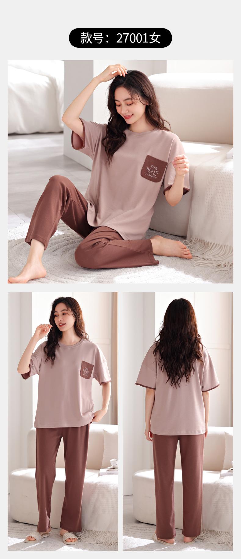 Pijama de algodón para mujer, nuevo estilo 2025, con almohadilla para el pecho, pantalones de verano de manga corta, ropa de casa holgada y estampada.