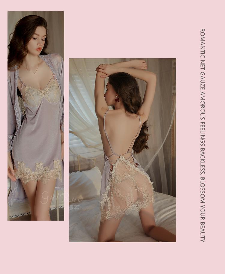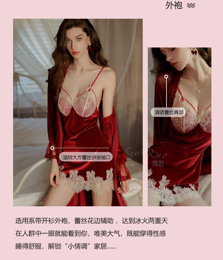 Guiruo - Camisón de terciopelo de lujo, talla grande, ligero, sexy, con encaje, sin espalda y almohadilla para el pecho, para mujer, 4992