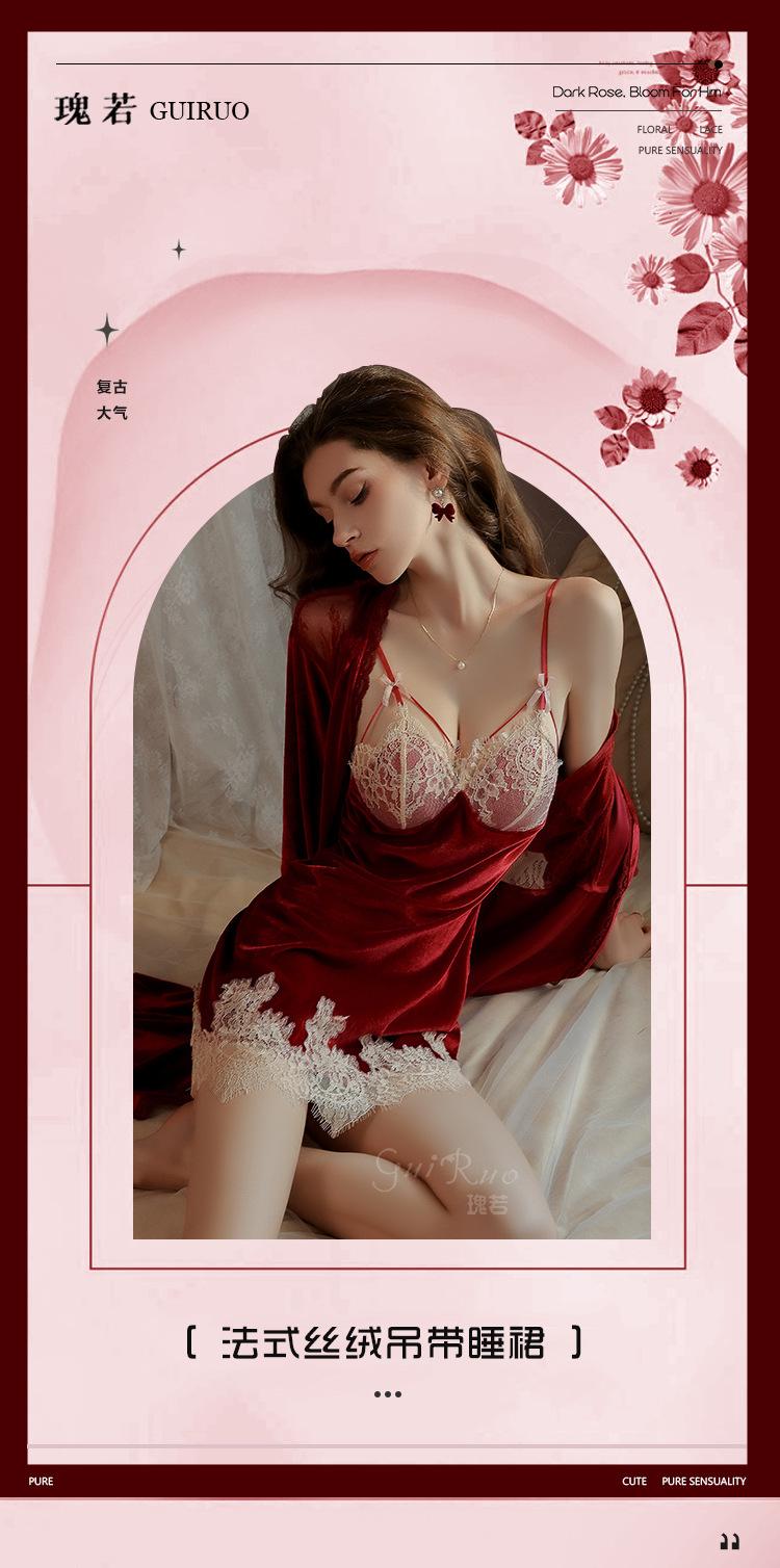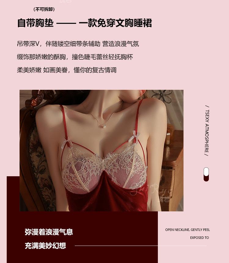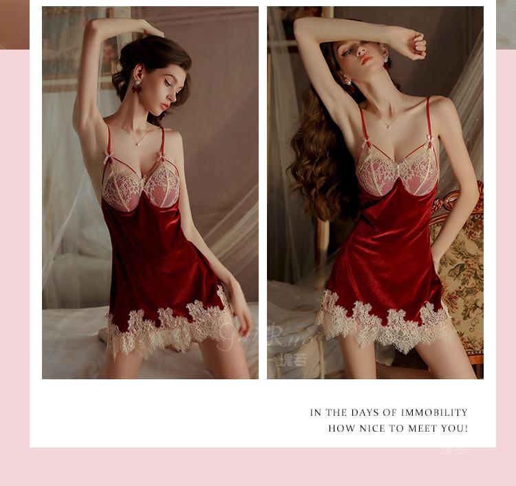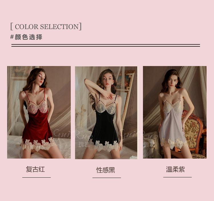 Compra Guiruo - Camisón de terciopelo de lujo, talla grande, ligero, sexy, con encaje, sin espalda y almohadilla para el pecho, para mujer, 4992 al por mayor en Joom.pro