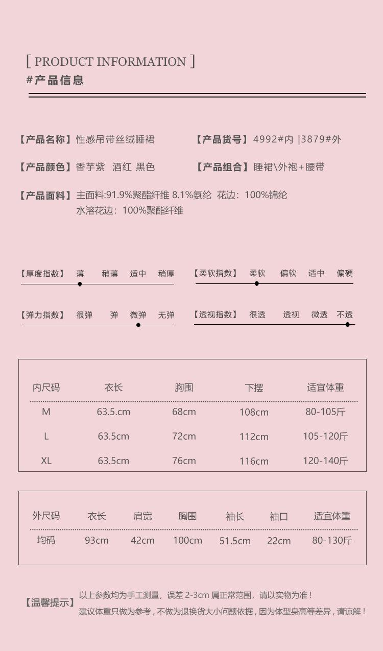 4992 black (nightgown), 3879 black (robe + belt), 4992 wine red (nightgown), 3879 wine red (robe + belt), 4992...