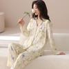 Compra Pijamas de primavera y otoño para mujer, pantalones de manga larga, conjunto de dos piezas de otoño, talla grande, holgados, cómodos, modales, ropa de algodón para el hogar. al por mayor en Joom.pro