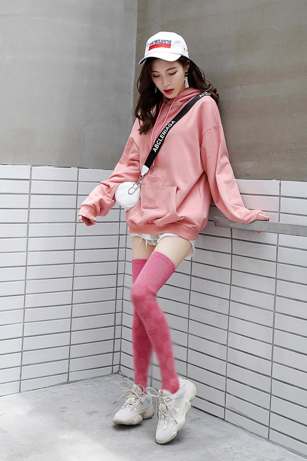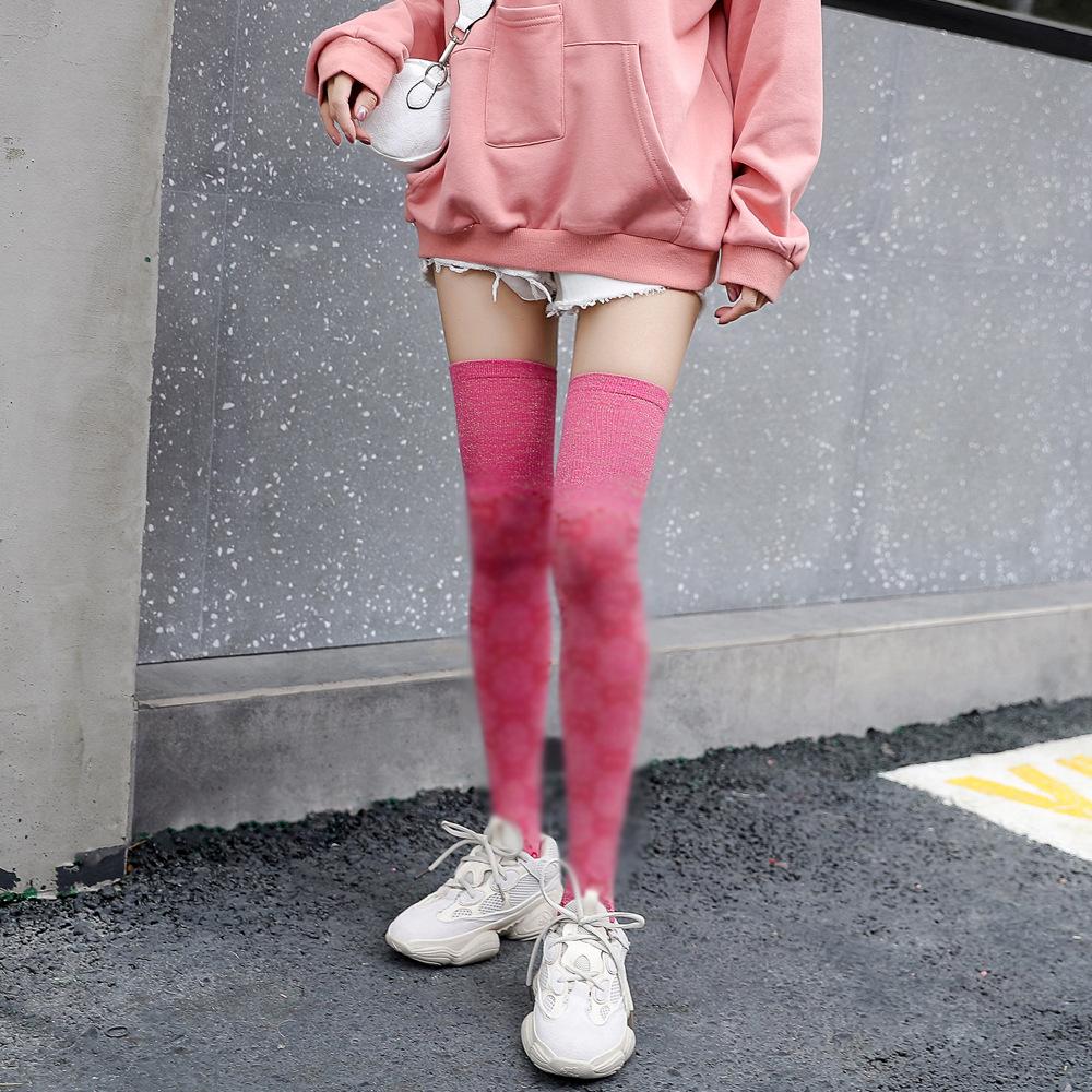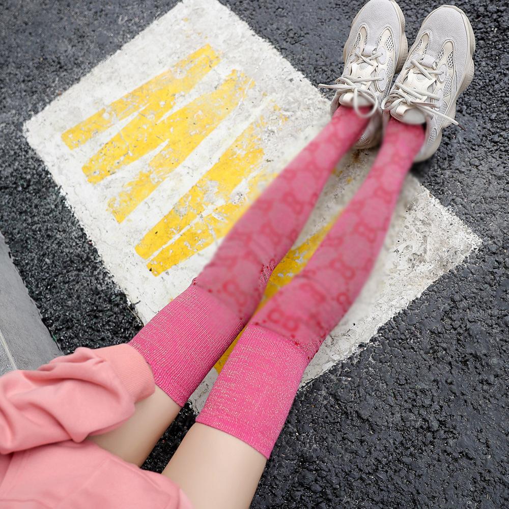 Medias de algodón para mujer, otoño e invierno, calcetines japoneses de seda dorada por encima de la rodilla, calcetines de marca de moda para mujer, calcetines largos, medias con letras, calcetines altos
