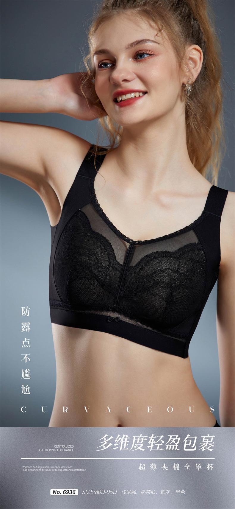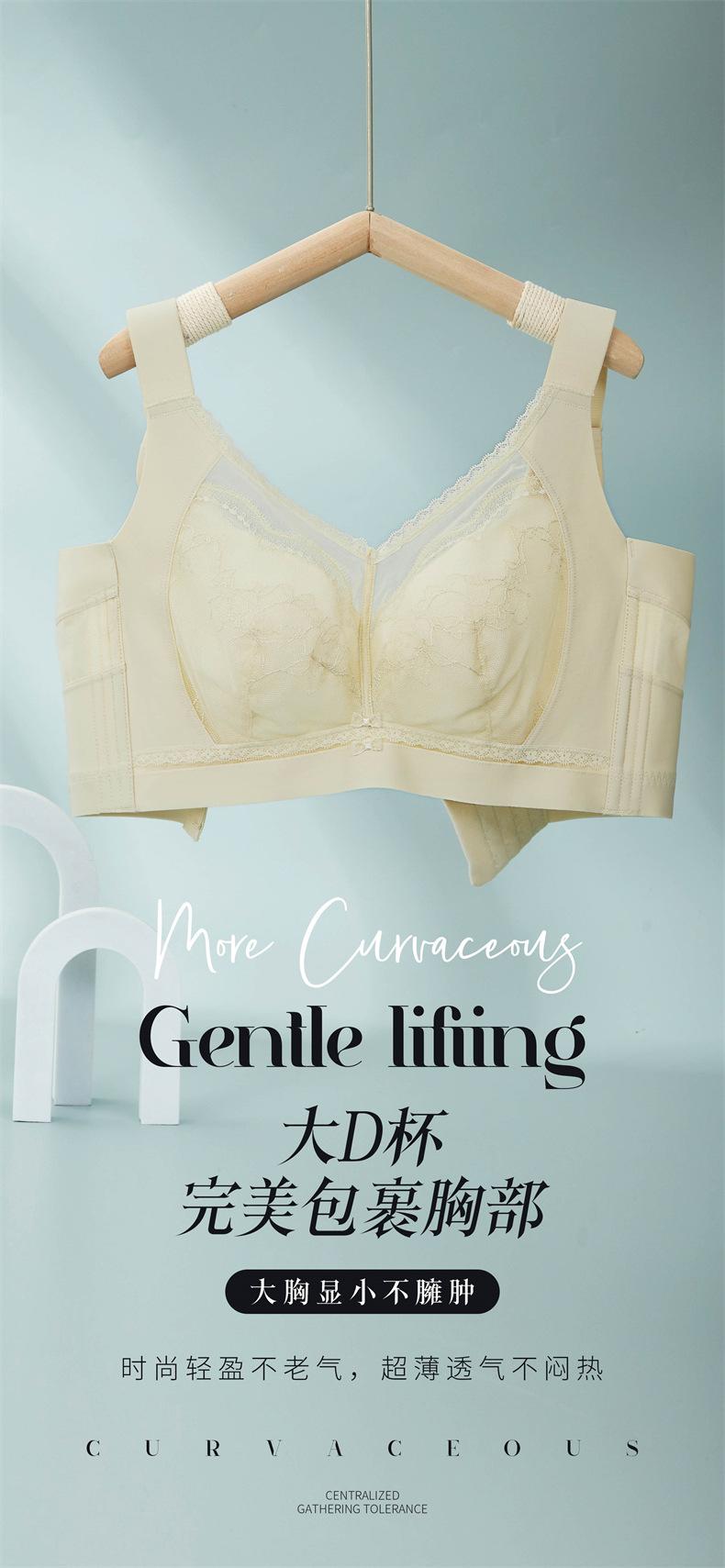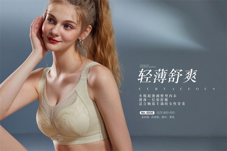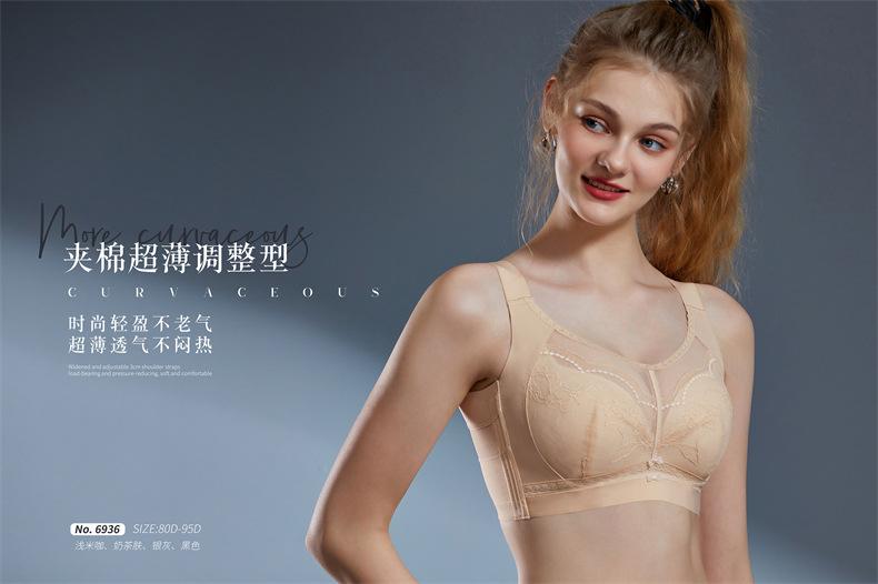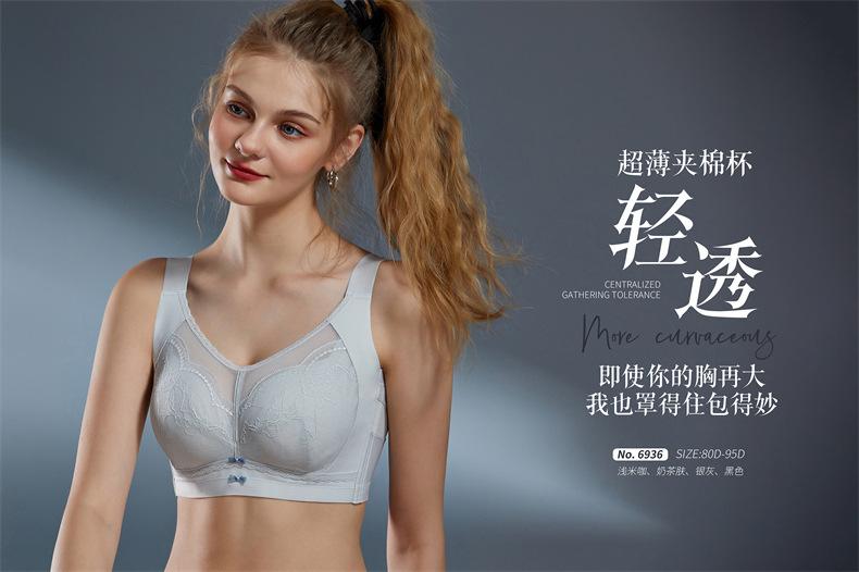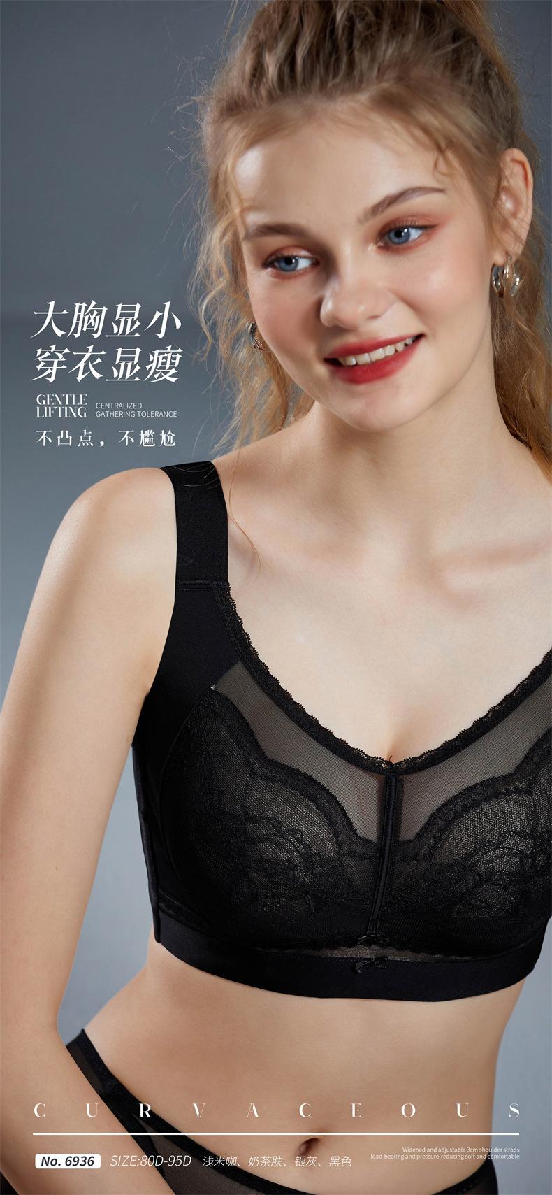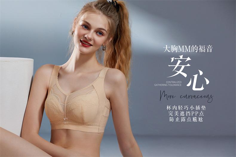 Ropa interior para mujer de pecho grande, copa completa delgada, con realce, transpirable, ajustable, talla grande, encaje, sujetador tubo