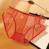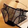 Ropa interior sexy de malla con puntos ondulados, estilo Pure Desire, para niña, cintura baja, sin marcas, semitransparente, con huecos y borde de encaje.