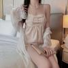 Guiruo Ropa Interior de Satén para Mujer Lujo Ligero Tentación Encaje Sexy Top Shorts Bata Traje para Casa para Descansar 3486