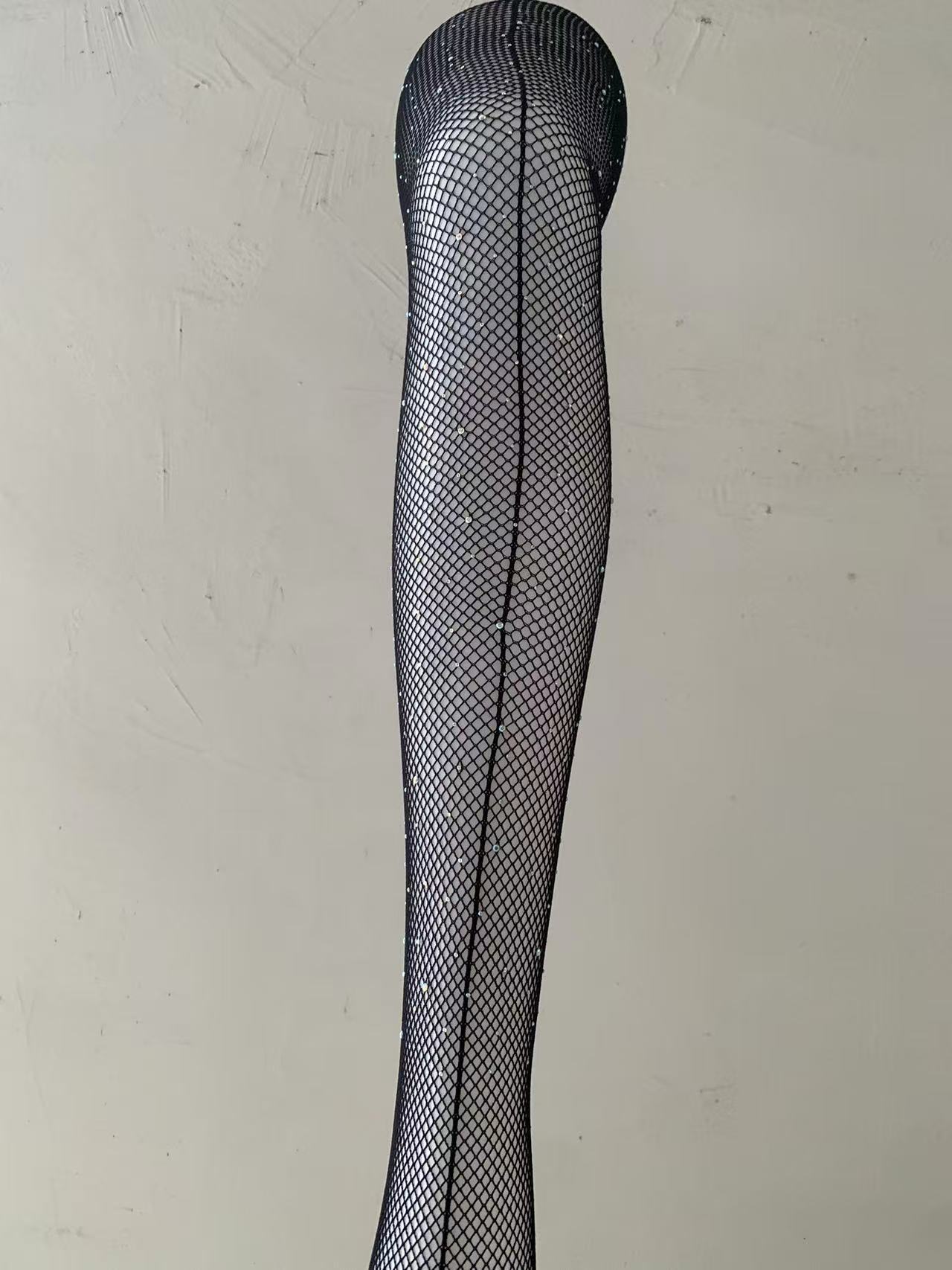 Medias de Red Sexy Europeas y Americanas Medias de Red Caladas de Diamante Caliente con Diamante Medias de Red de Diamante Blanco Calcetines Base para Mujer Venta al por Mayor