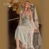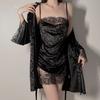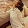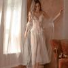 Guiruo Sexy Escote en V Profundo Solapa Decoración de Bolsillo Cadera de Bolsa Estilo Camisa Estilo Novio Camisón Ropa para el Hogar Traje 683