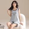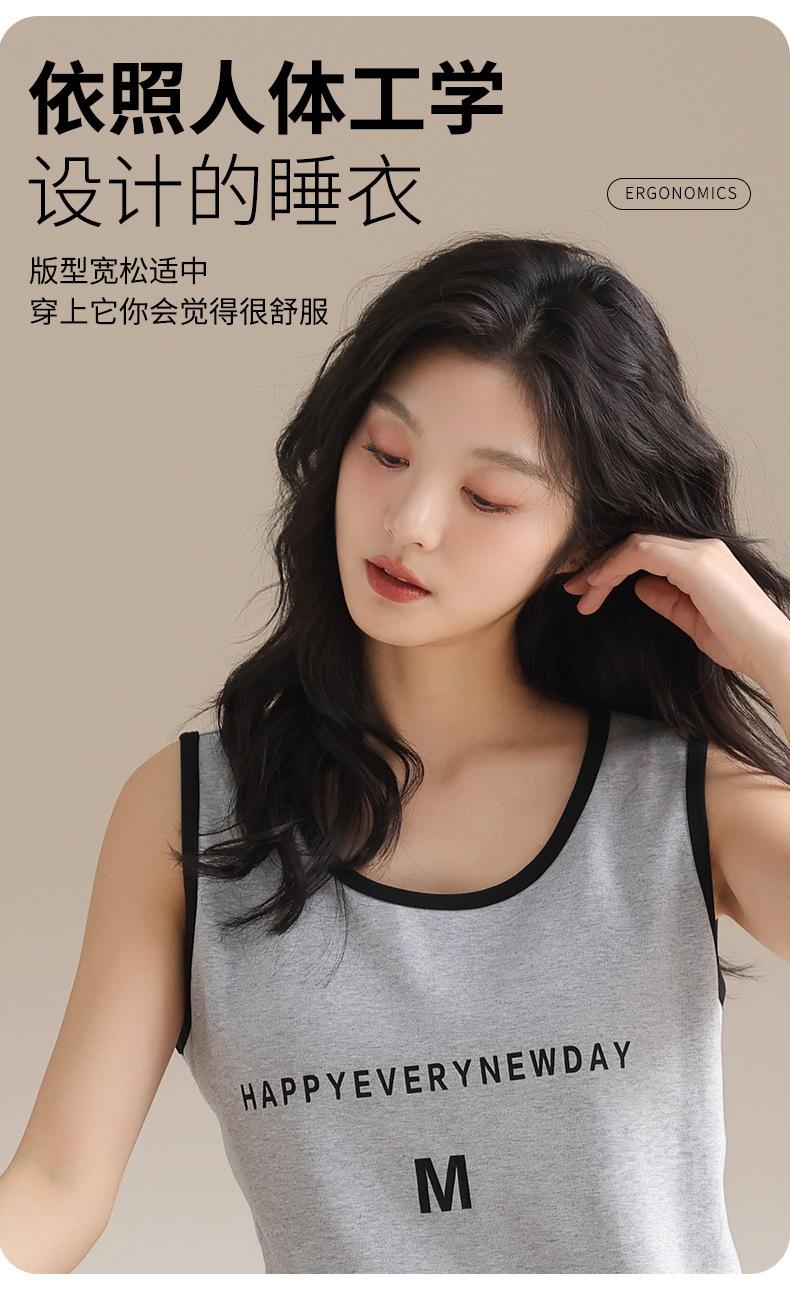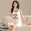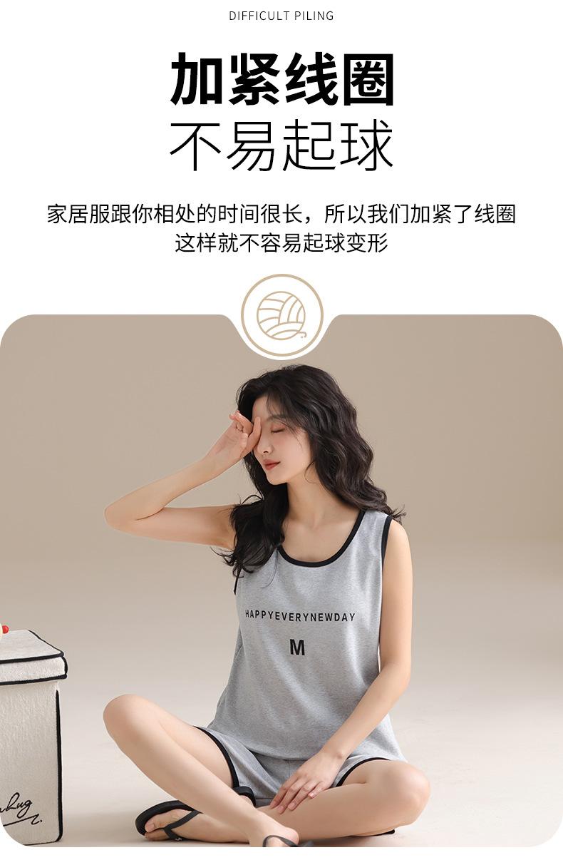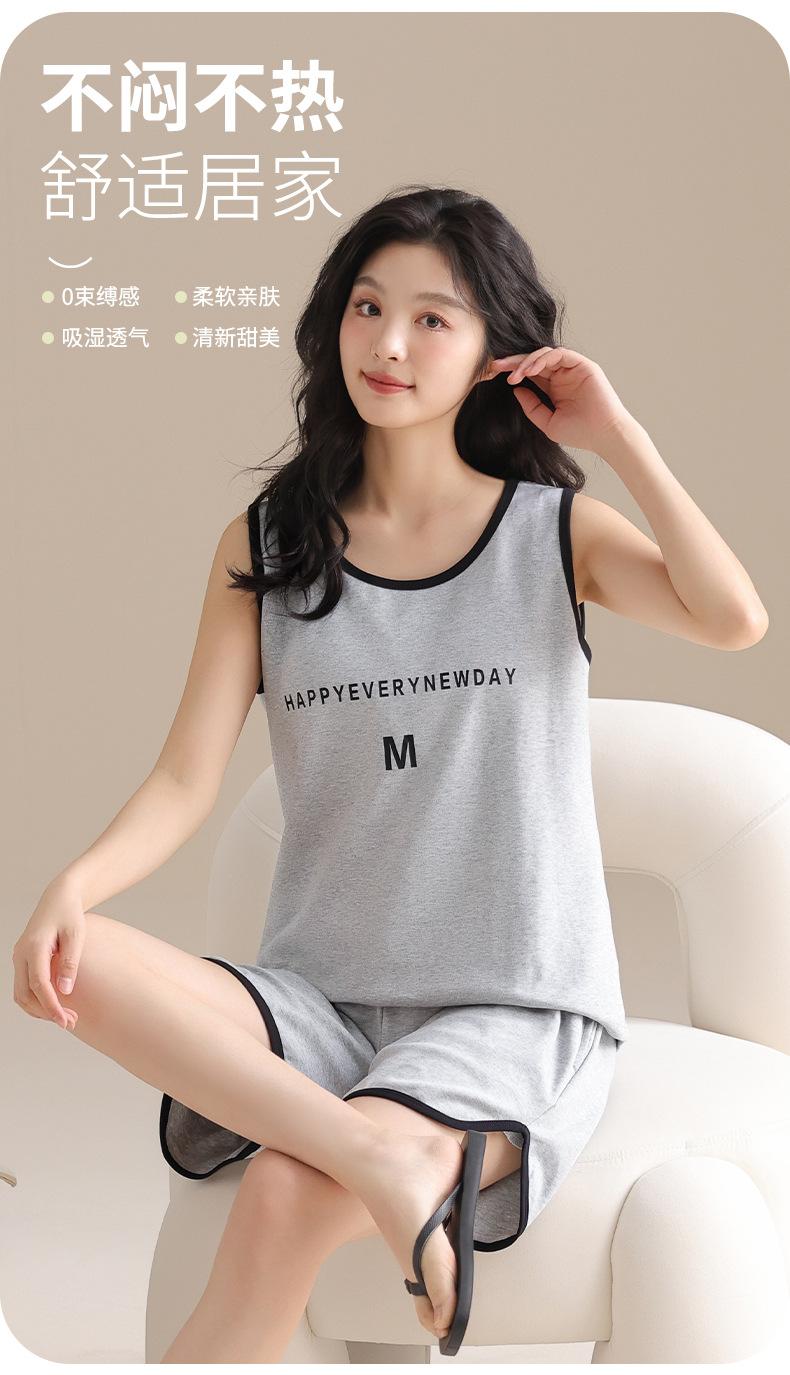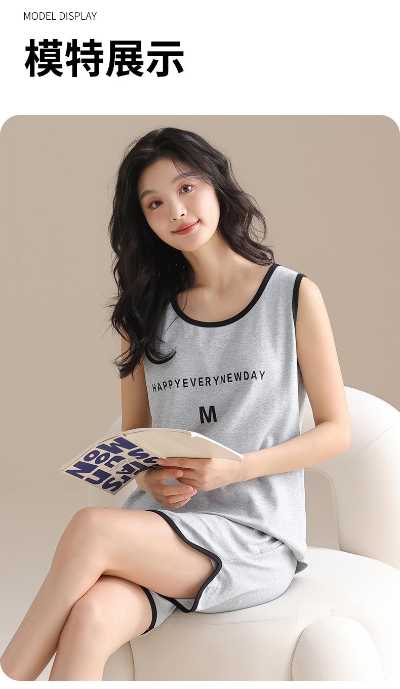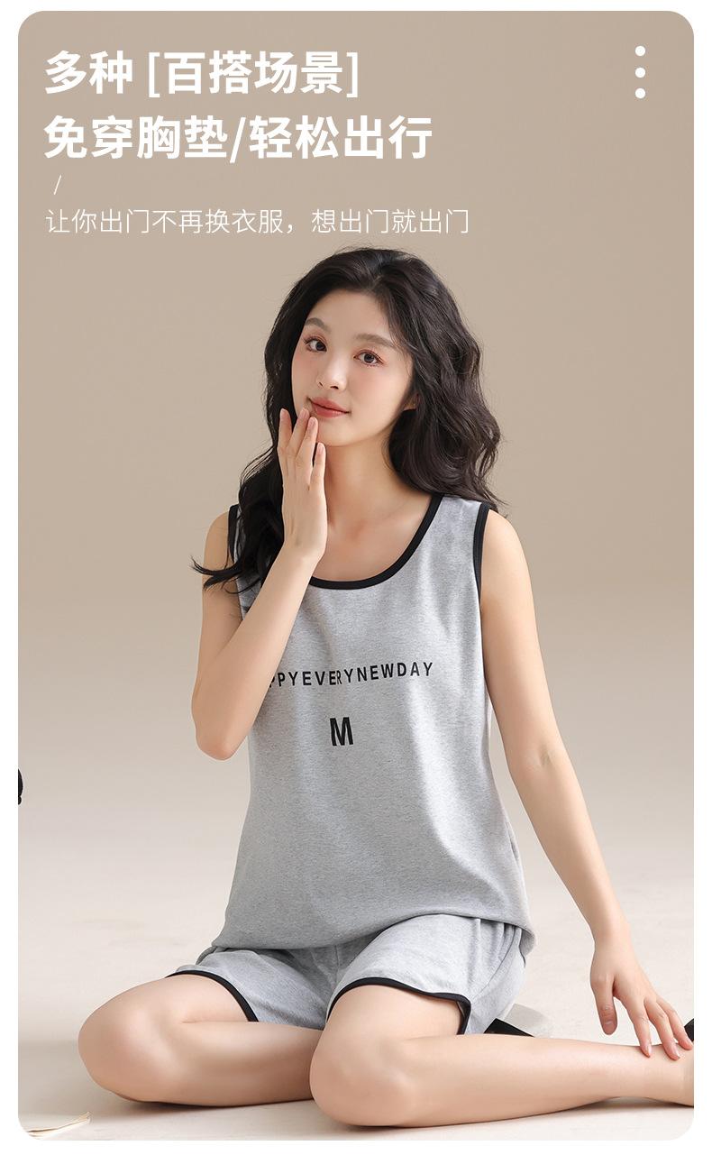 Pijama de Verano para Mujer de Algodón Puro, Chaleco con Almohadilla en el Pecho, Shorts, Ropa para el Hogar de Verano, Suéter Suave para Usar Afuera