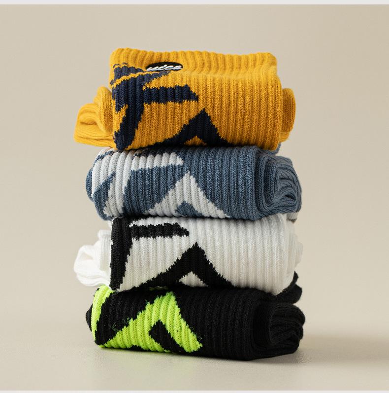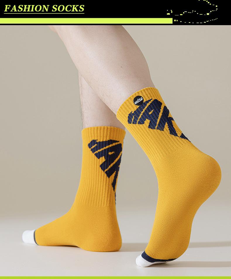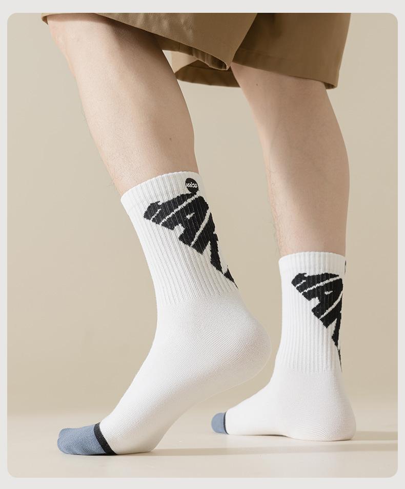 Calcetines nuevos de primavera y otoño para hombre calcetines con letras de largo medio calcetines de algodón transpirables calcetines de moda blancos calcetines deportivos medias calcetines Zhuji