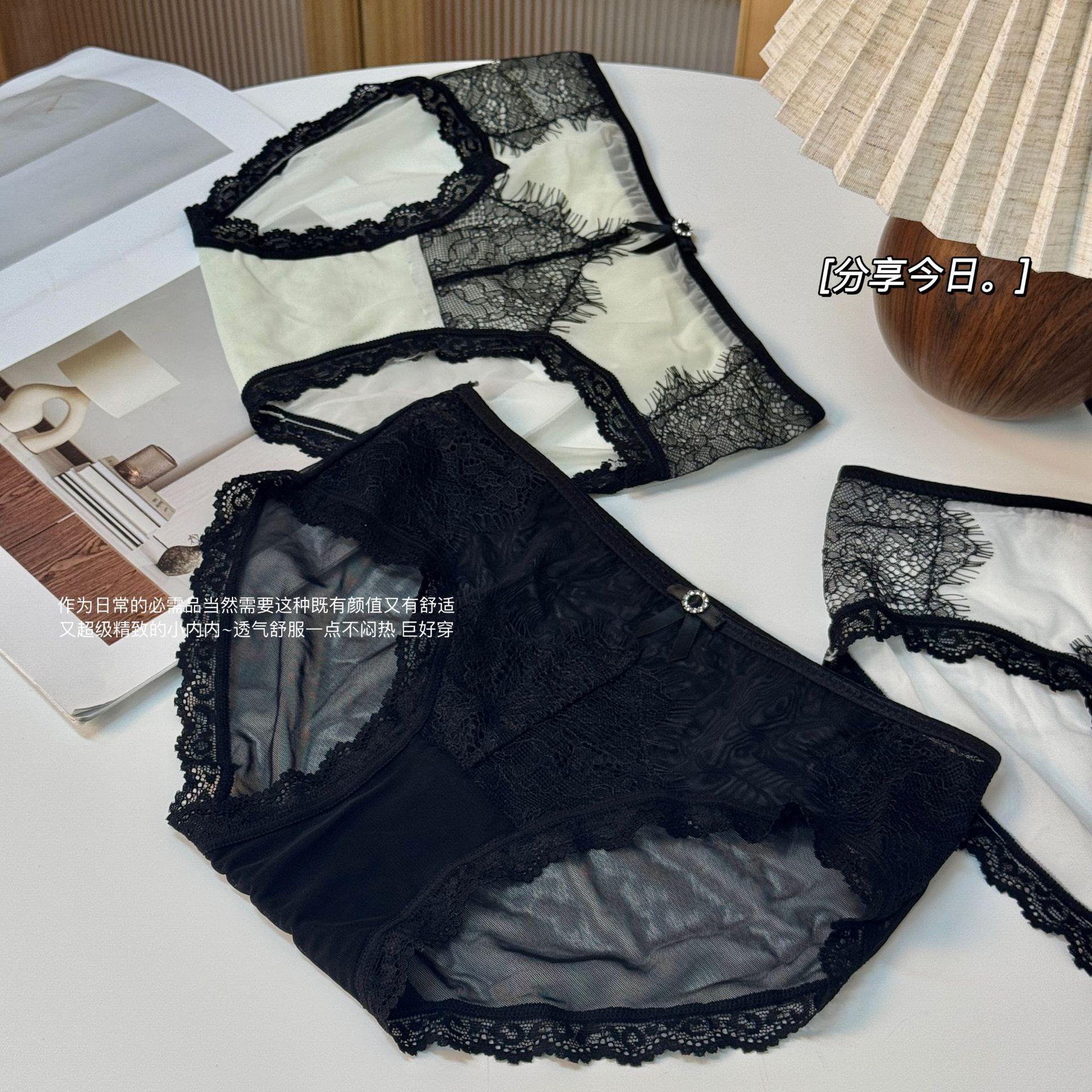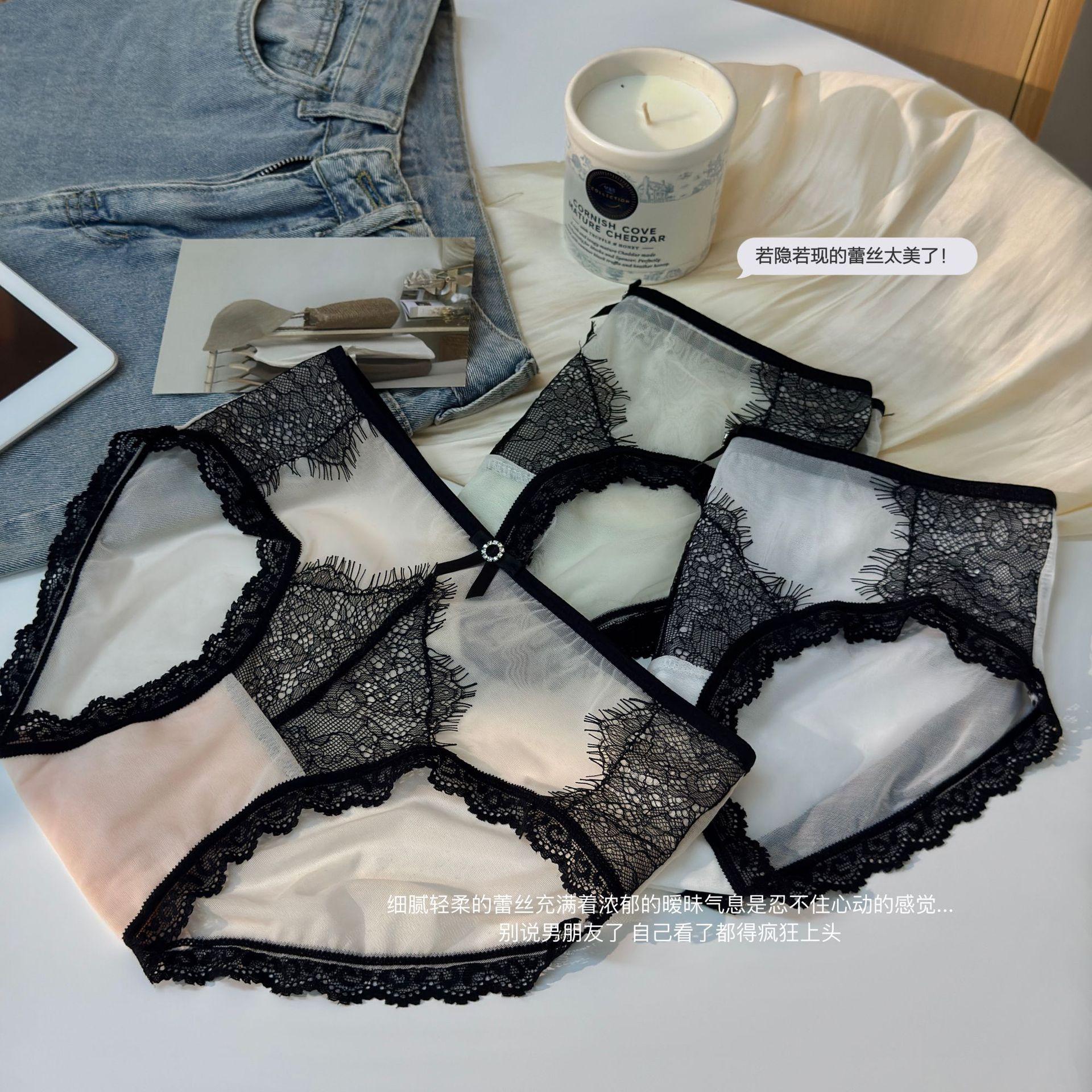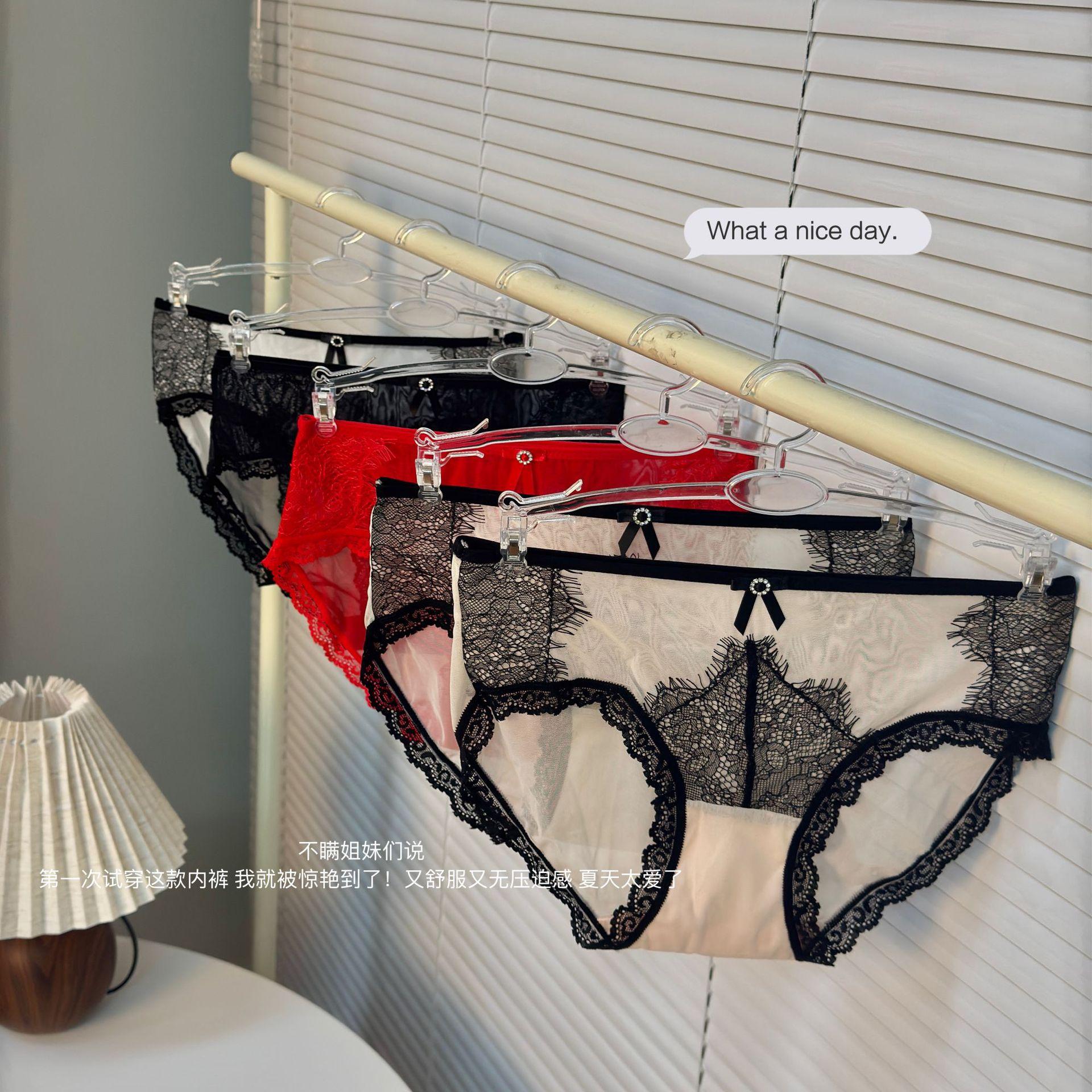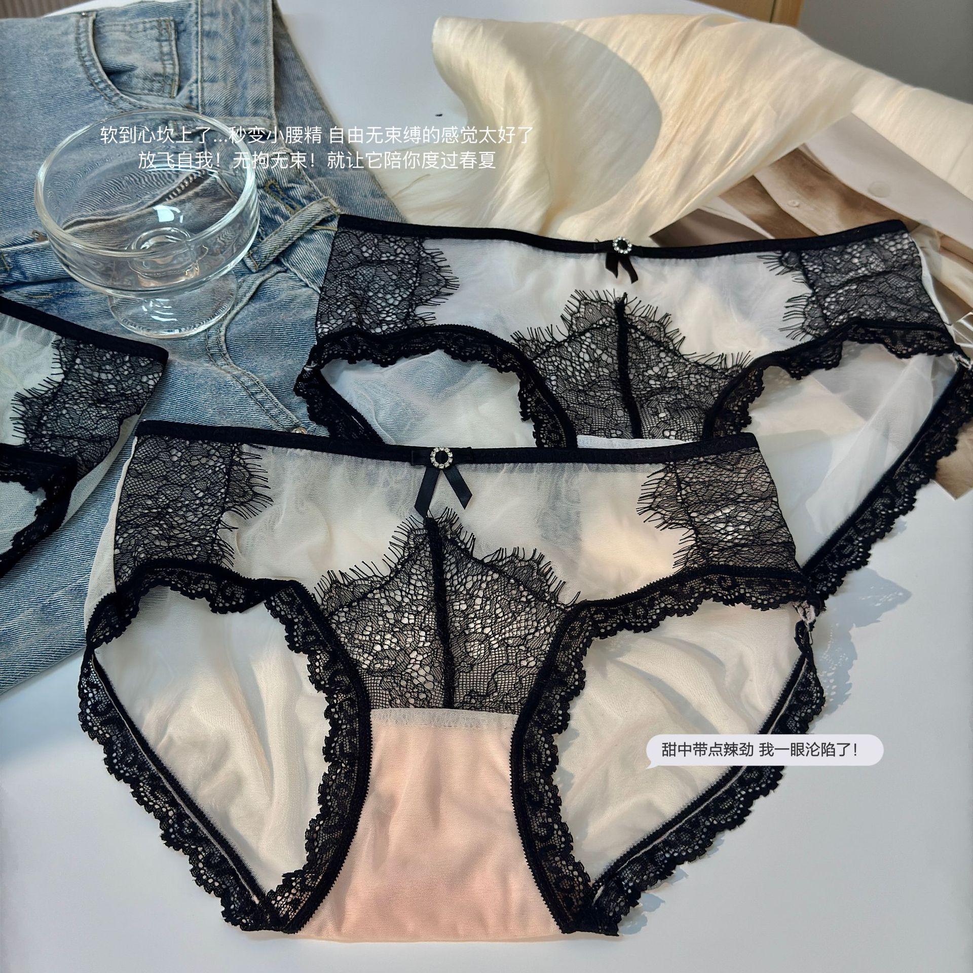 Nuevo estilo de encaje puro de deseo, ropa interior sexy para mujer, bragas triangulares de cintura media semitransparentes, bragas finas de algodón para mujer que no dejan marcas.