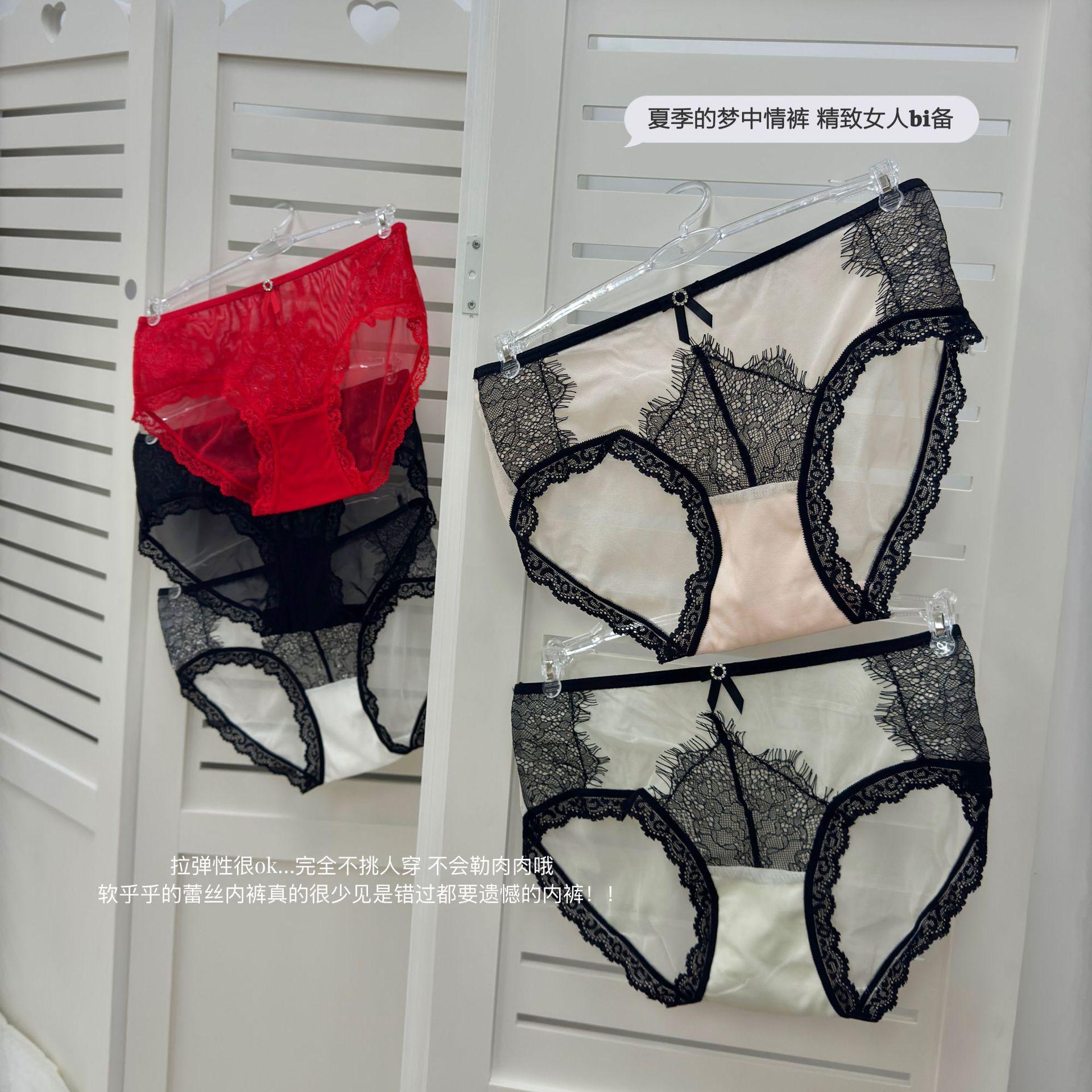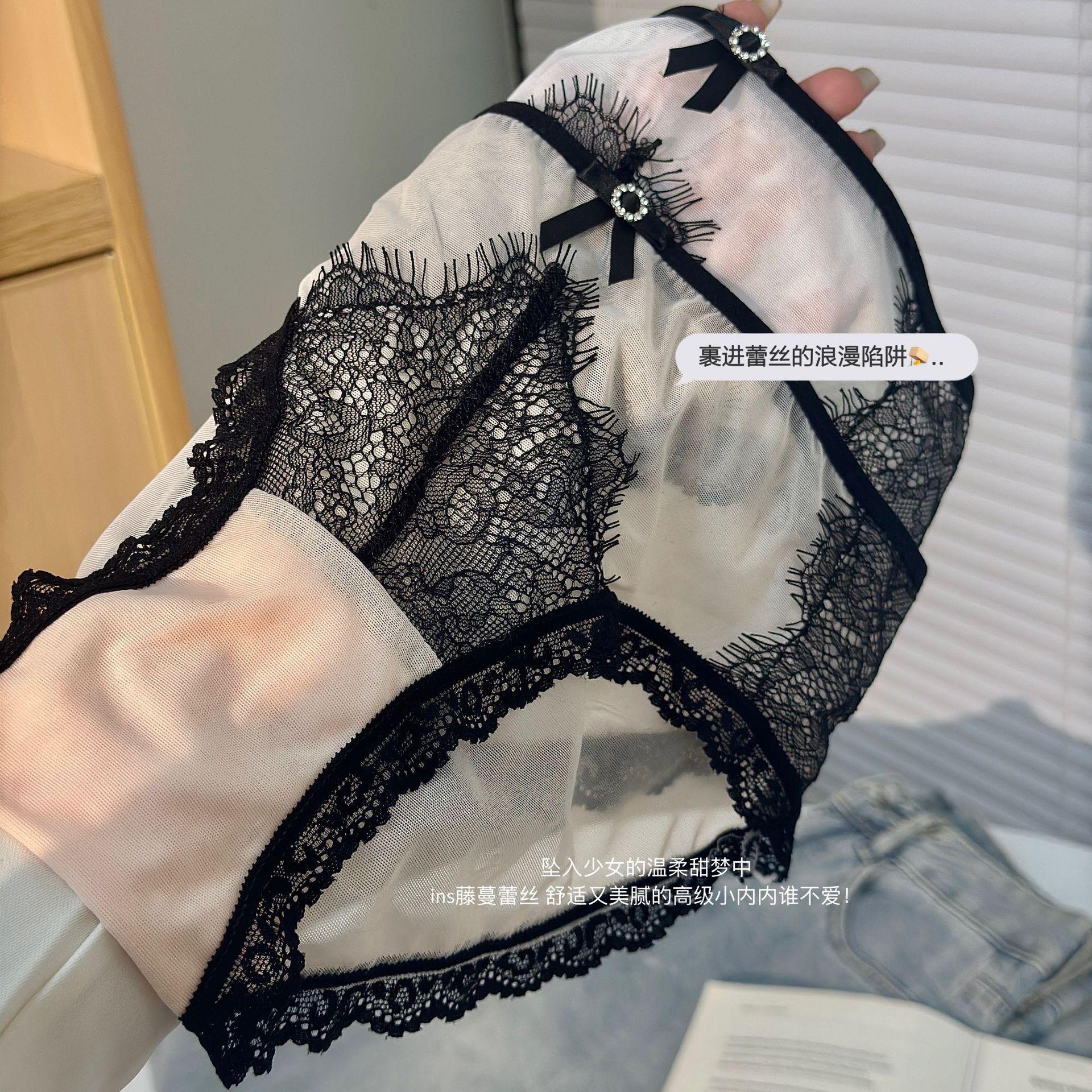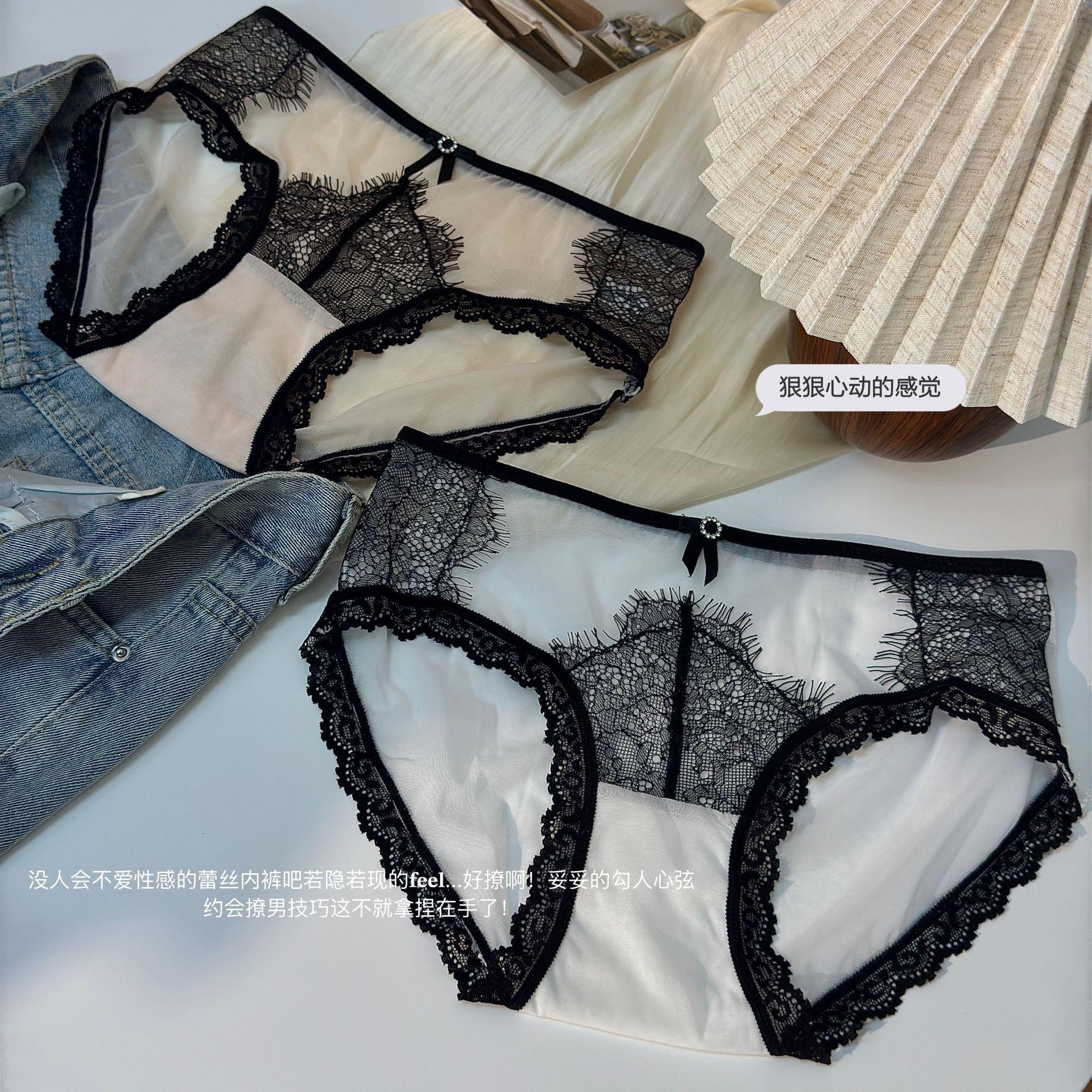 Nuevo estilo de encaje puro de deseo, ropa interior sexy para mujer, bragas triangulares de cintura media semitransparentes, bragas finas de algodón para mujer que no dejan marcas.
