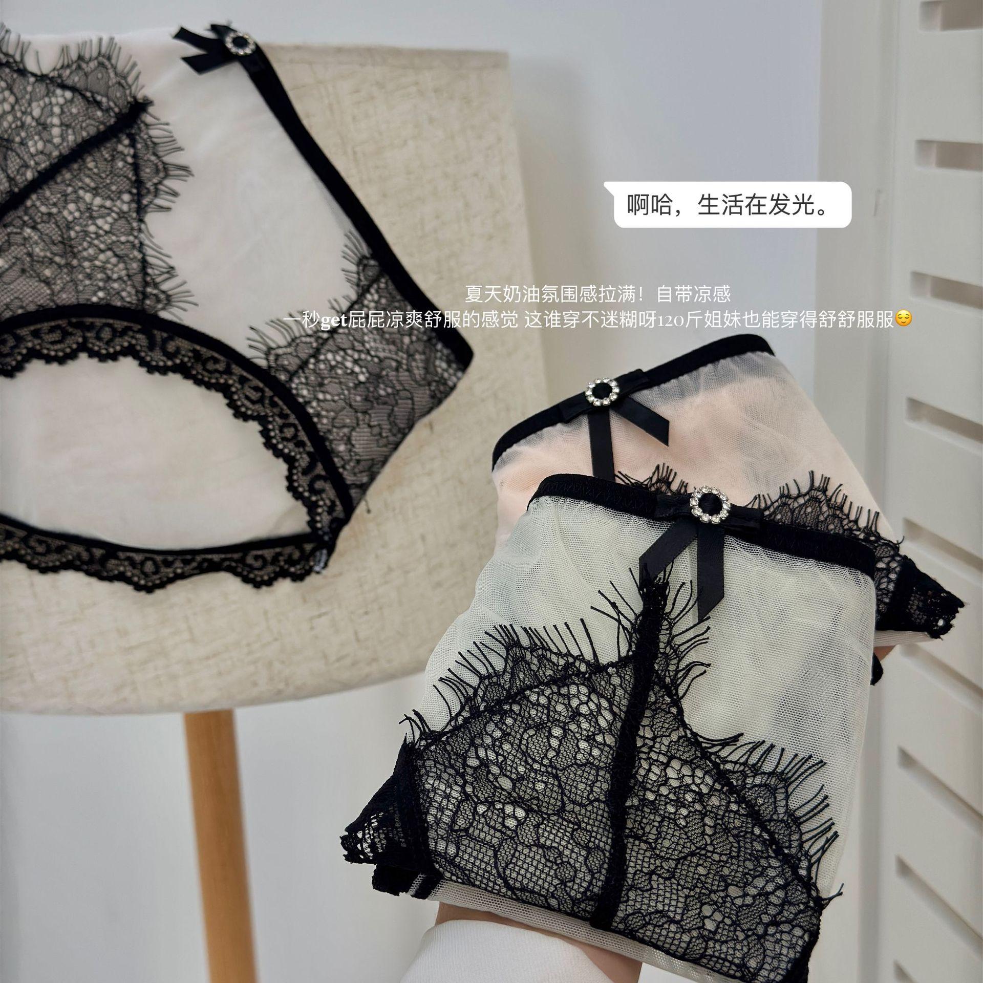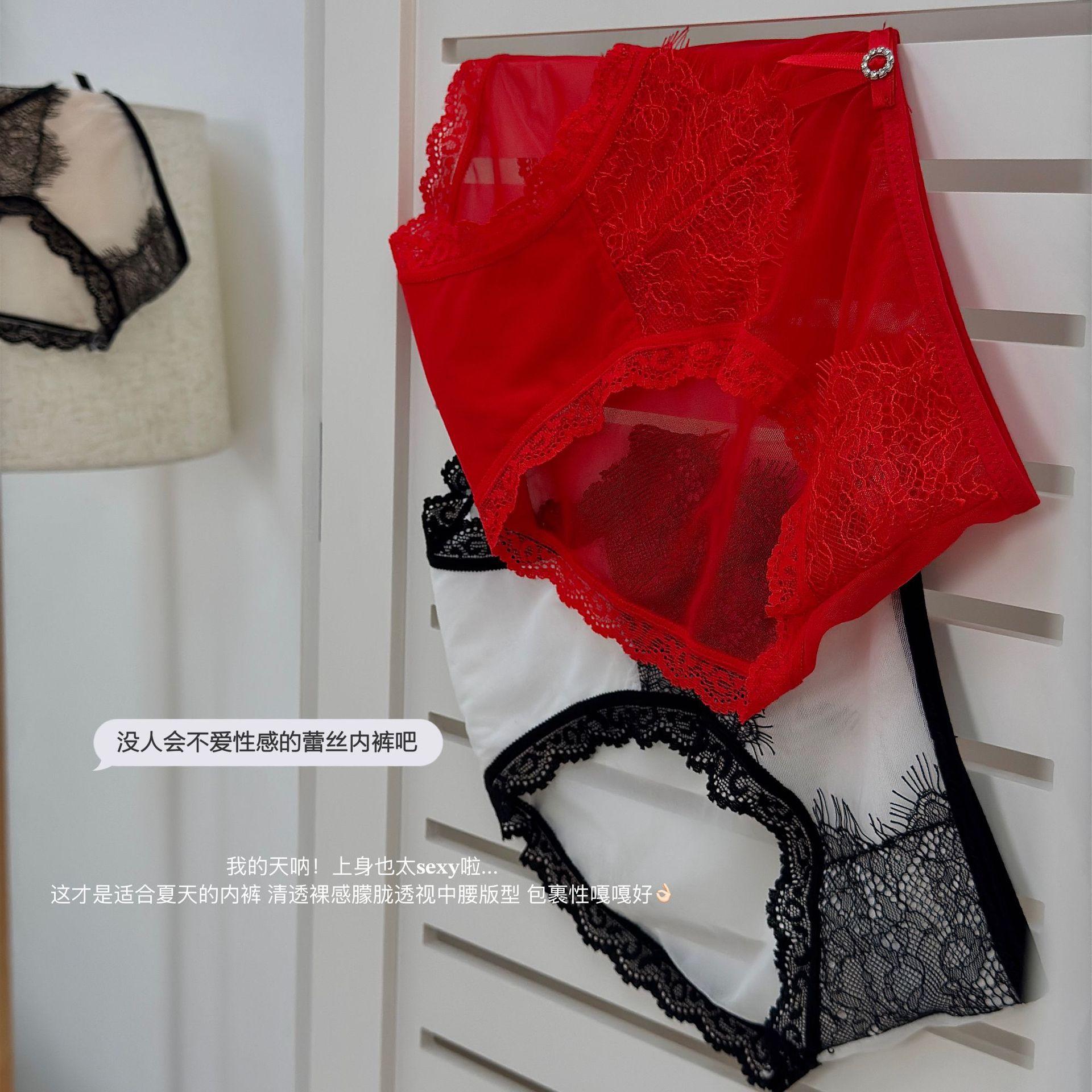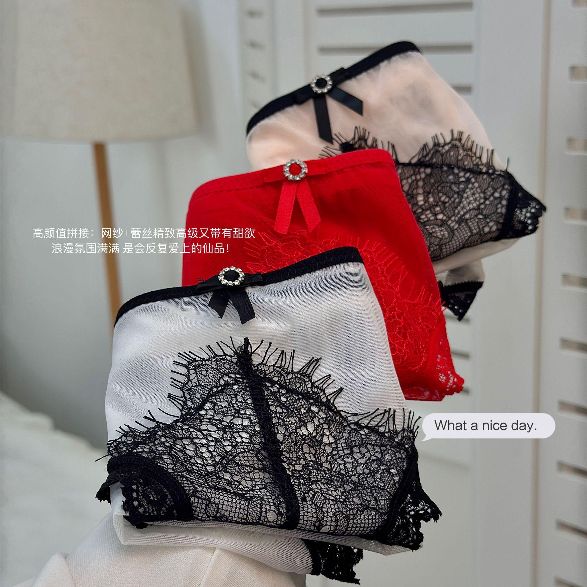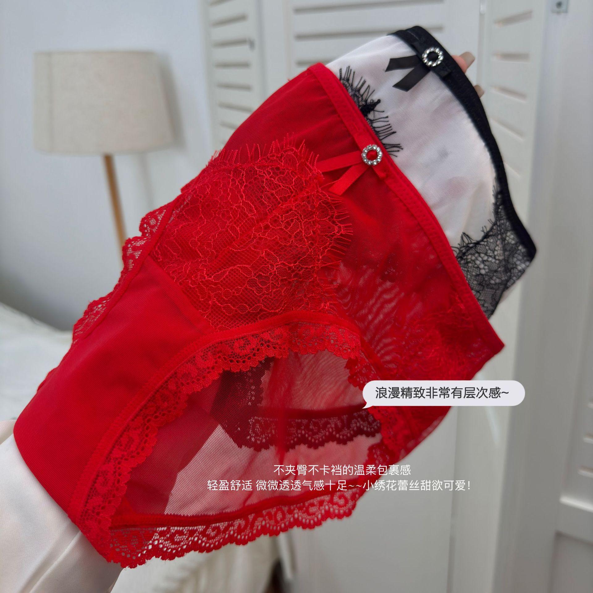 Nuevo estilo de encaje puro de deseo, ropa interior sexy para mujer, bragas triangulares de cintura media semitransparentes, bragas finas de algodón para mujer que no dejan marcas.