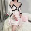 Compra Camisón de seda de hielo con tirantes dulces, pijama sexy de verano estilo princesa, pijama de encaje para primavera y otoño, cinturón con almohadilla para el pecho, ropa de hogar estilo Pure Desire. al por mayor en Joom.pro