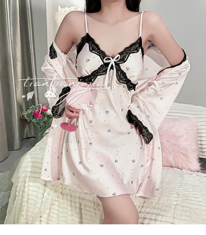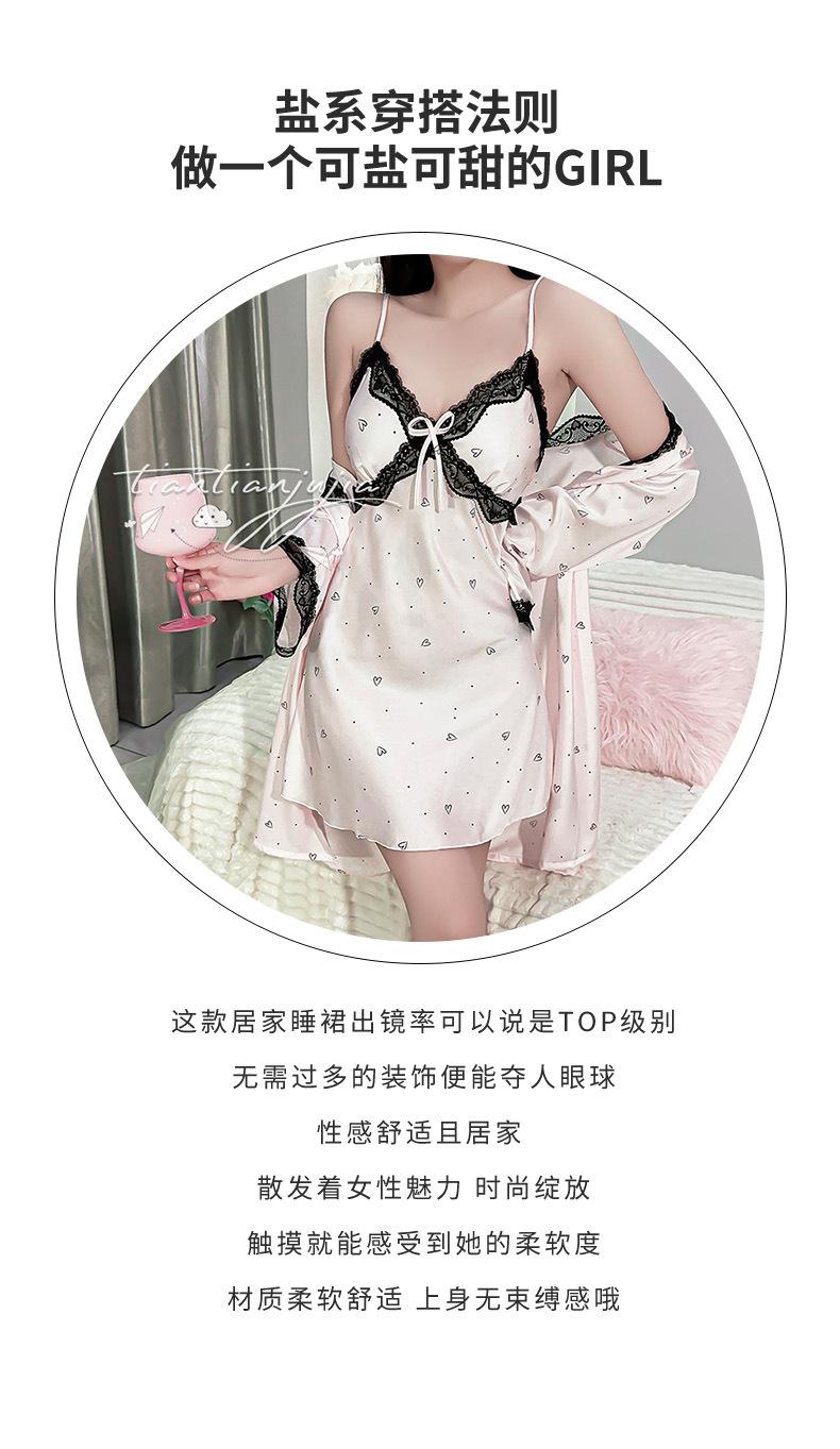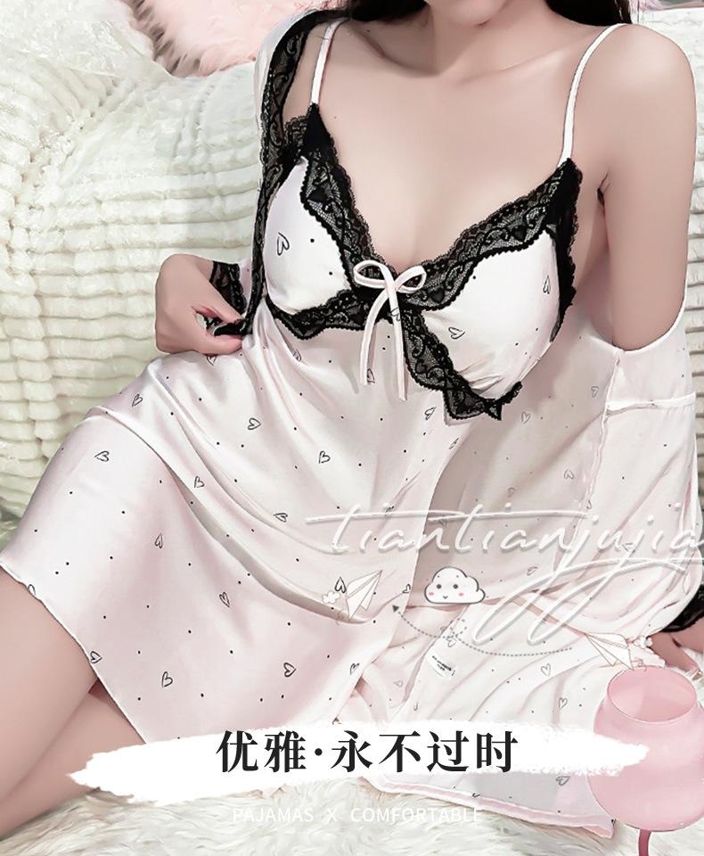 Camisón de seda de hielo con tirantes dulces, pijama sexy de verano estilo princesa, pijama de encaje para primavera y otoño, cinturón con almohadilla para el pecho, ropa de hogar estilo Pure Desire.
