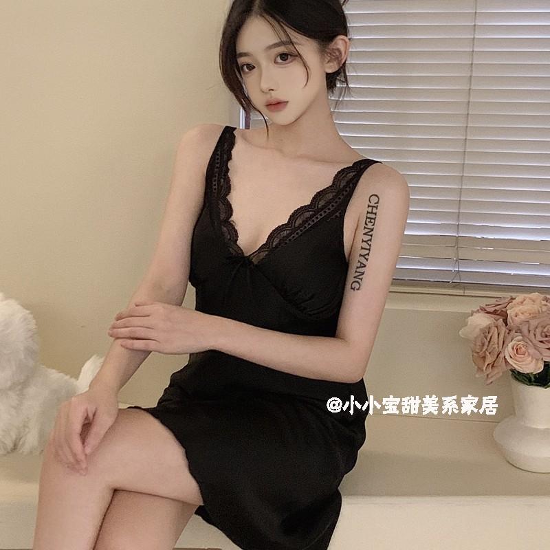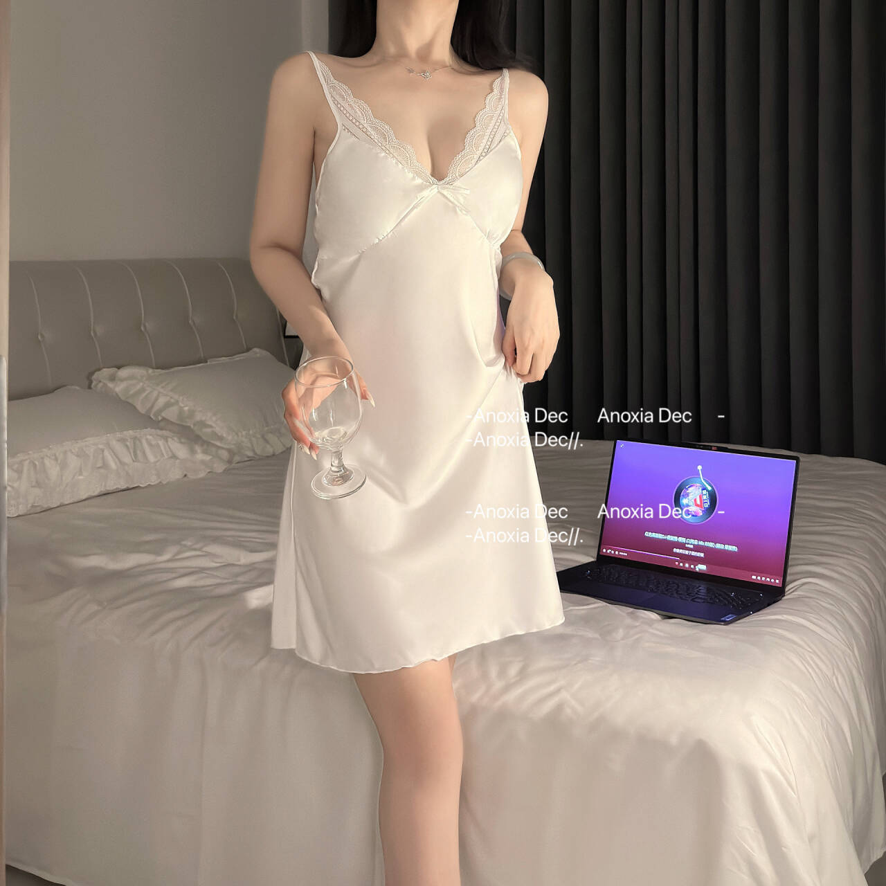 Pijama sexy para mujer, de alta gama, con encaje de seda helada, ropa de dormir para el hogar