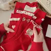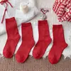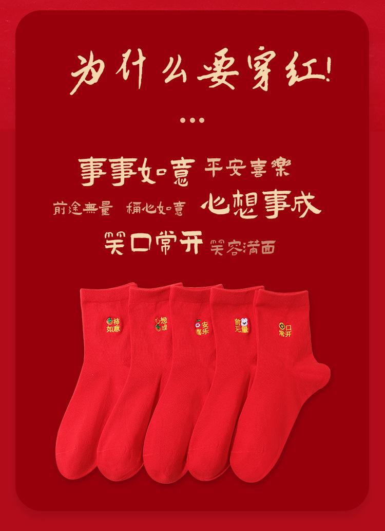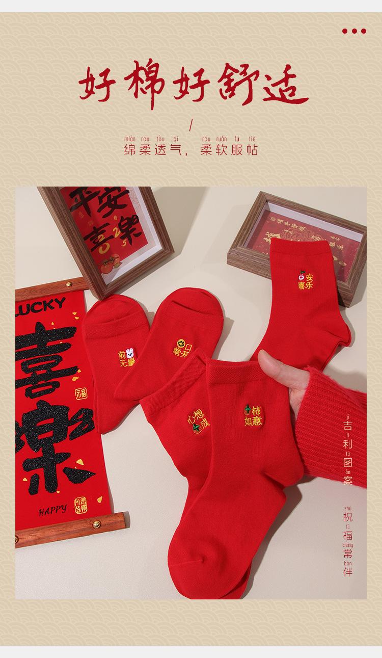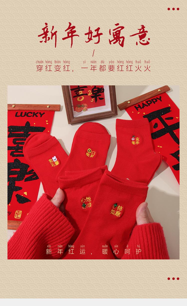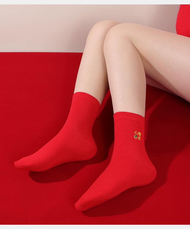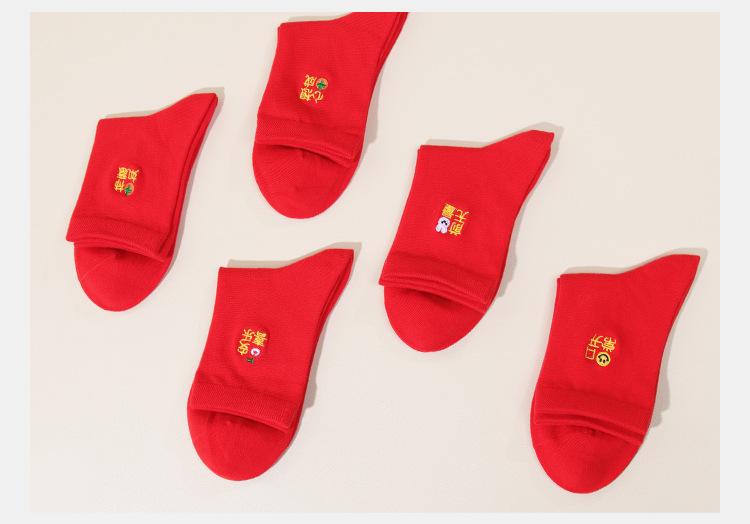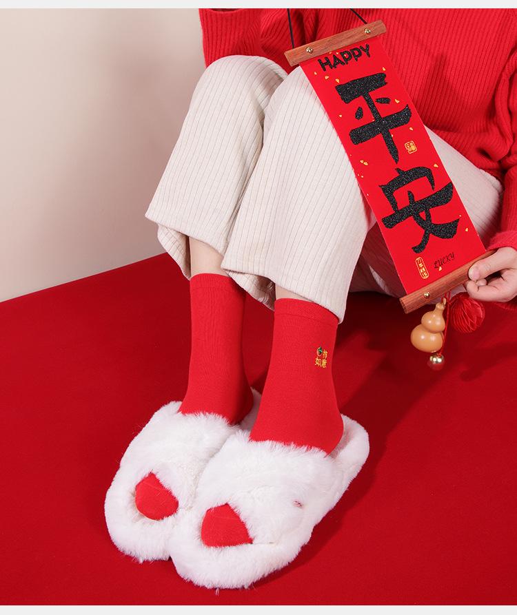 Calcetines de mujer otoño e invierno nuevos calcetines rojos de bendición festiva calcetines de mujer bordados de Año Nuevo todos los mejores calcetines de algodón peinado al por mayor