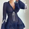 Lencería Conjunto Sexy Europeo y Americano de Tres Piezas de Color Contrastante Hermosa Línea Costuras de Malla Ropa Sexy de Niña Ropa Interior de Mujer