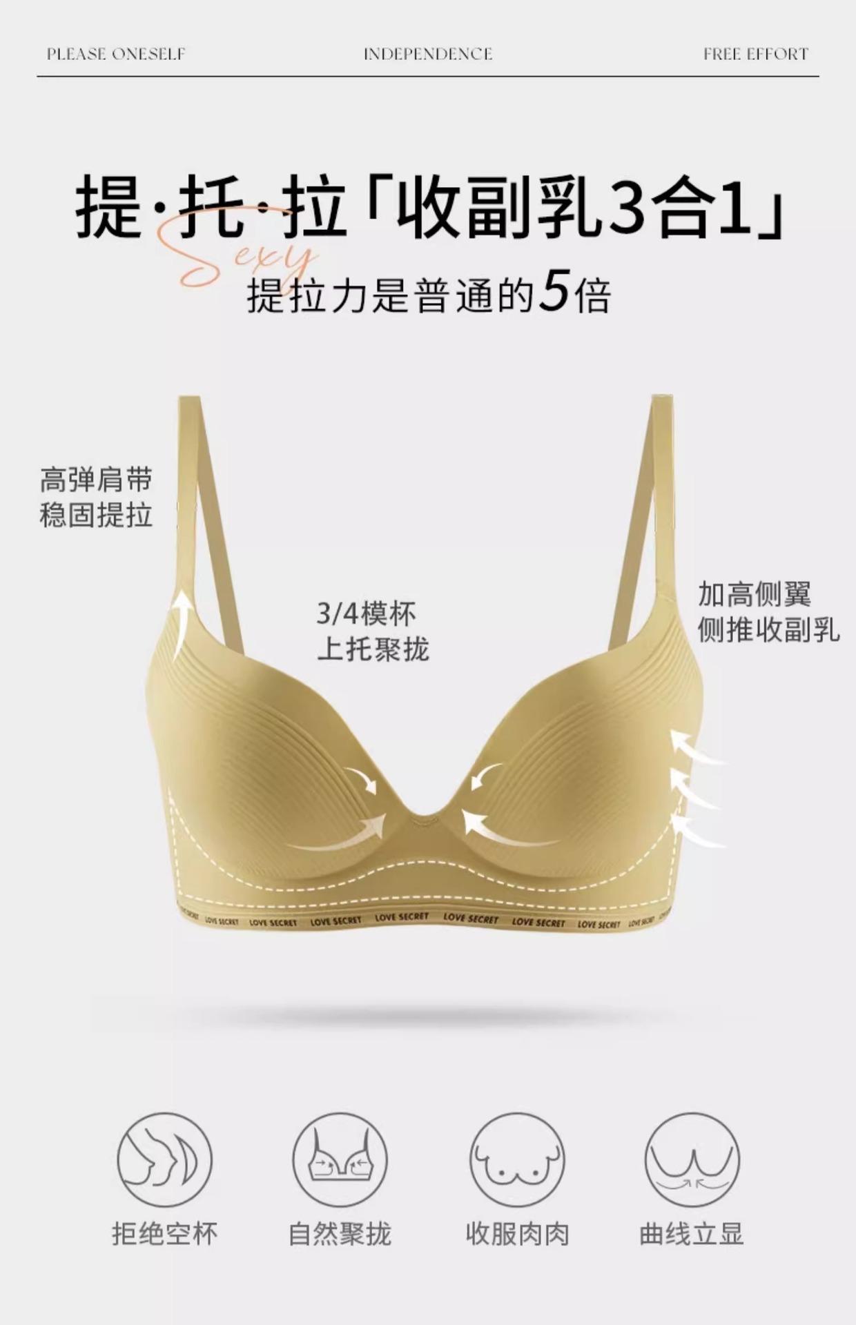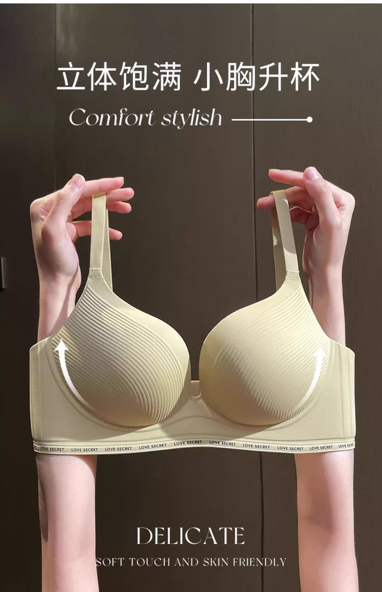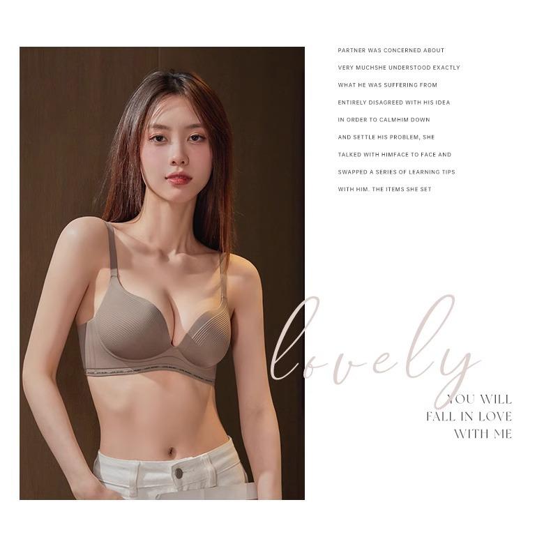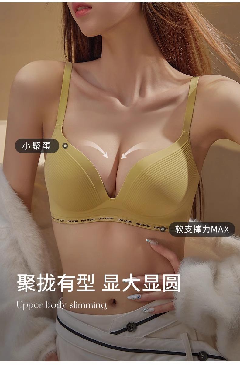 Ropa interior sin costuras original para mujer, copa pequeña con realce, con aro grande, sin aros, soporte suave W, anti-caída, senos paramamarios, sujetador profundo en V
