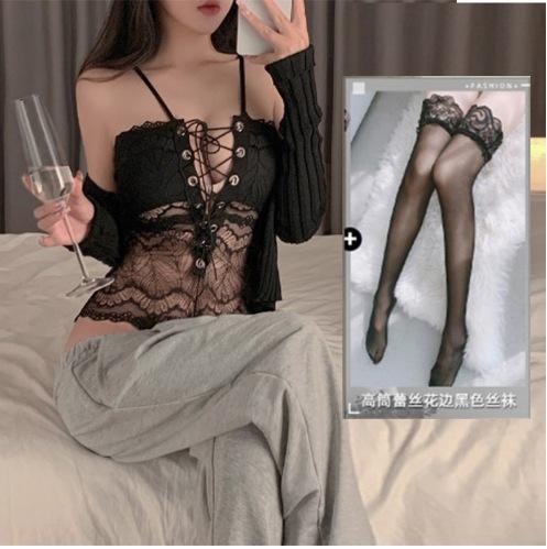 Pijama sexy, lencería transparente, ropa de una pieza de encaje, uniforme sin entrepierna, traje de tentación.